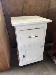 White clad vintage looking nightstand 30 x 19.5 x 23.25