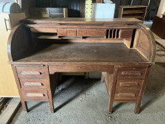Antique Oak Roll Top Desk 60 x 43.625 x 30.375