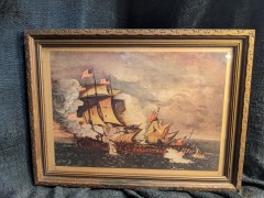 Framed Constitution and Guerriere Vintage Print