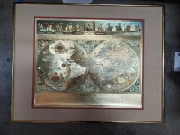 Vintage Framed Silver Foil Blaeu Wall Map of Old and New World