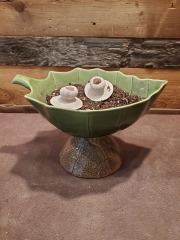 Pleasing Green Ceramic Leaf Planter 12.5 x 6.75 x 8.75
