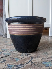 Brick Striped Navy Pot 10.5 x 8.75 x 10.5