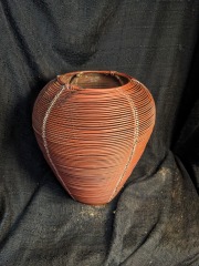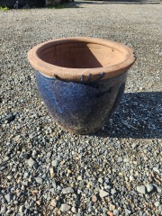 Tan and Midnight Blue Clay Pot 12 x 8 x 12