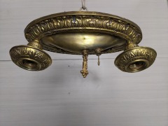 Antique 2 Lite Brass Pan Light Fixture