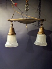 Vintage Two Bulb Pan Light with Shades 13.75 x 9 x 8