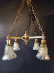 Vintage Craftsman 4 Arm Brass Chandelier 23 x 25