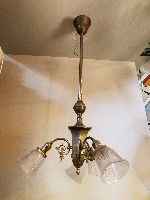 Victorian Brass 3 Arm Pendant. 21W x 40T.