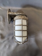 Vintage Cage Marine Light with Milk Glass Shade