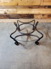Round Glass and Wood Coffee Table 37 x 19