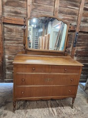 Antique Walnut 4 Drawer Dresser with Mercury Mirror 45.875 x 66.25 x 20