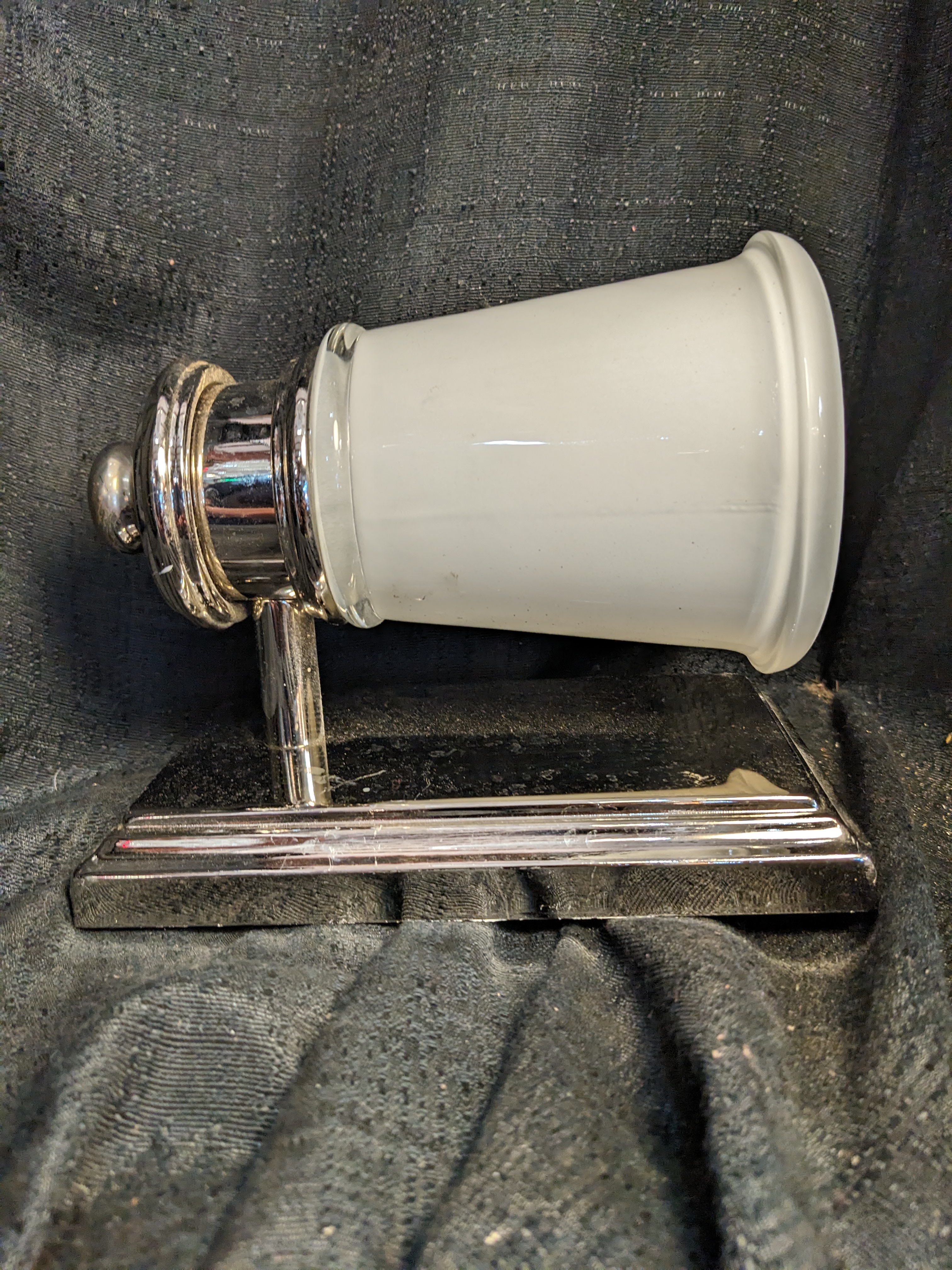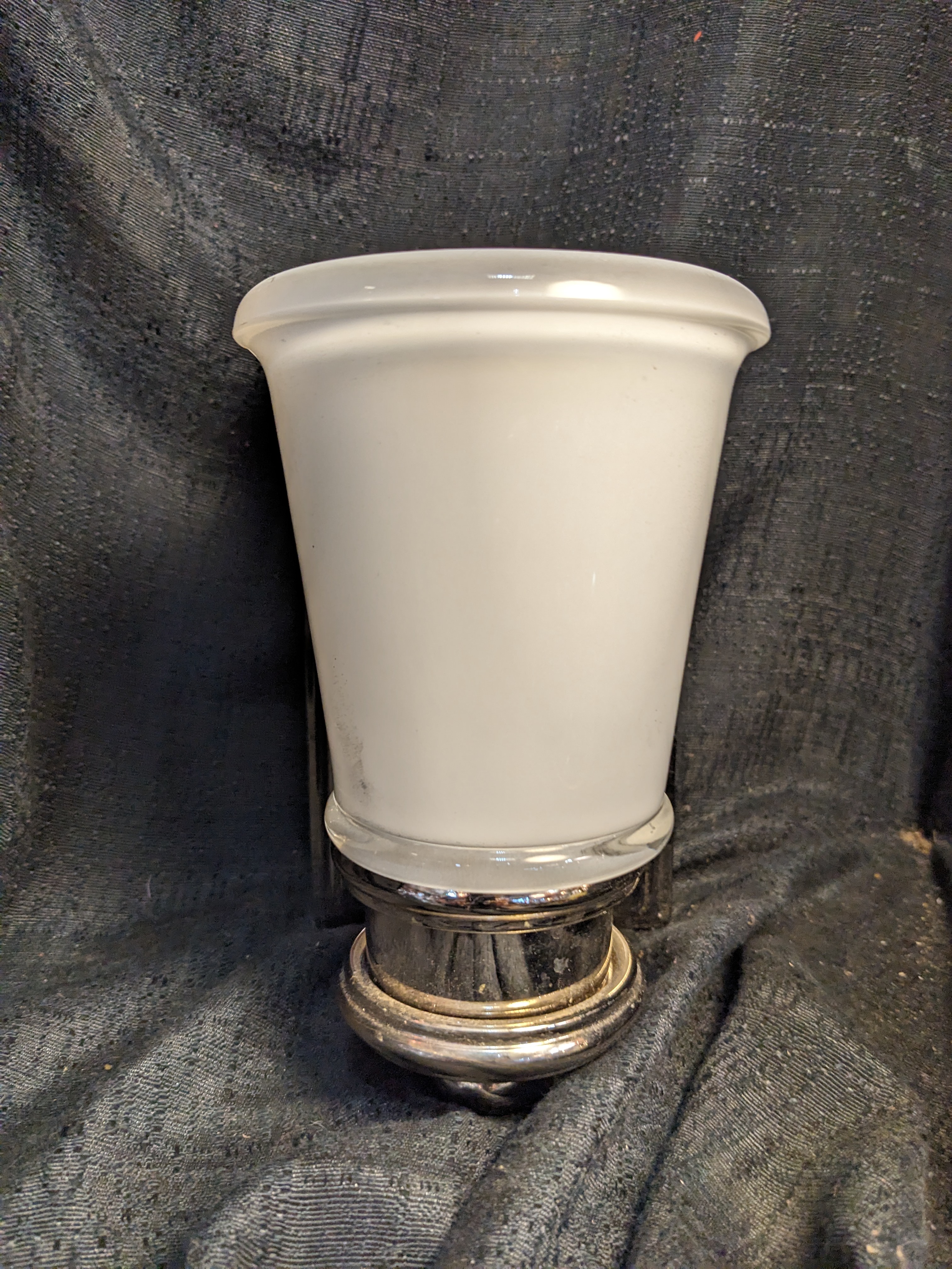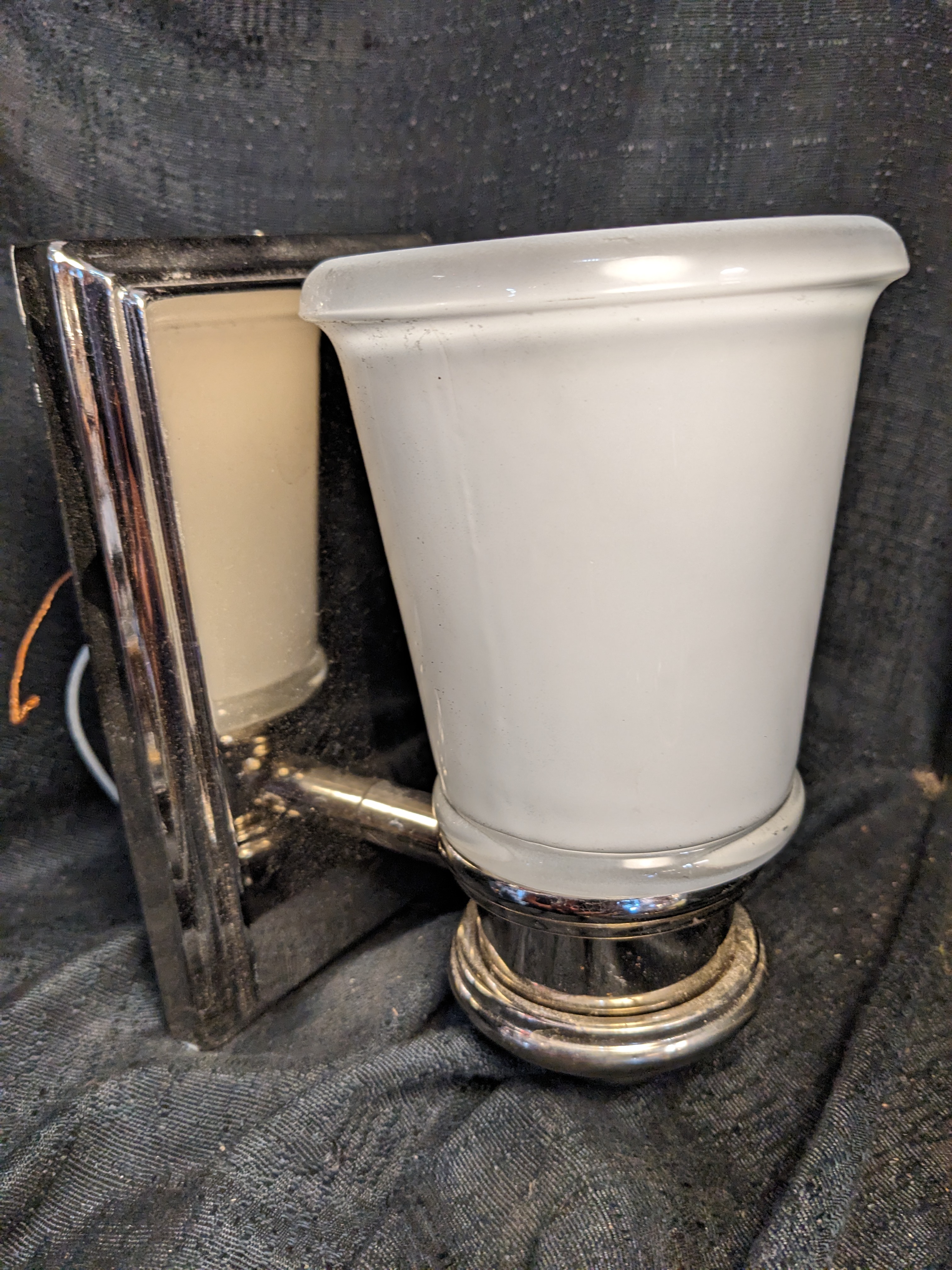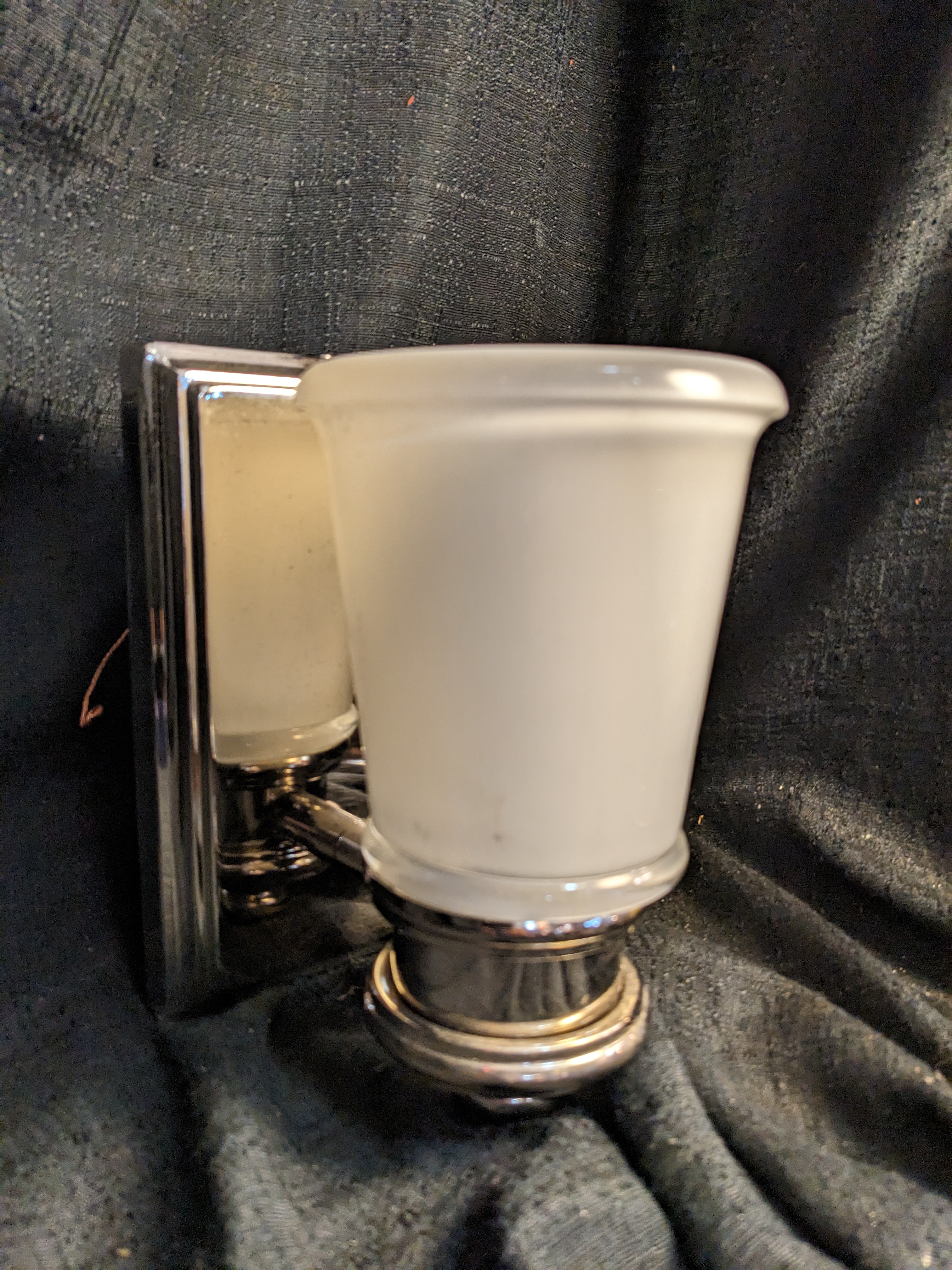 Shiny chrome sconce, perfect for bathroom. There are slight scratches, but overall in good condition.