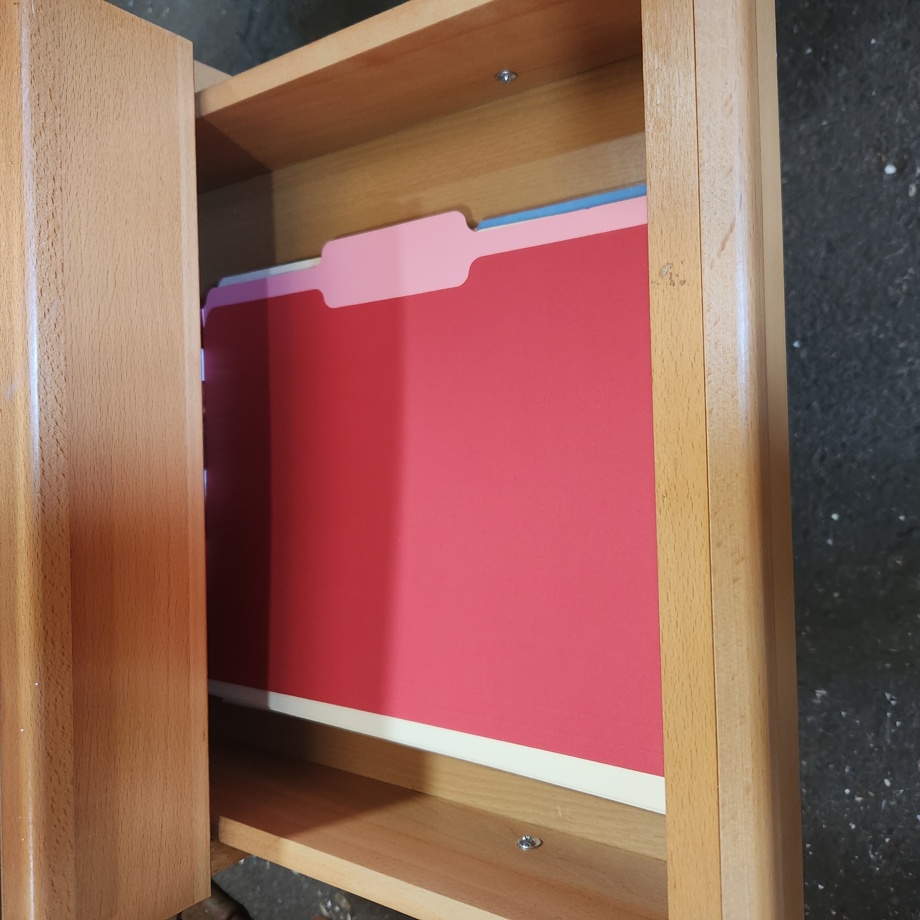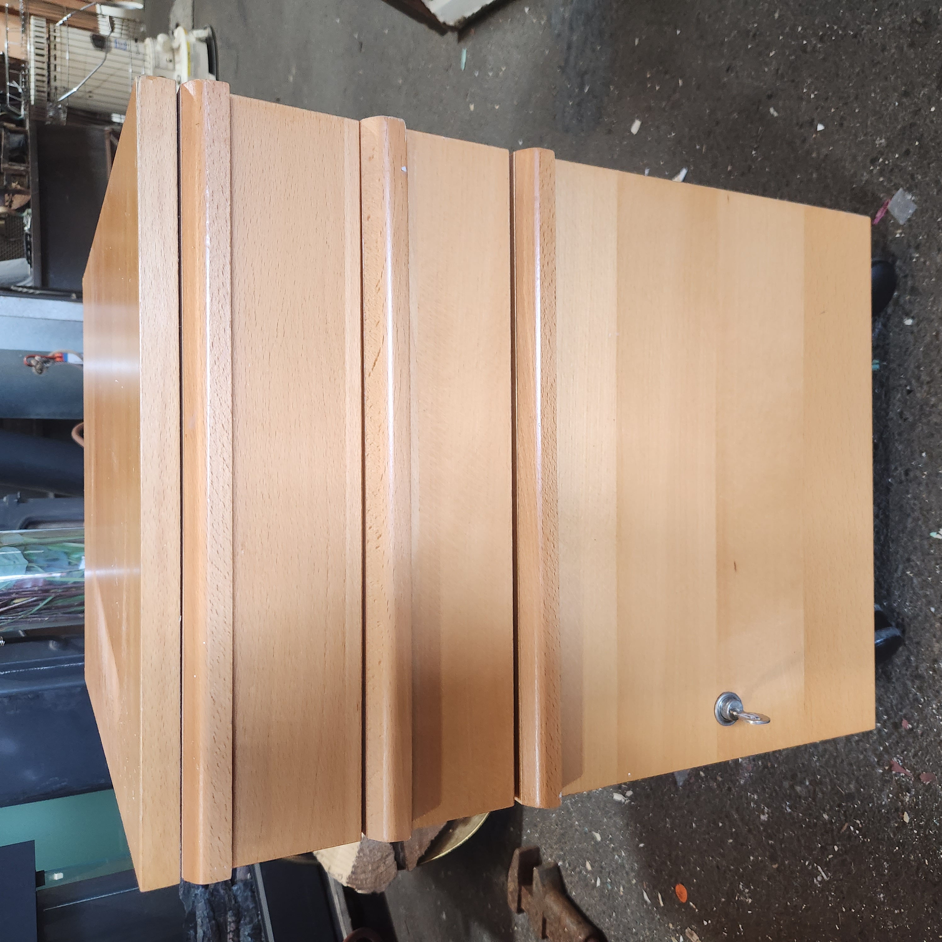 A cabinet in good condition! Comes with a key that works! There are some scratches and marks but overall they are very minimal. Also rolls on 4 wheels!