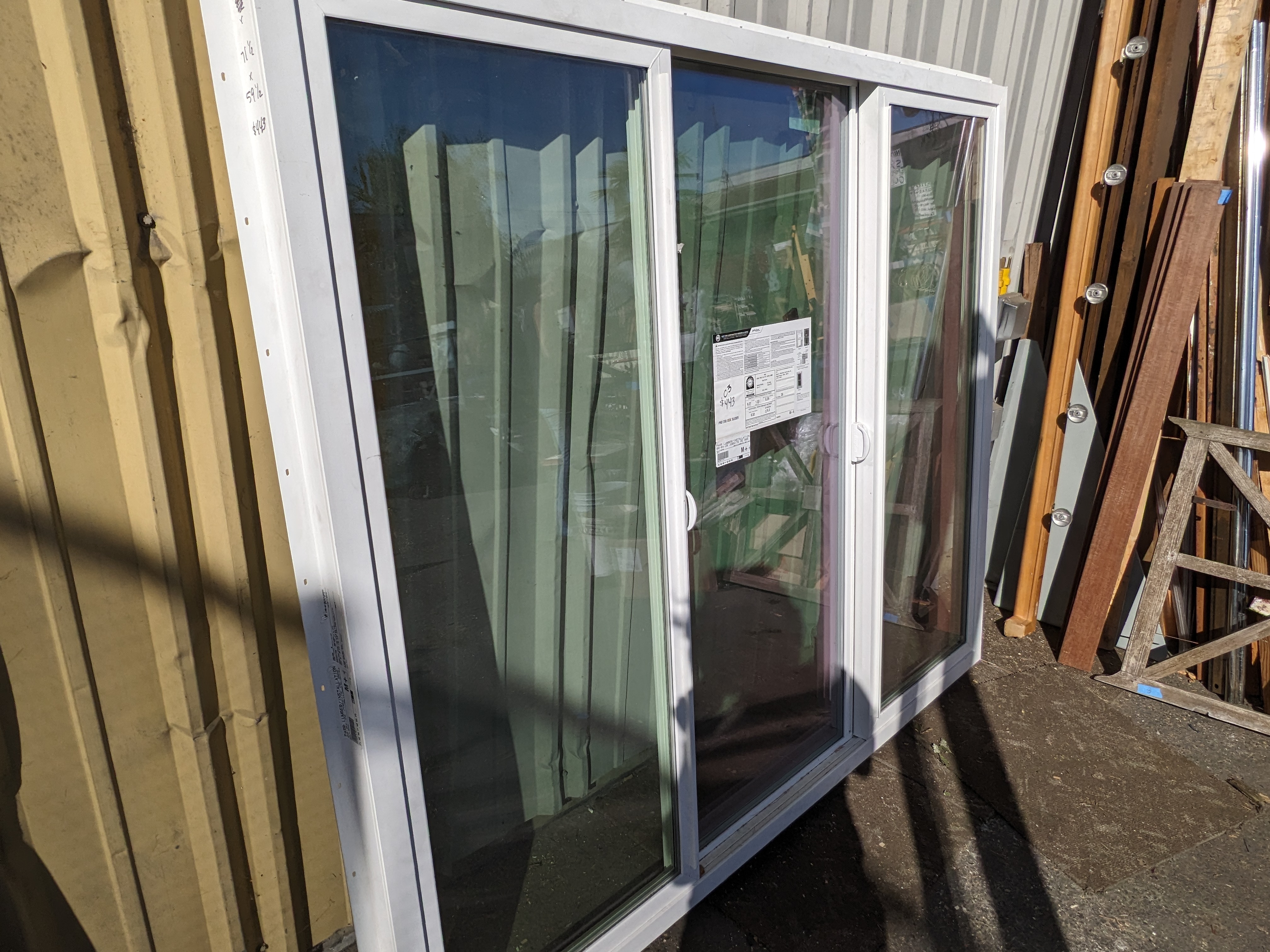 A nice and big new vinyl double slider window in good condition. Ready for install!