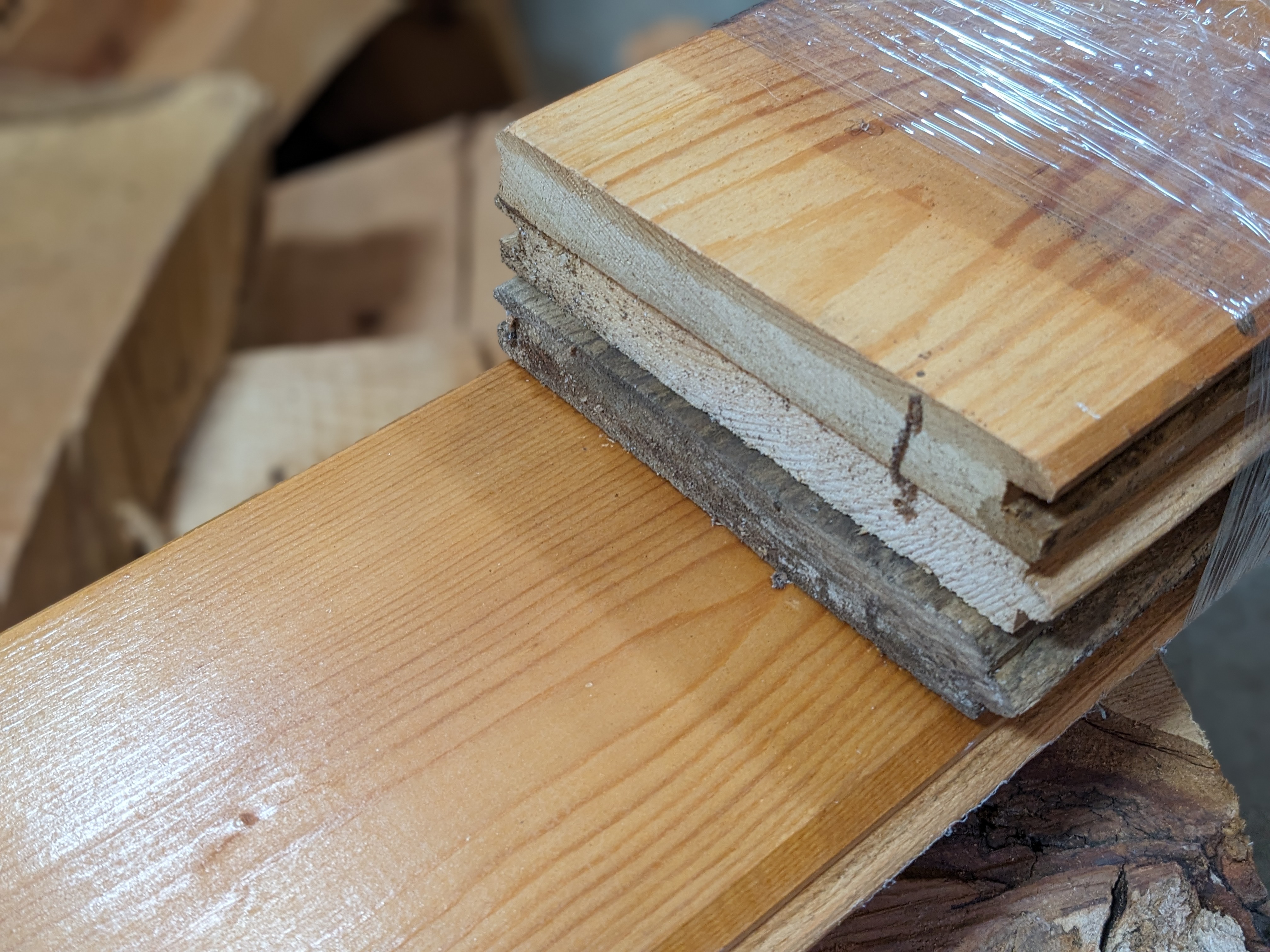 This salvaged knotty pine is 4 boards of 1970s charm.