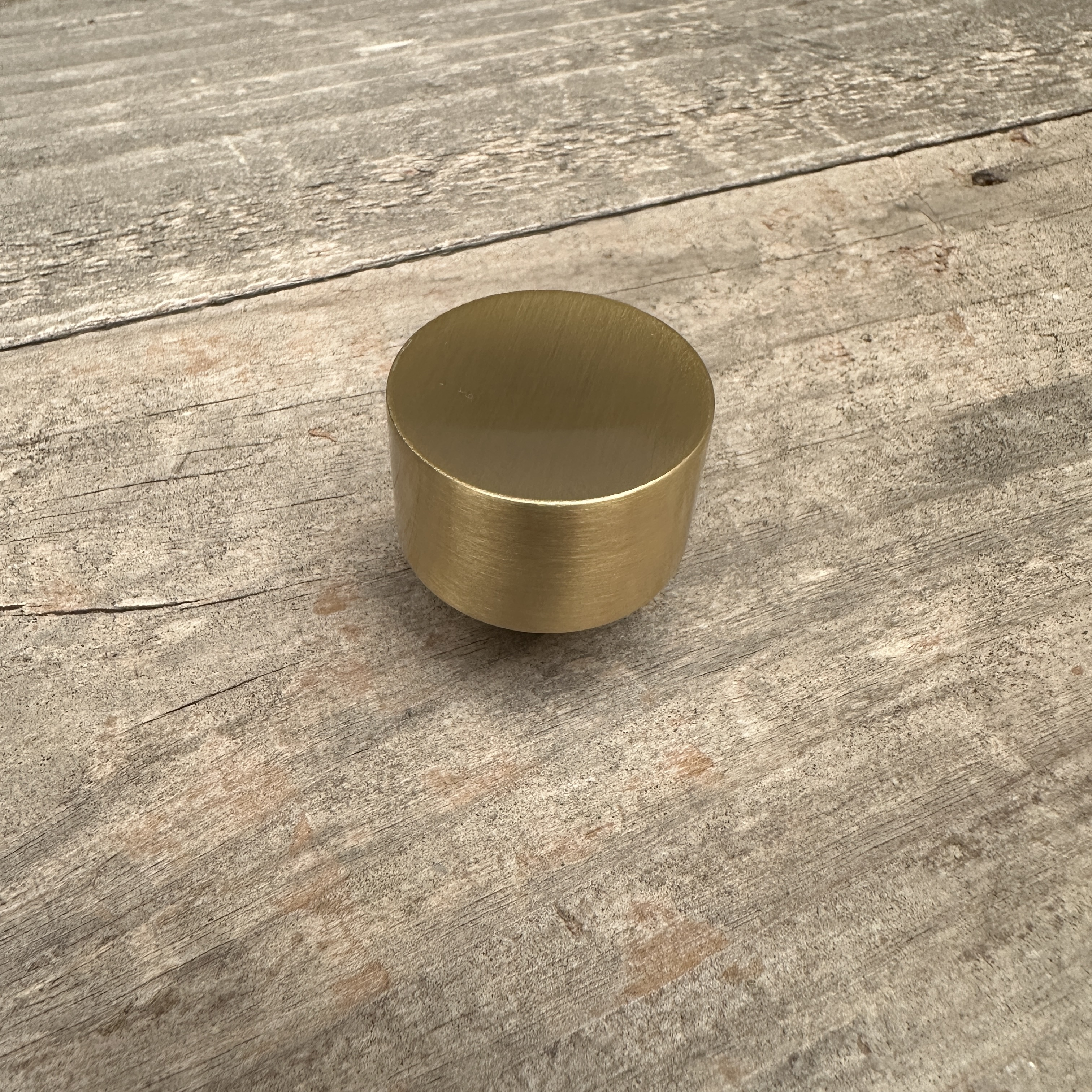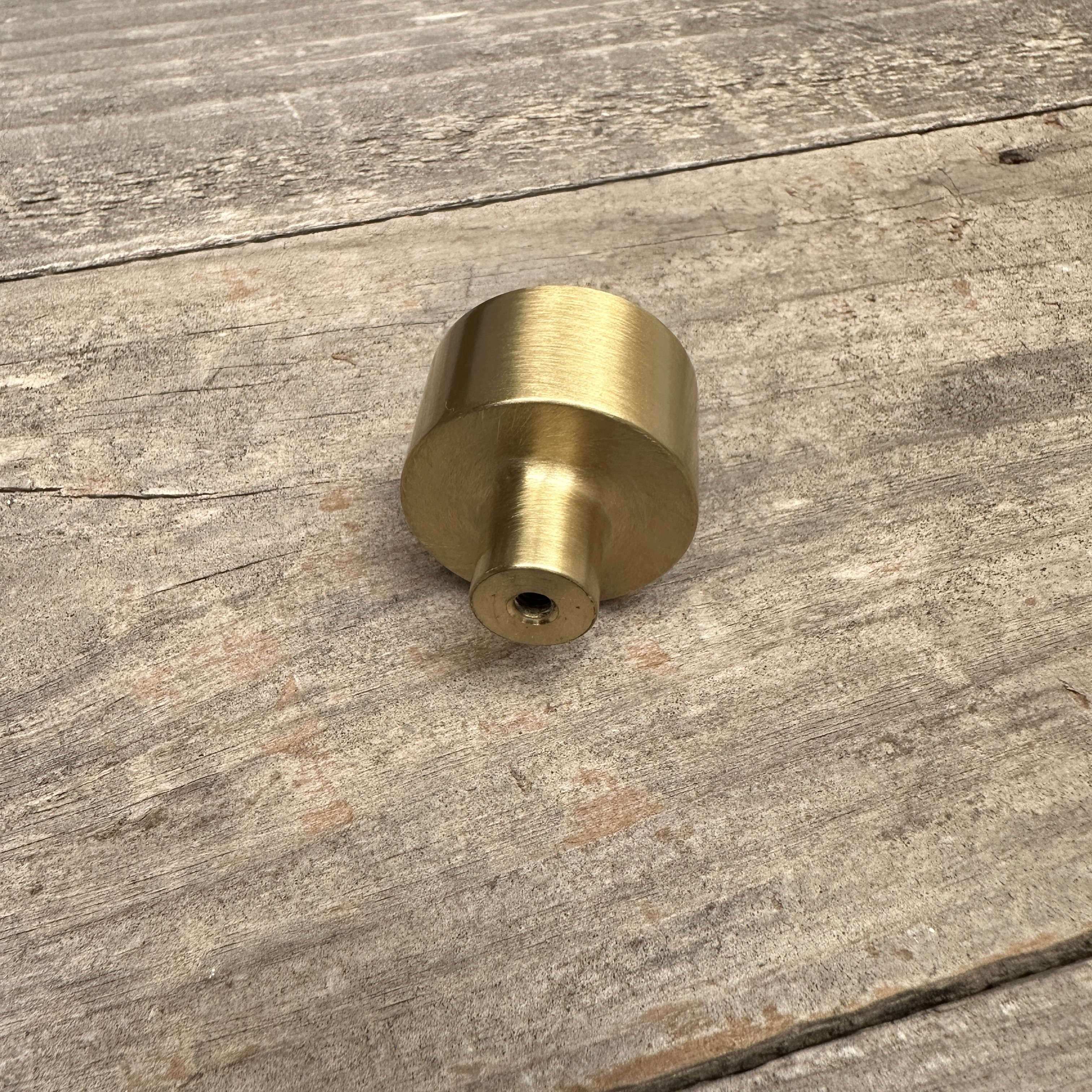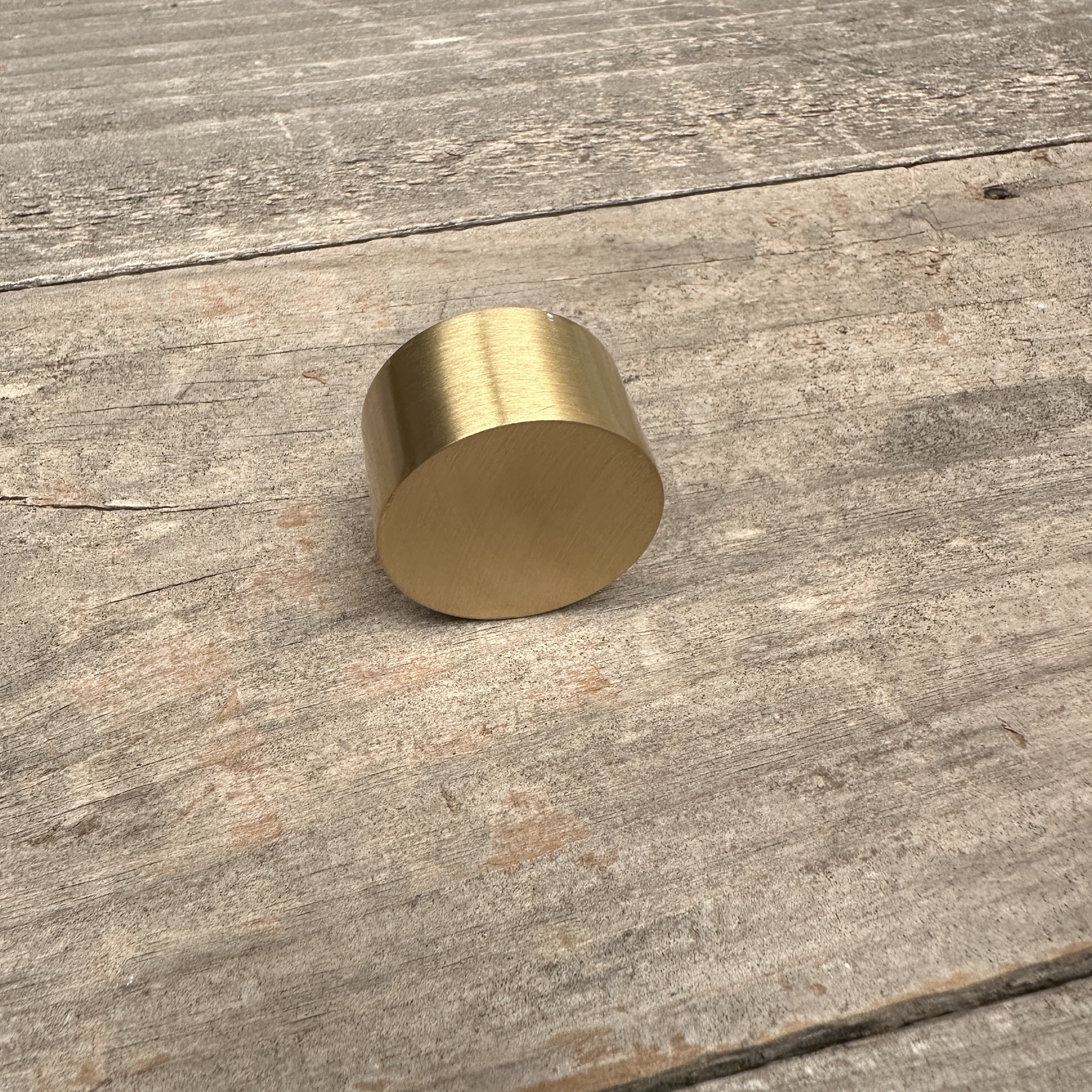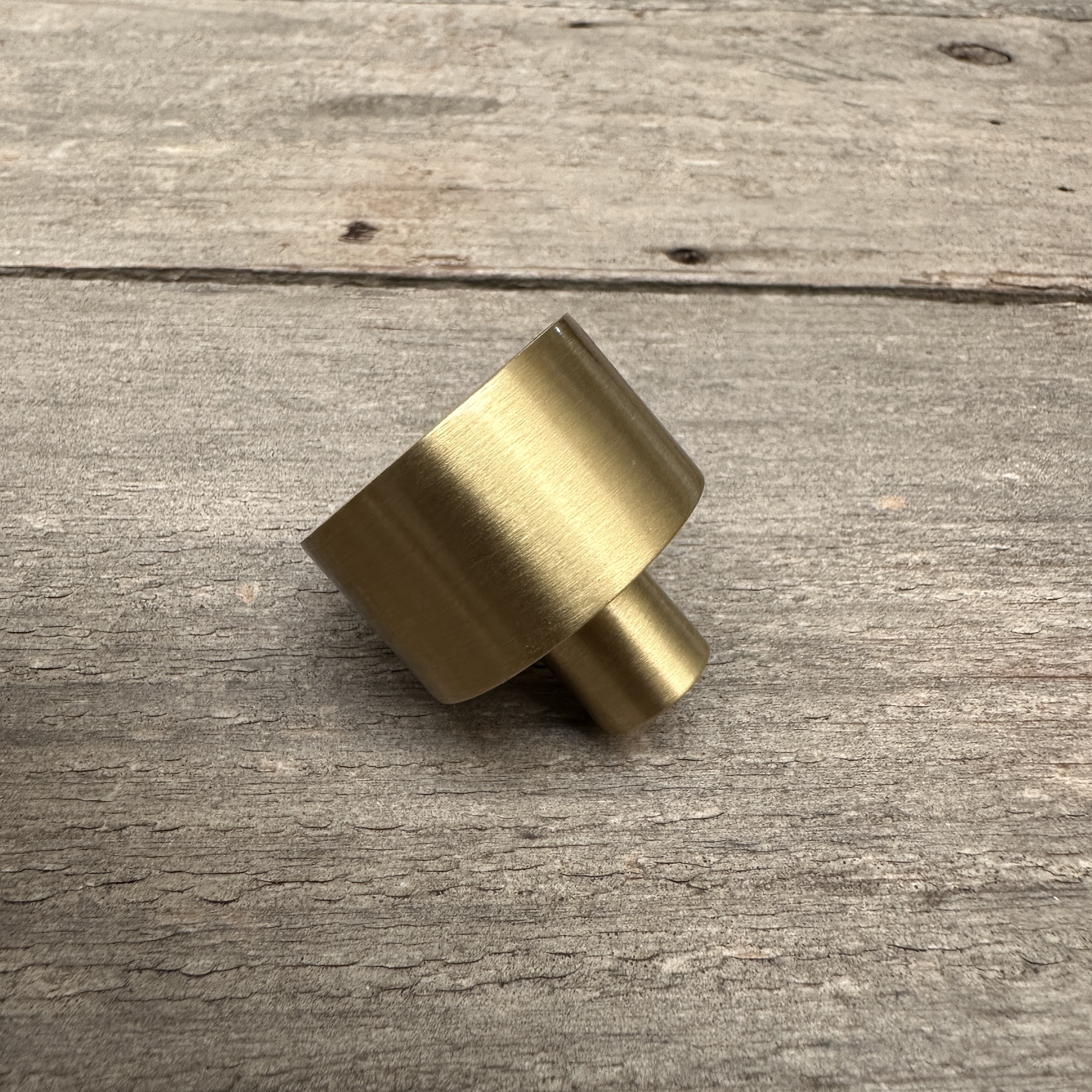The solid brass Mid Century Knob has a bold, cylindrical shape with a concave face that catches just a touch of light. While rooted in Mid Century design, this knob has a timeless appeal. Each knob is made in the U.S. from 95% recycled brass.