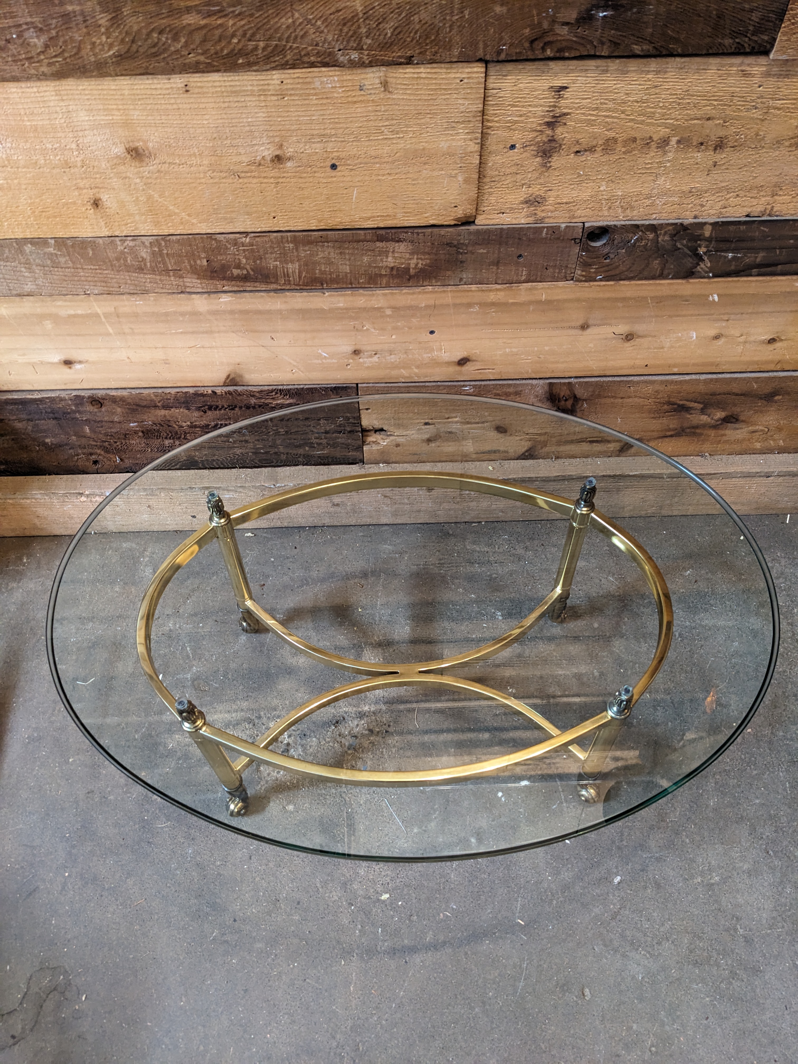 This Table is in perfect condition. It has some claw feet like legs to the table as well. The glass piece on the top is loose and not attached.