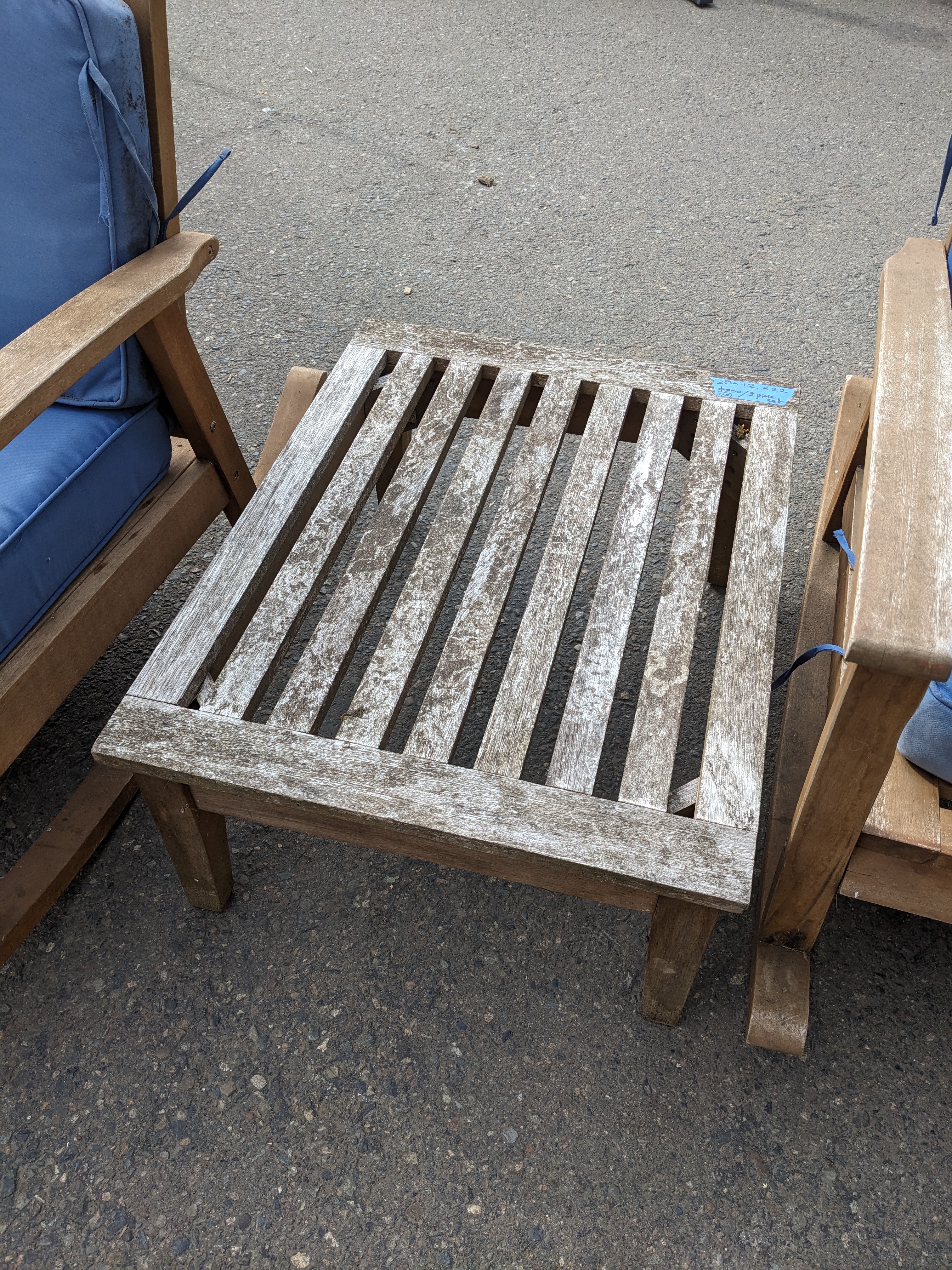 In decent, worn condition; Teak is very durable and should hold up to many more years of use as-is, or you could up-cycle however you wish.