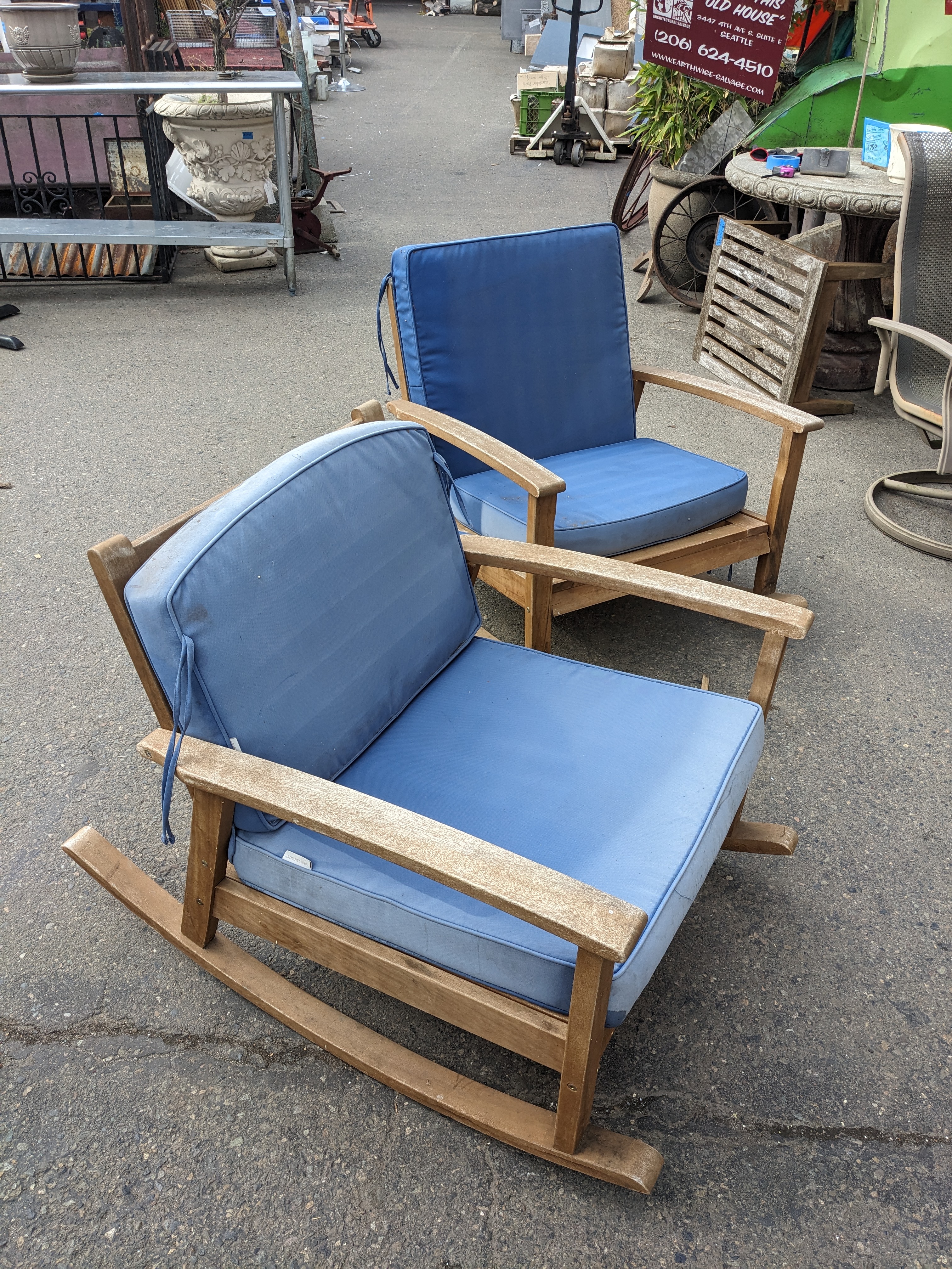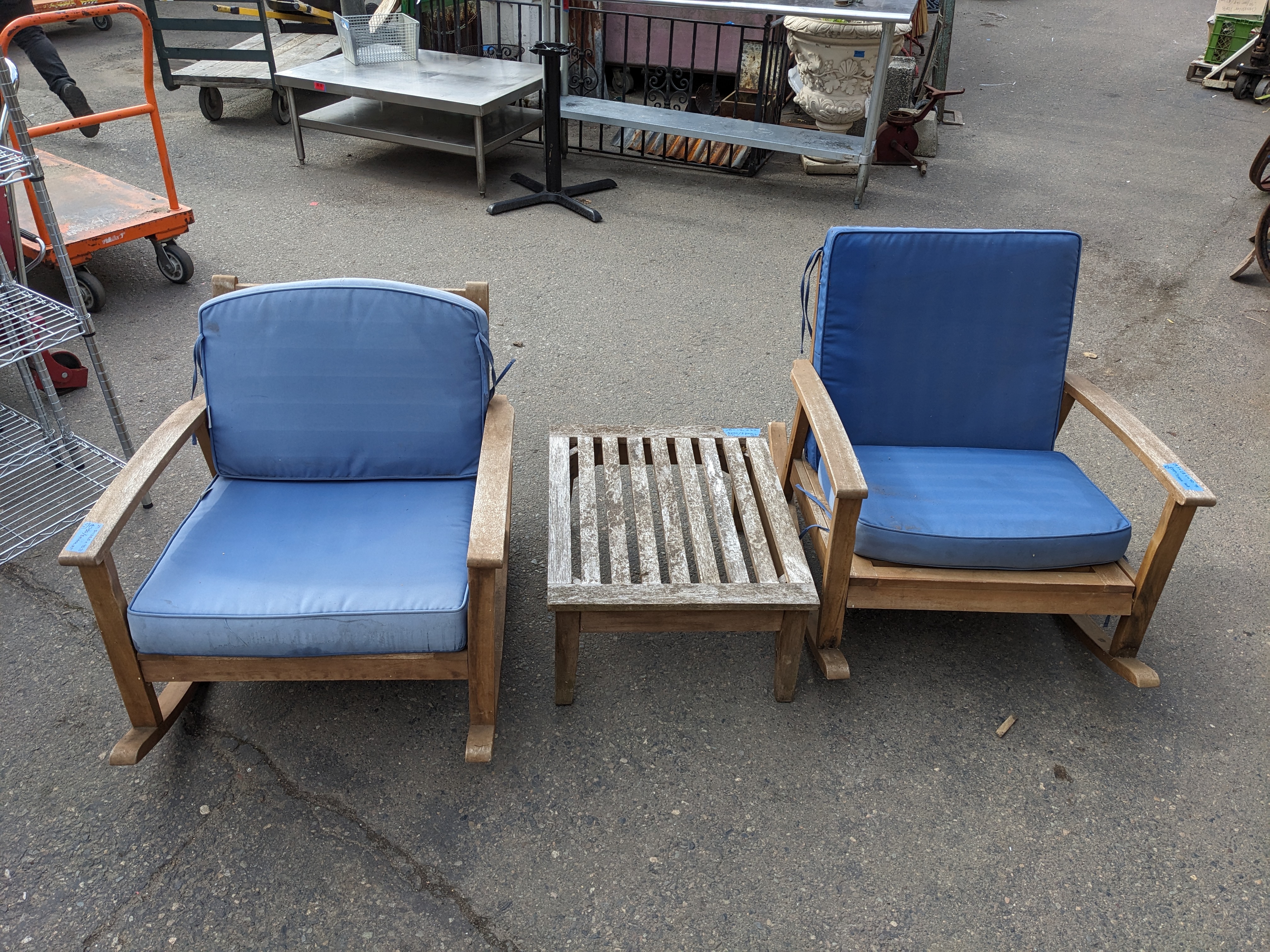 Rocking chairs measure: 29.5 x 28.5 x 40.75 (x2) &