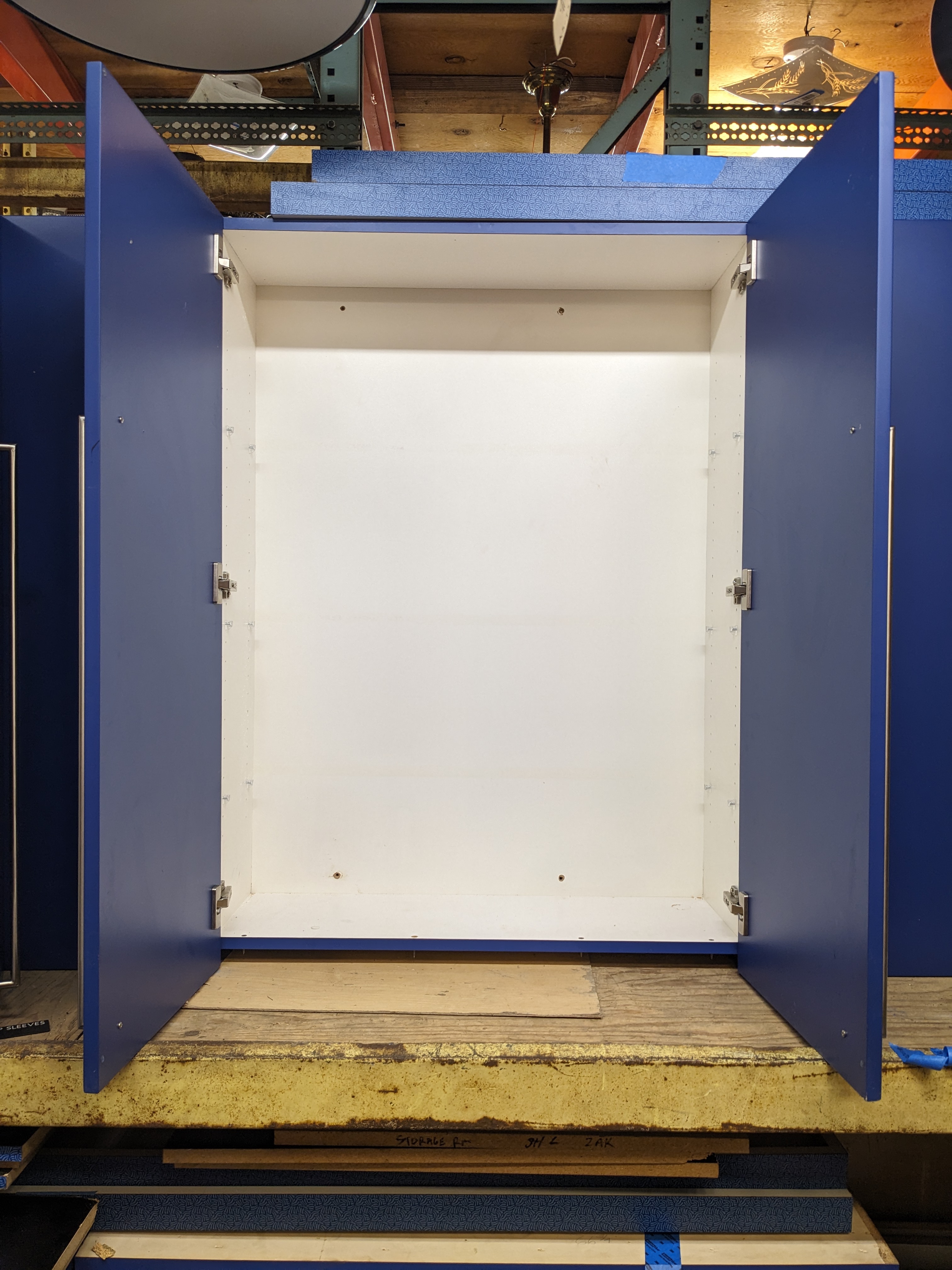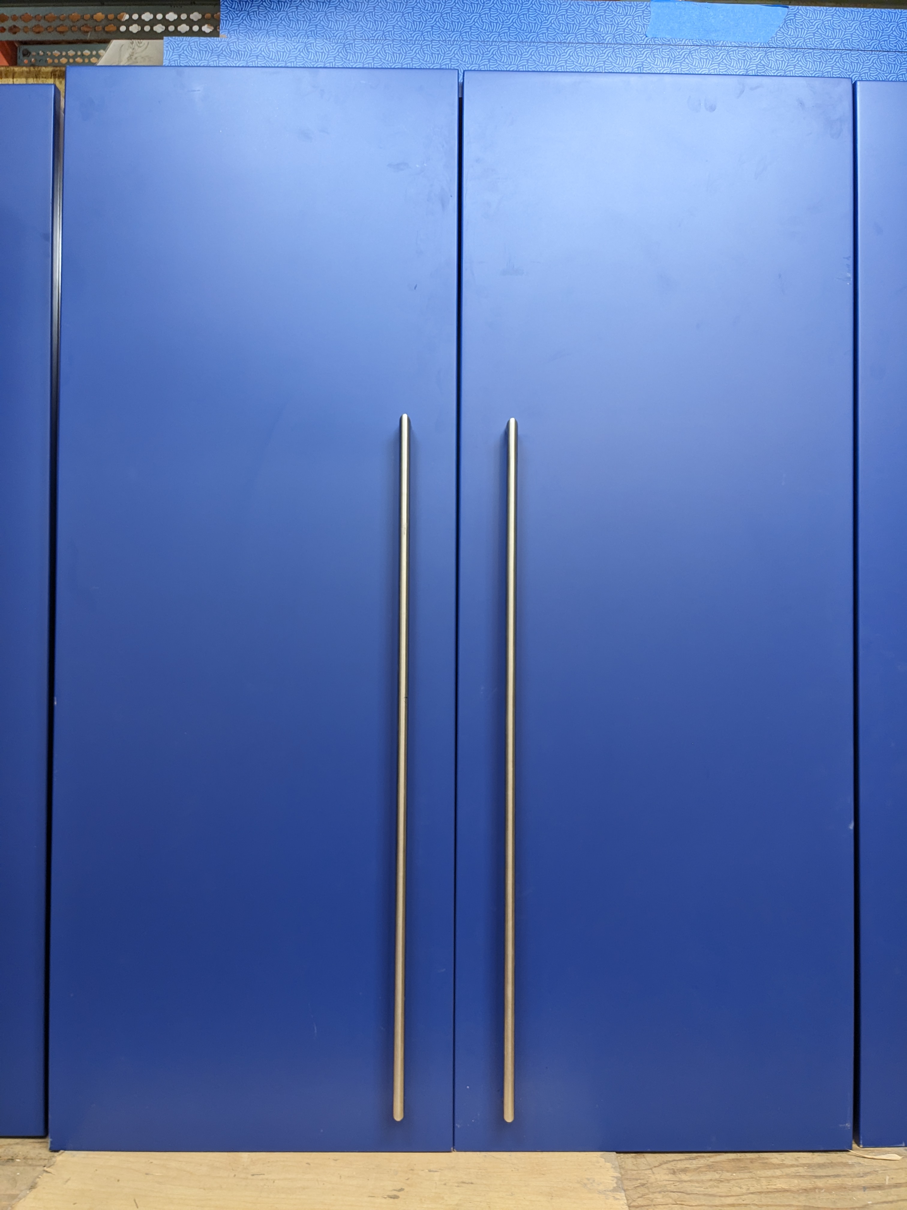 2 door large upper cabinet in rich blue. In good condition overall - Images may be representational.