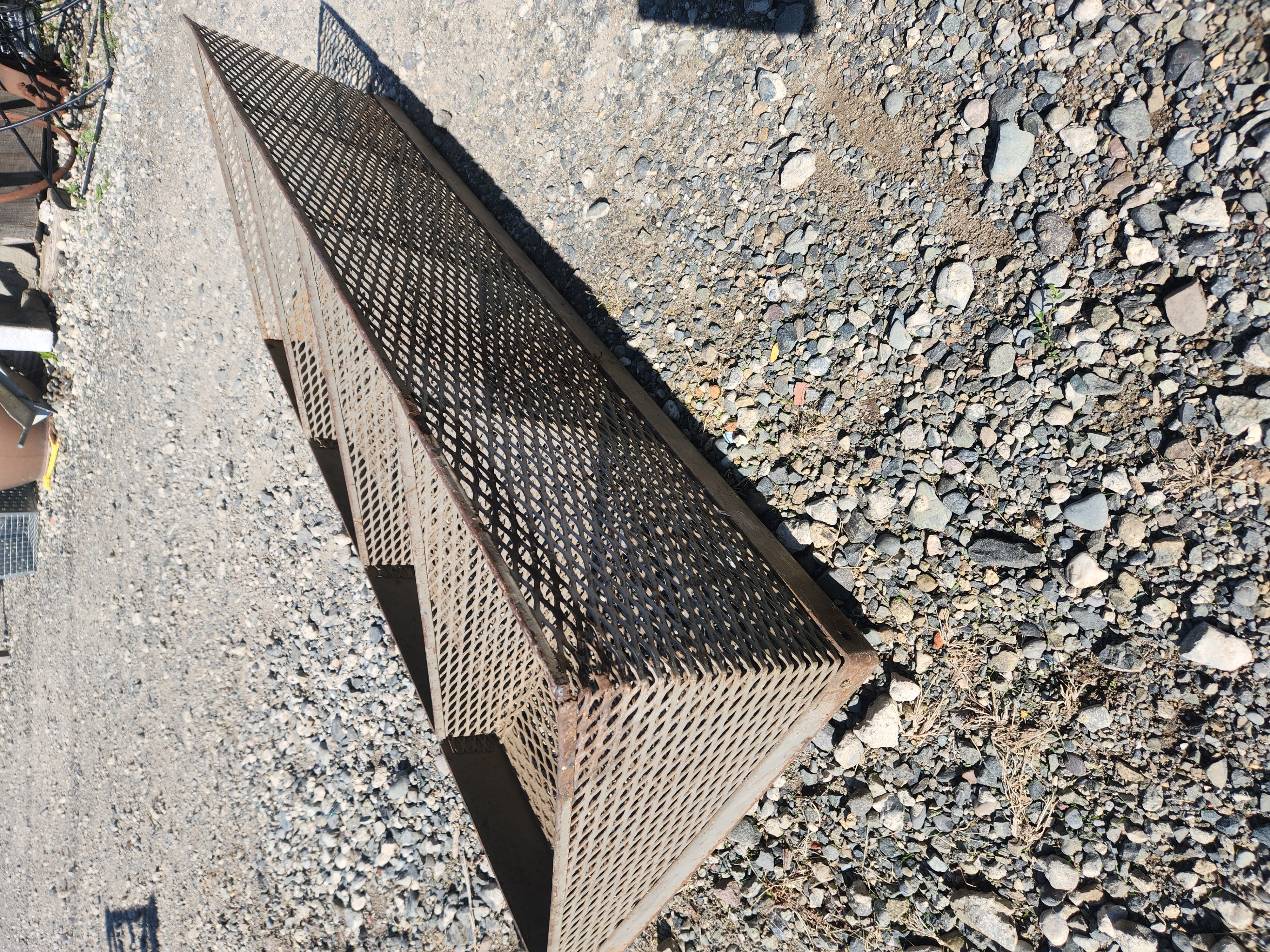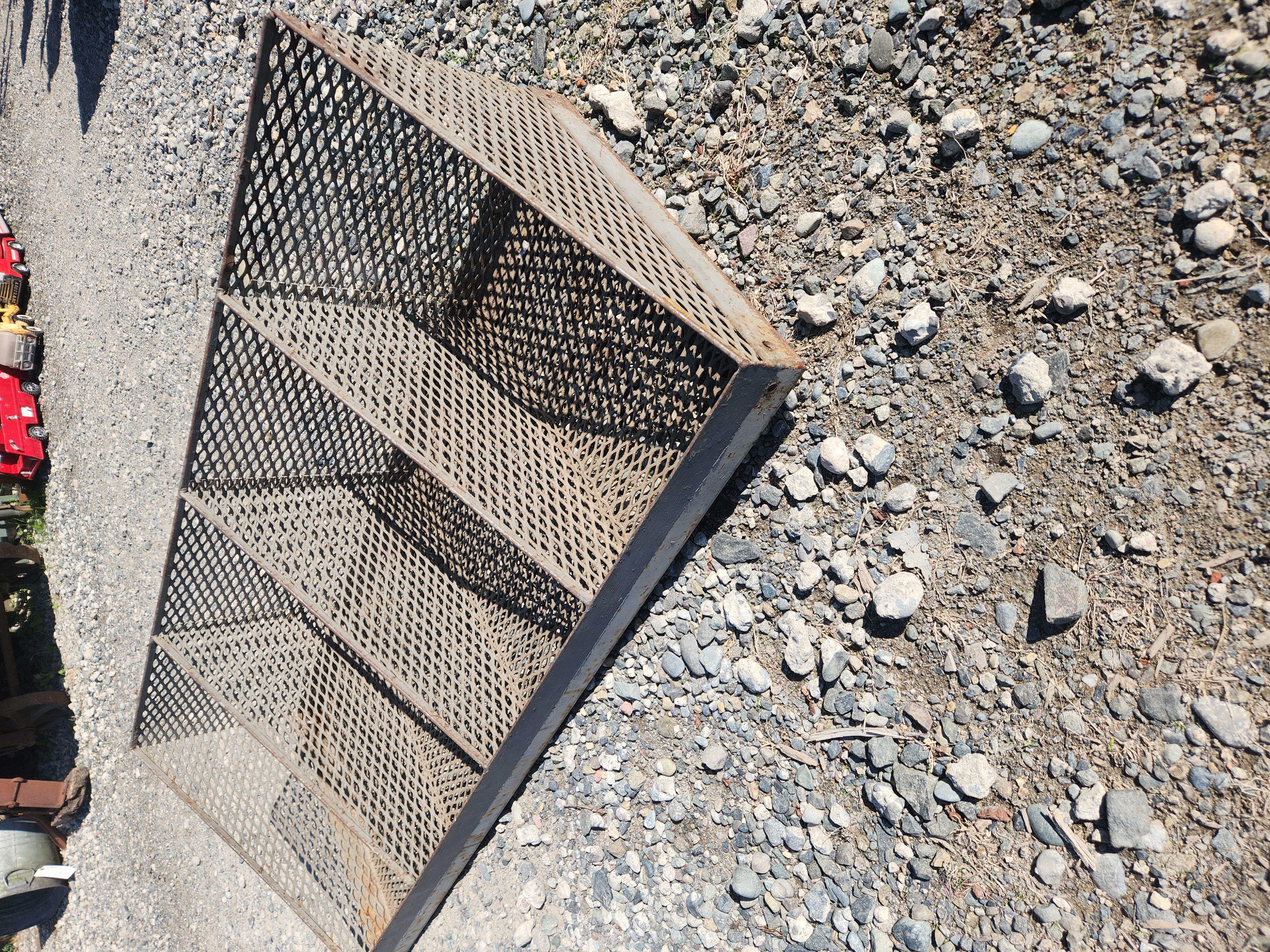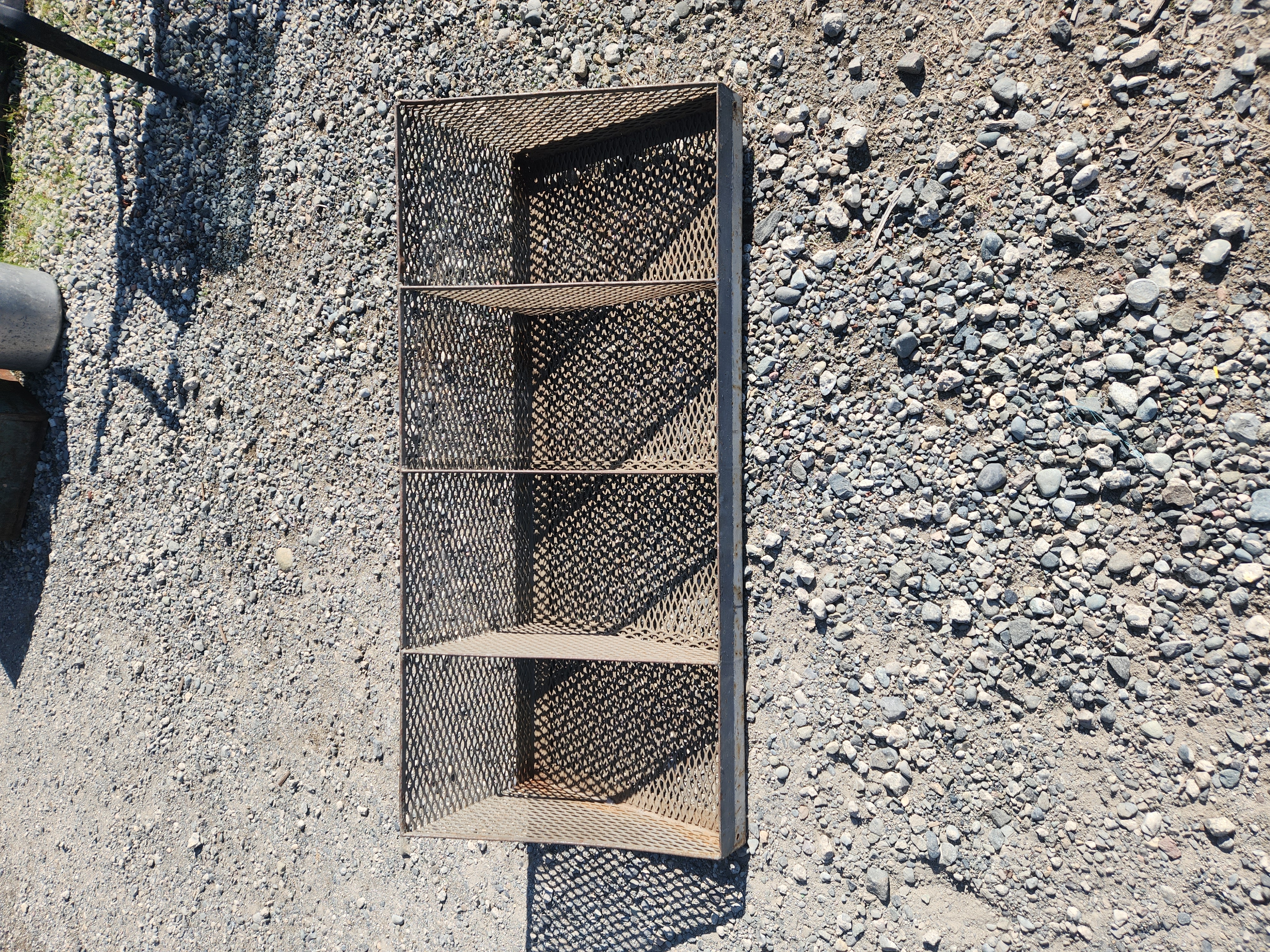 Metal mesh organizer that could make a great shelf. Very sturdy with a bit of rust. Would go great in a workshop!