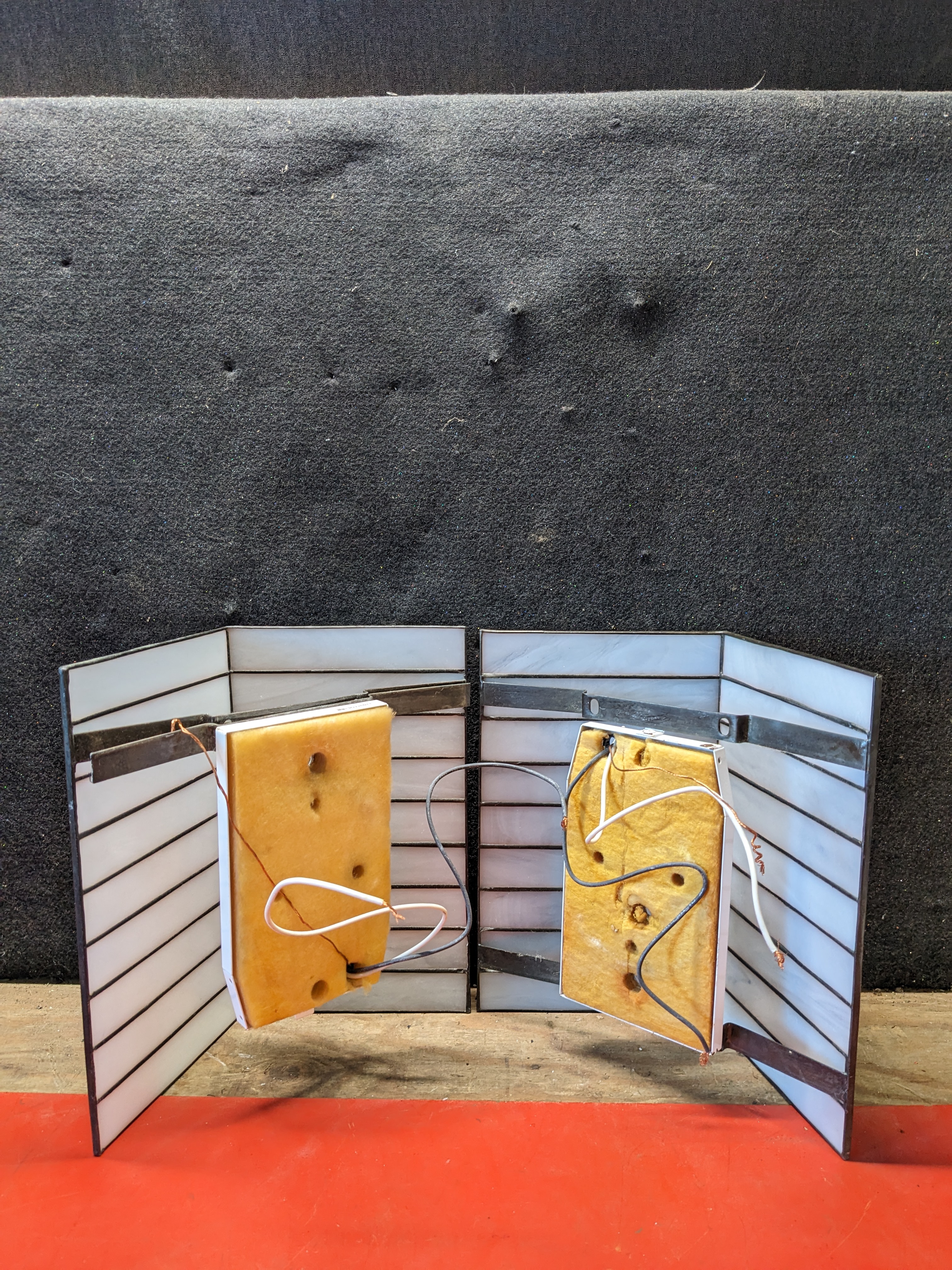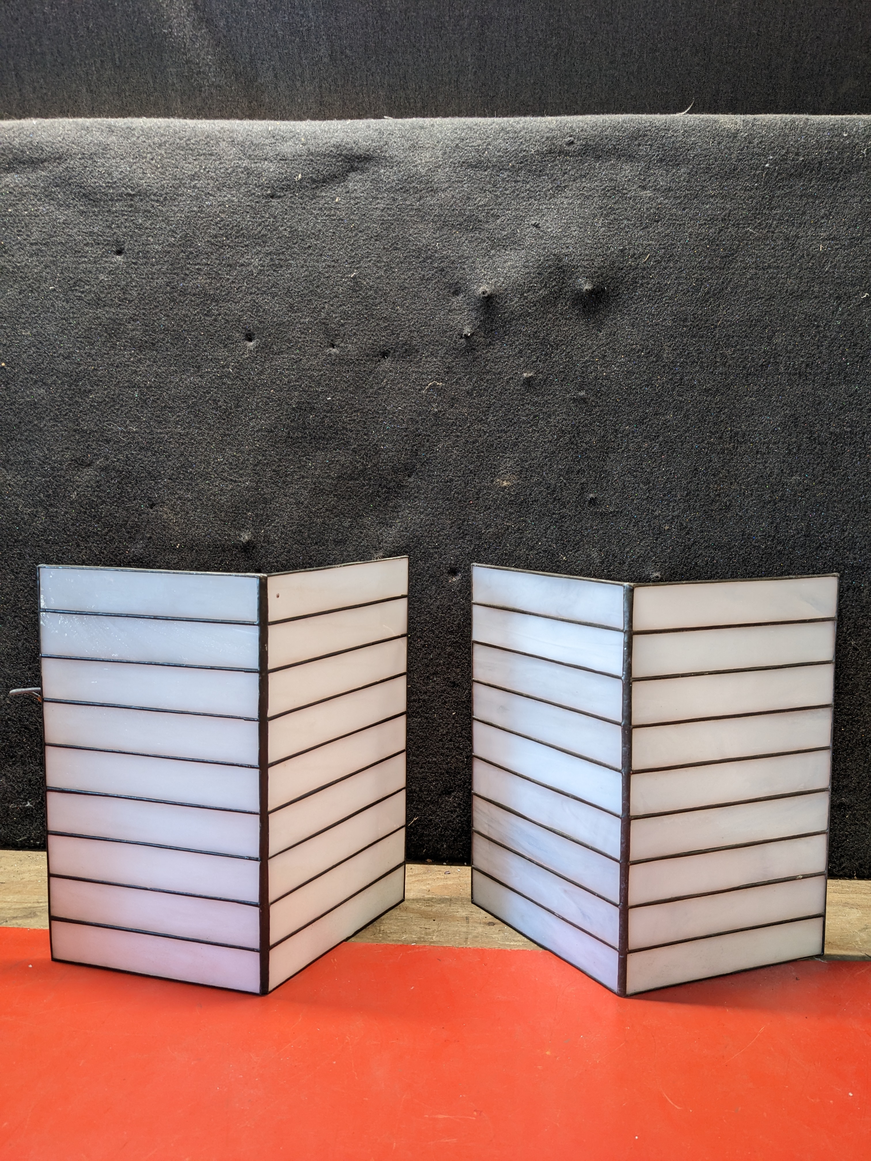 These lights are in really great condition. There is a broken bottom bracket on one of them and the piece is included. It would just need to be attached.