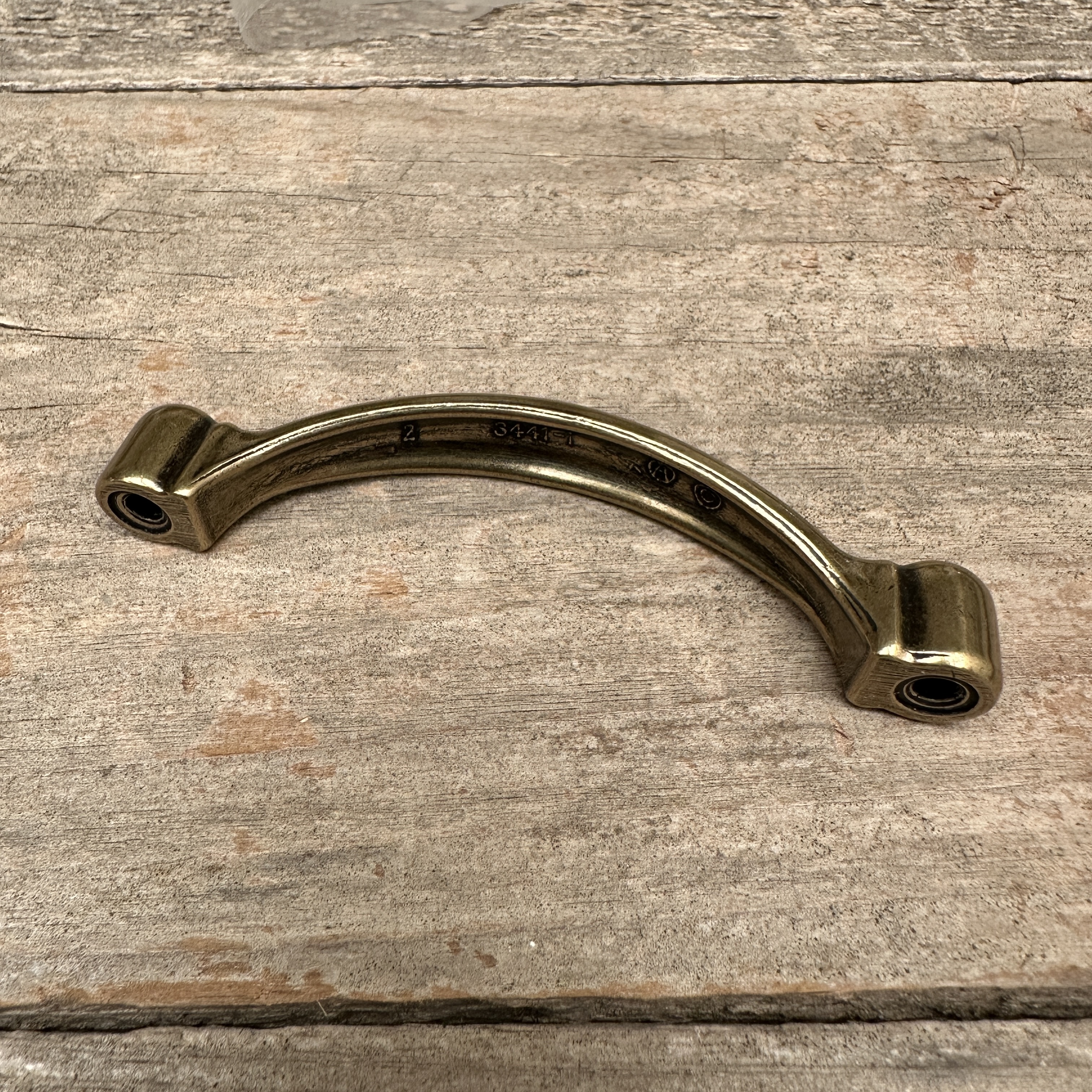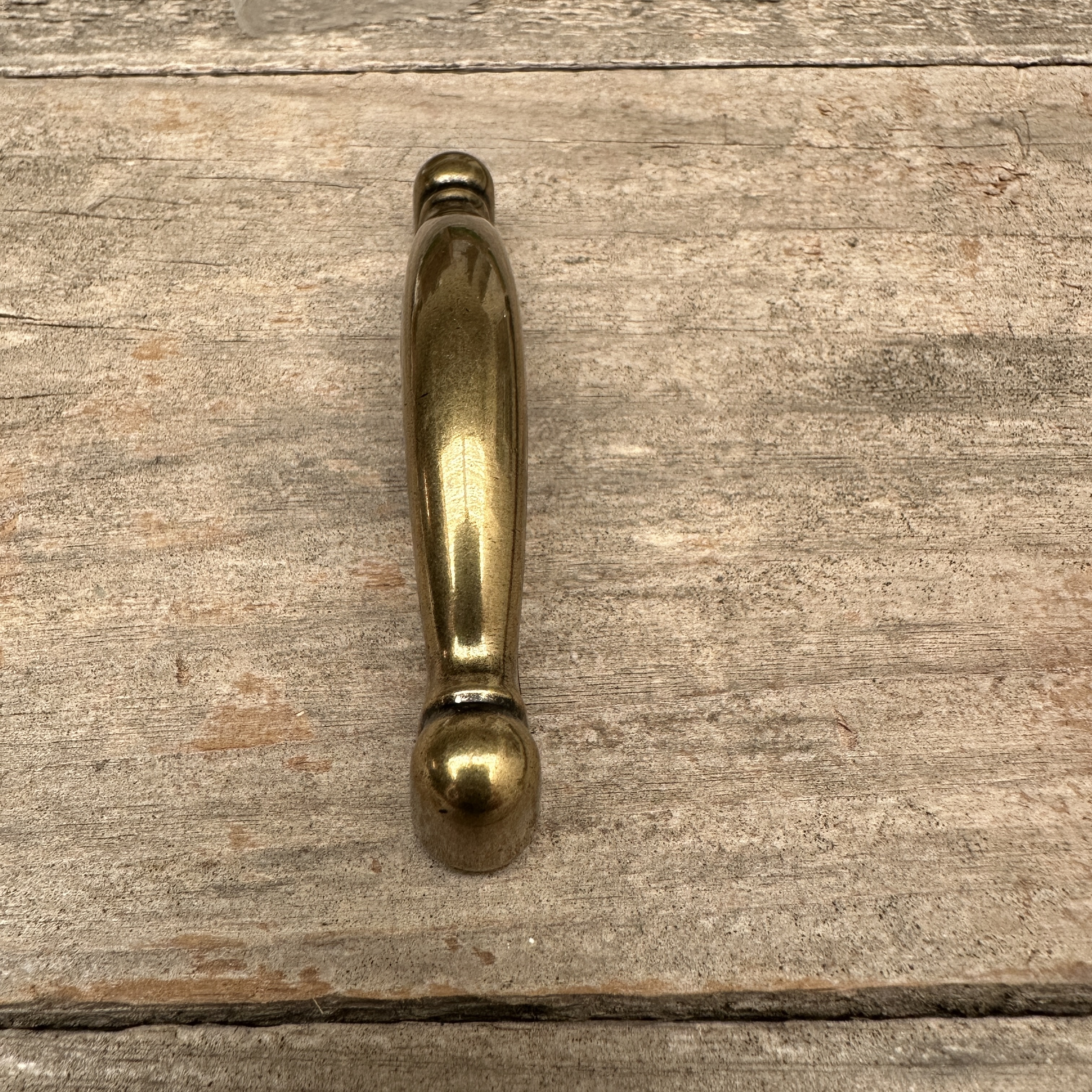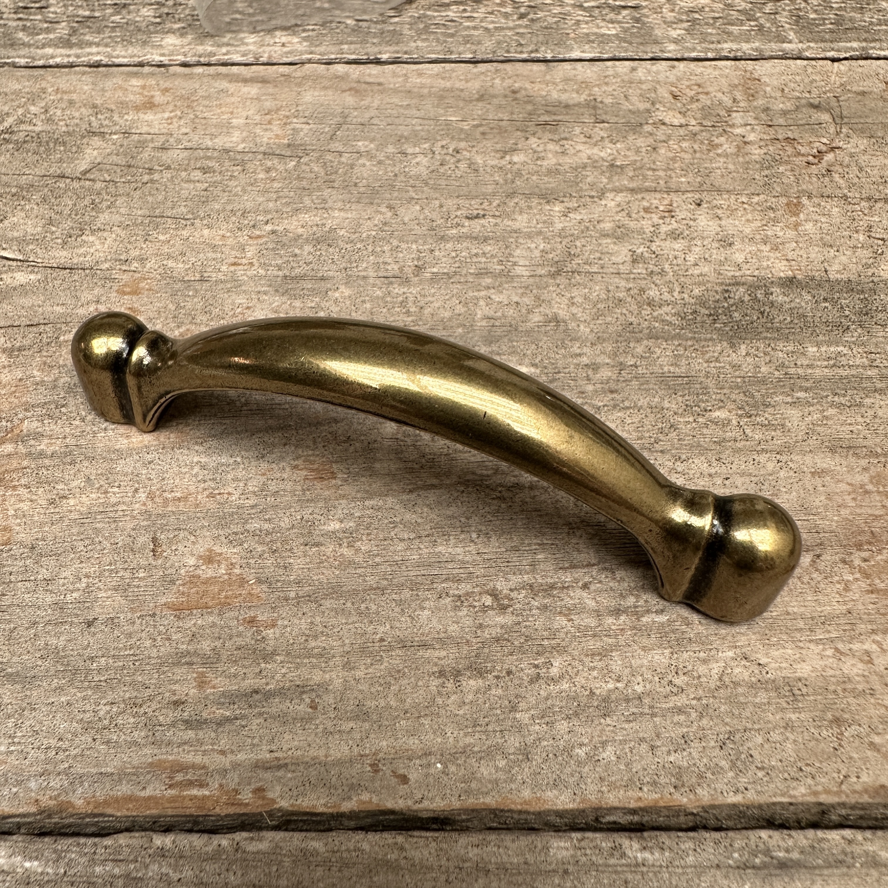 New old stock burnished brass drawer pull from Amerock. Comes with mounting screws.