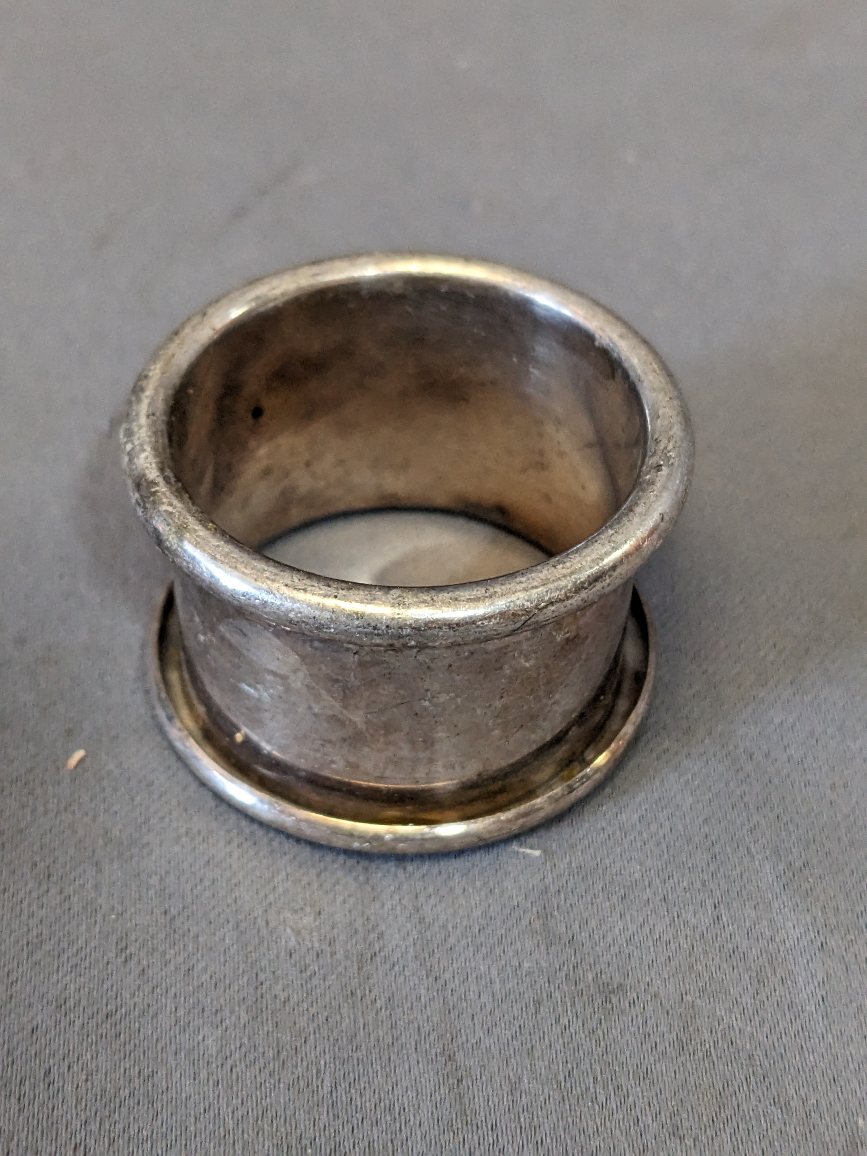 Go ahead and put a ring on it and purchase this set of 8 silver plated napkin rings. Lightly tarnished.
