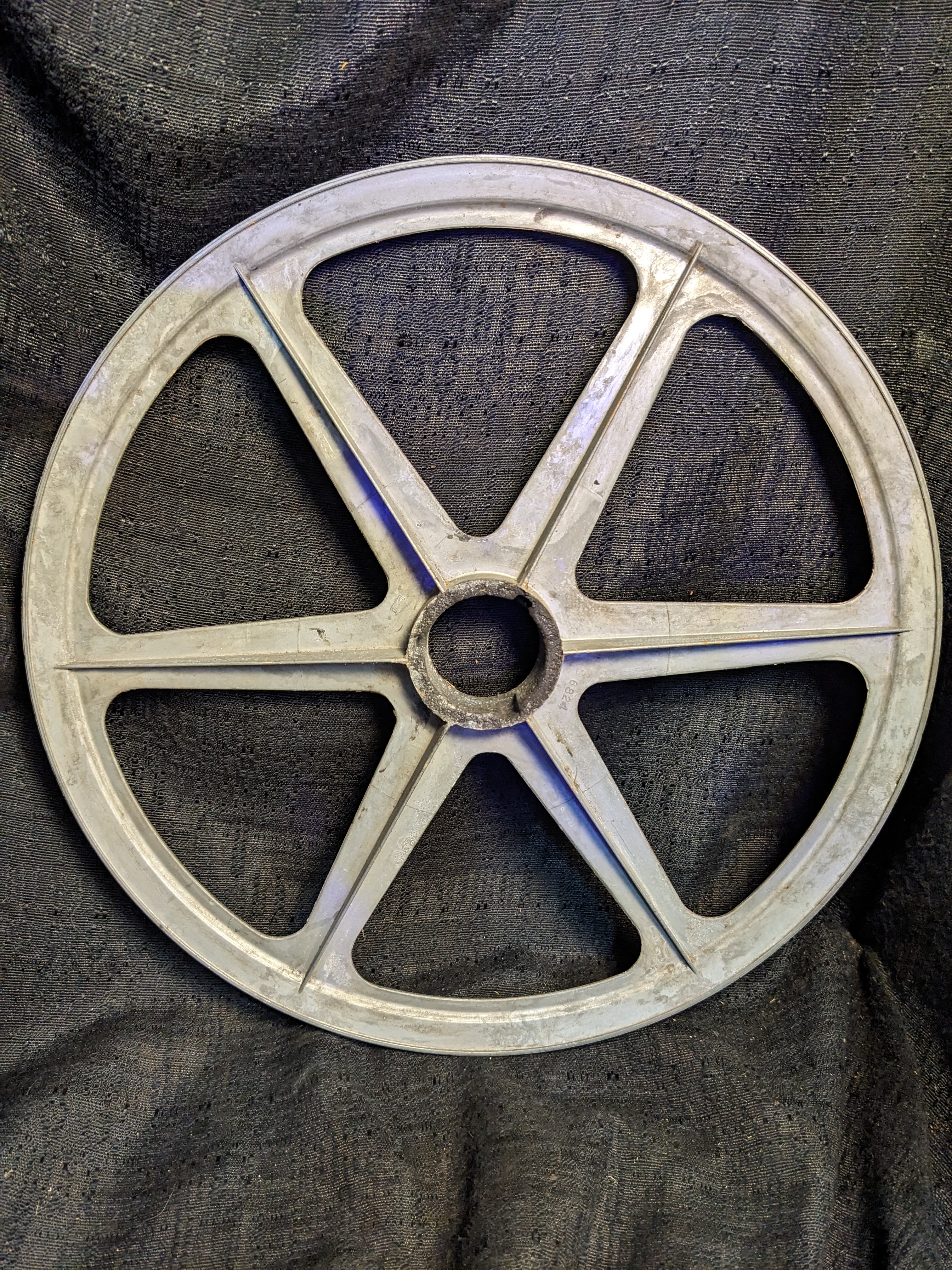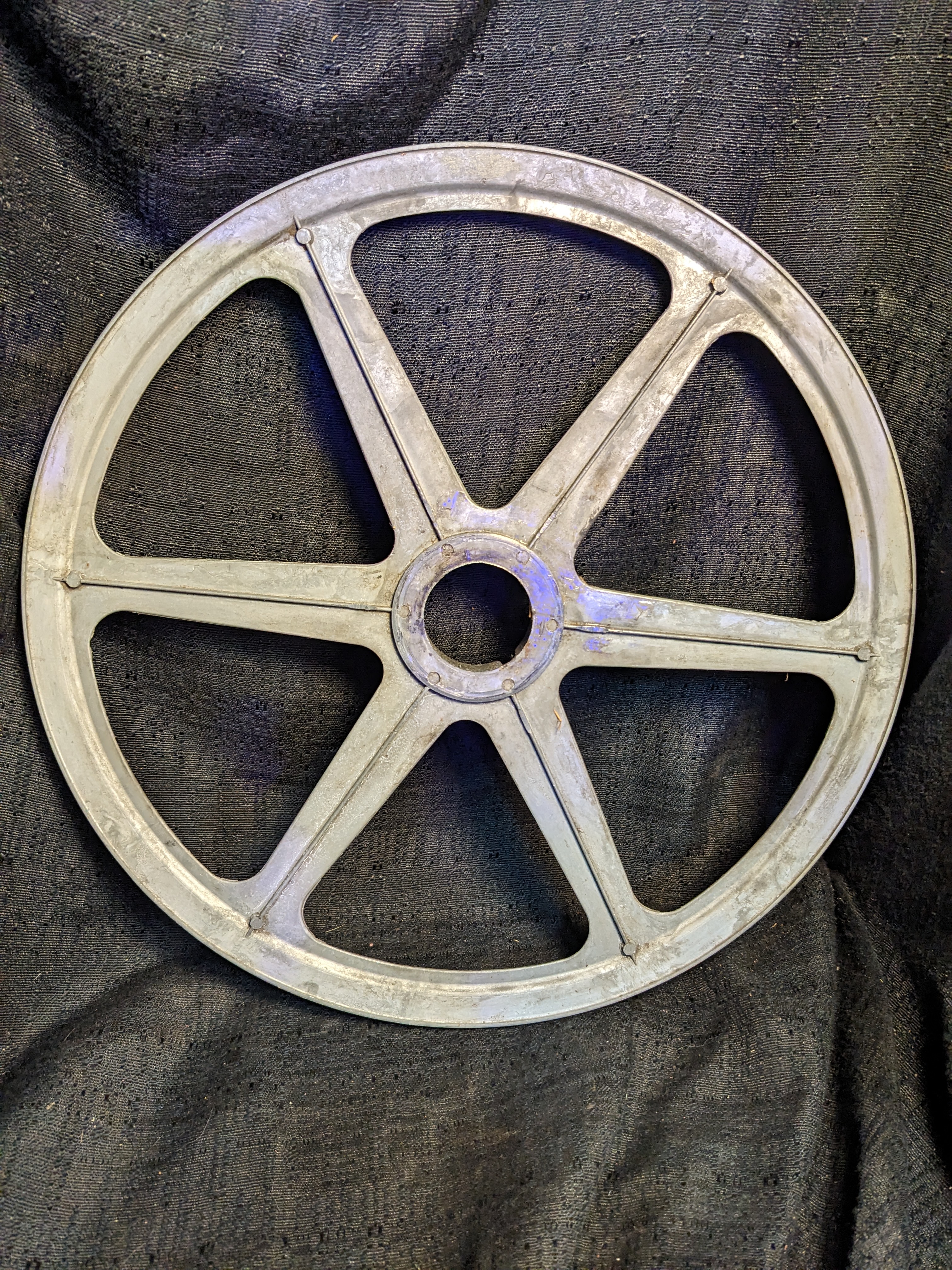 This retro die cast V-belt pulley is a fantastic industrial display item.