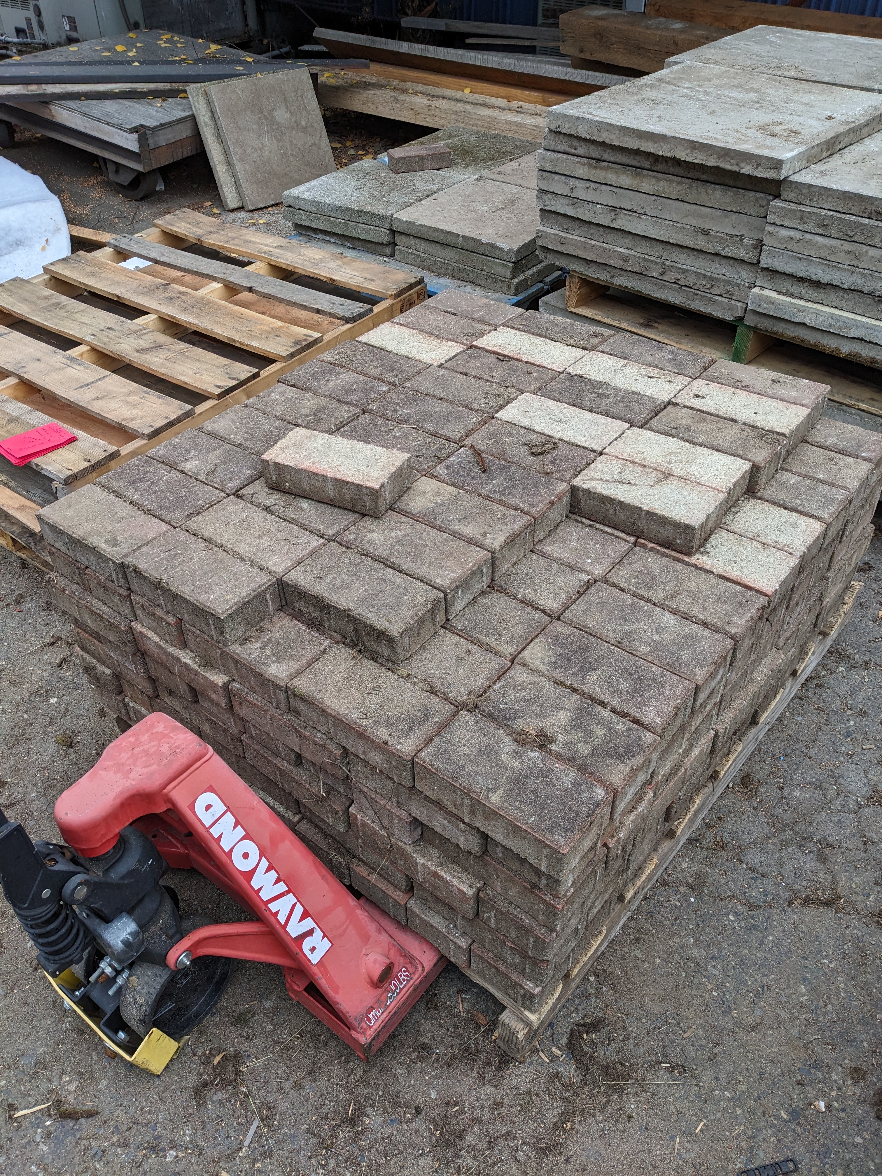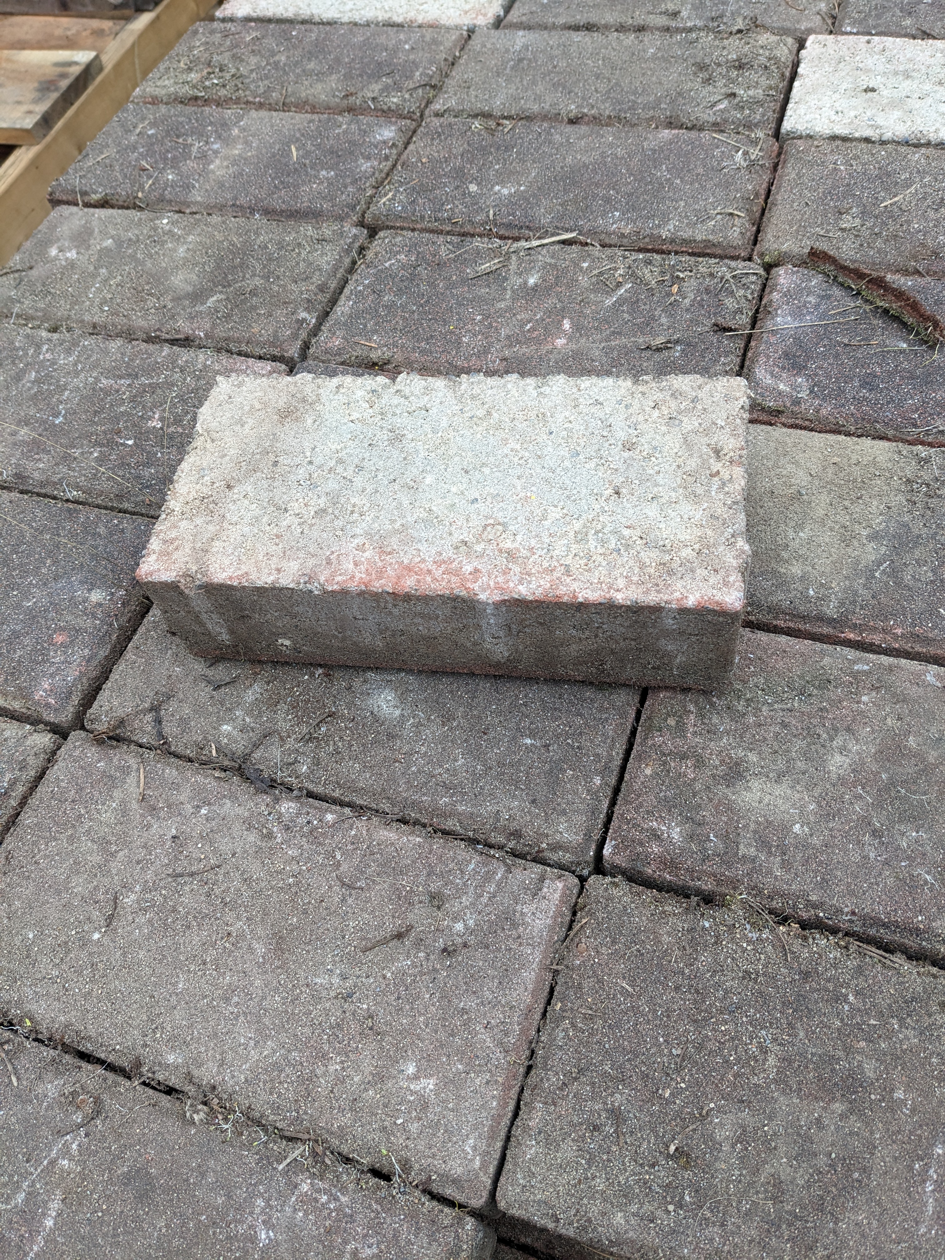 These grey multi-toned bricks each measure 8.75 x 4.5 x 2.5. Great for a patio, walkway or even a garden planter.