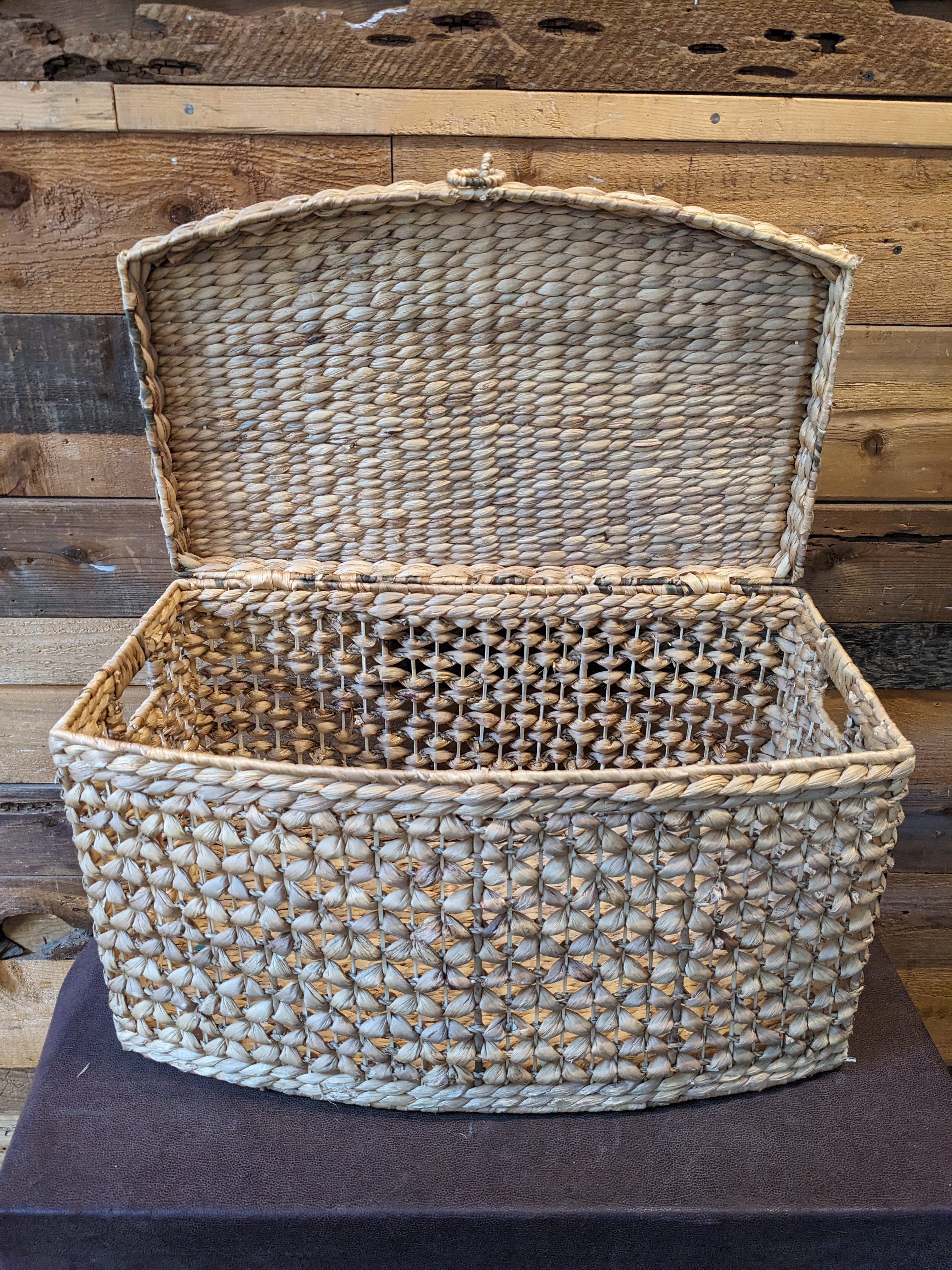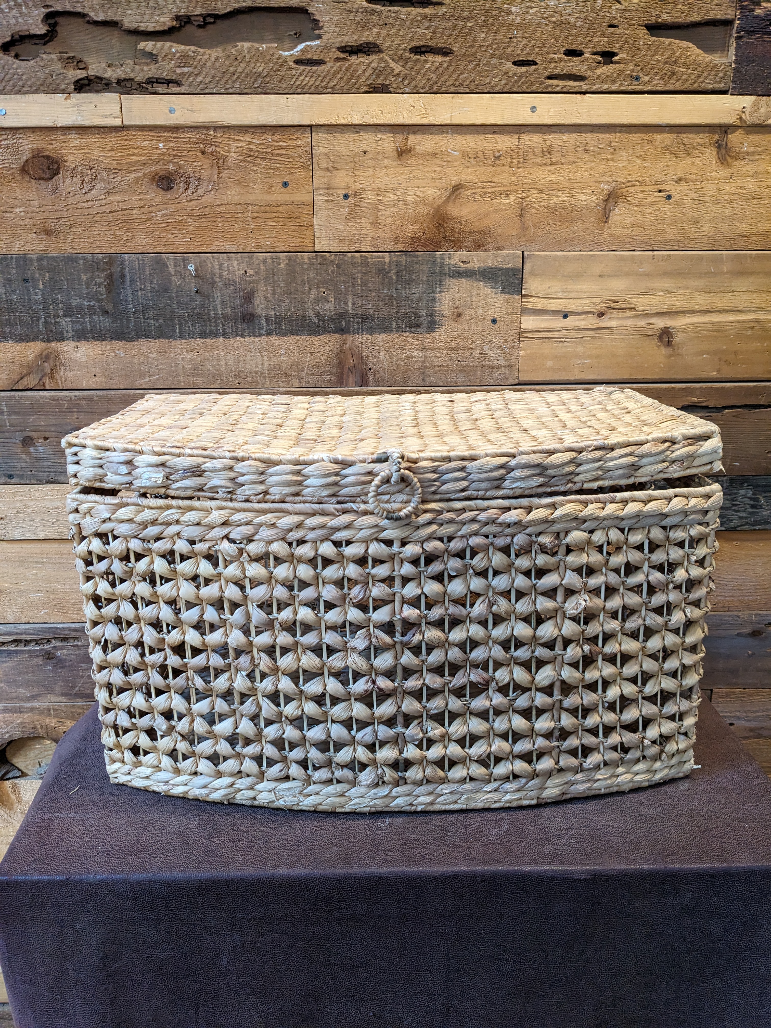 Crafted from durable water hyacinth.
