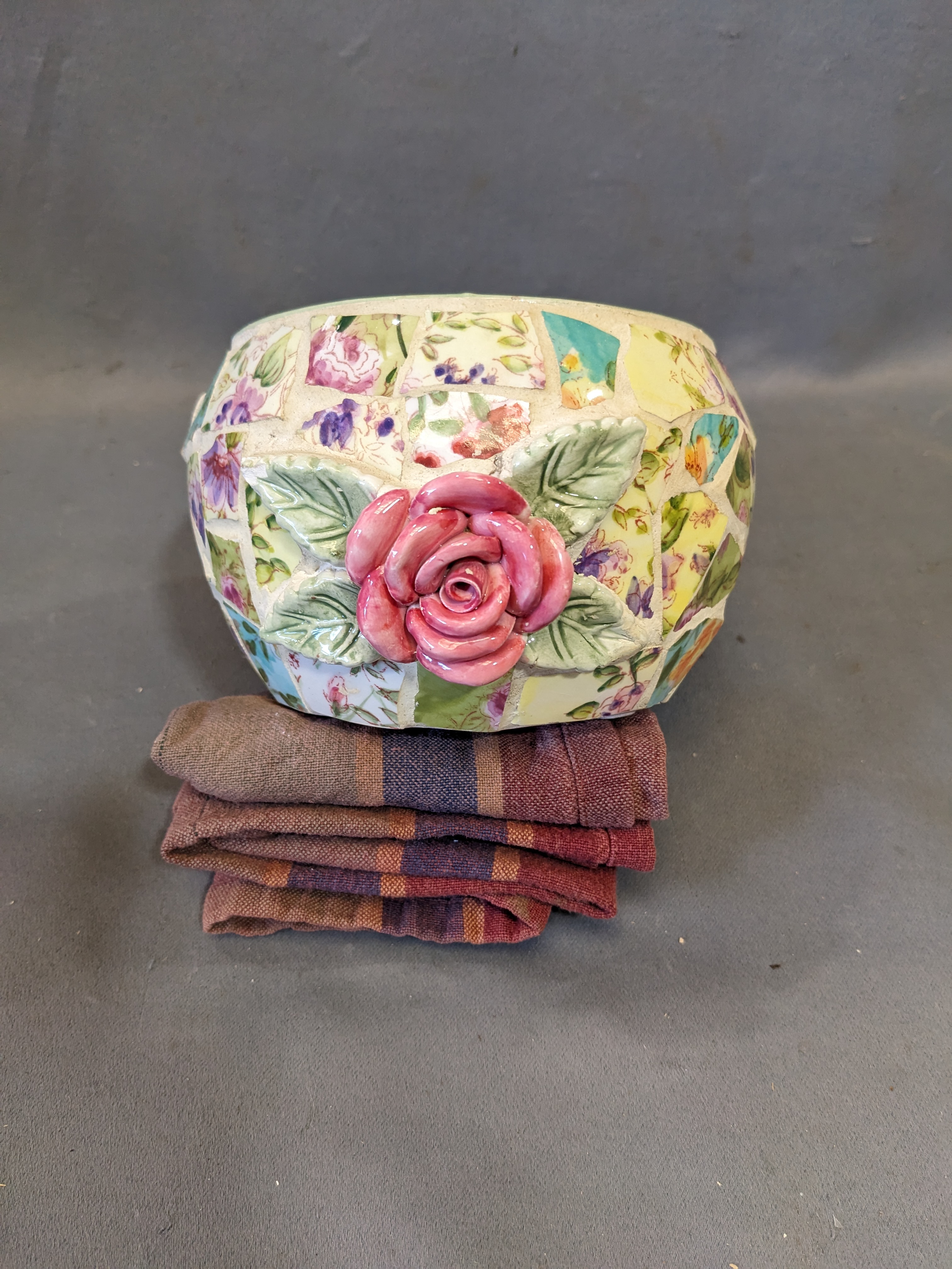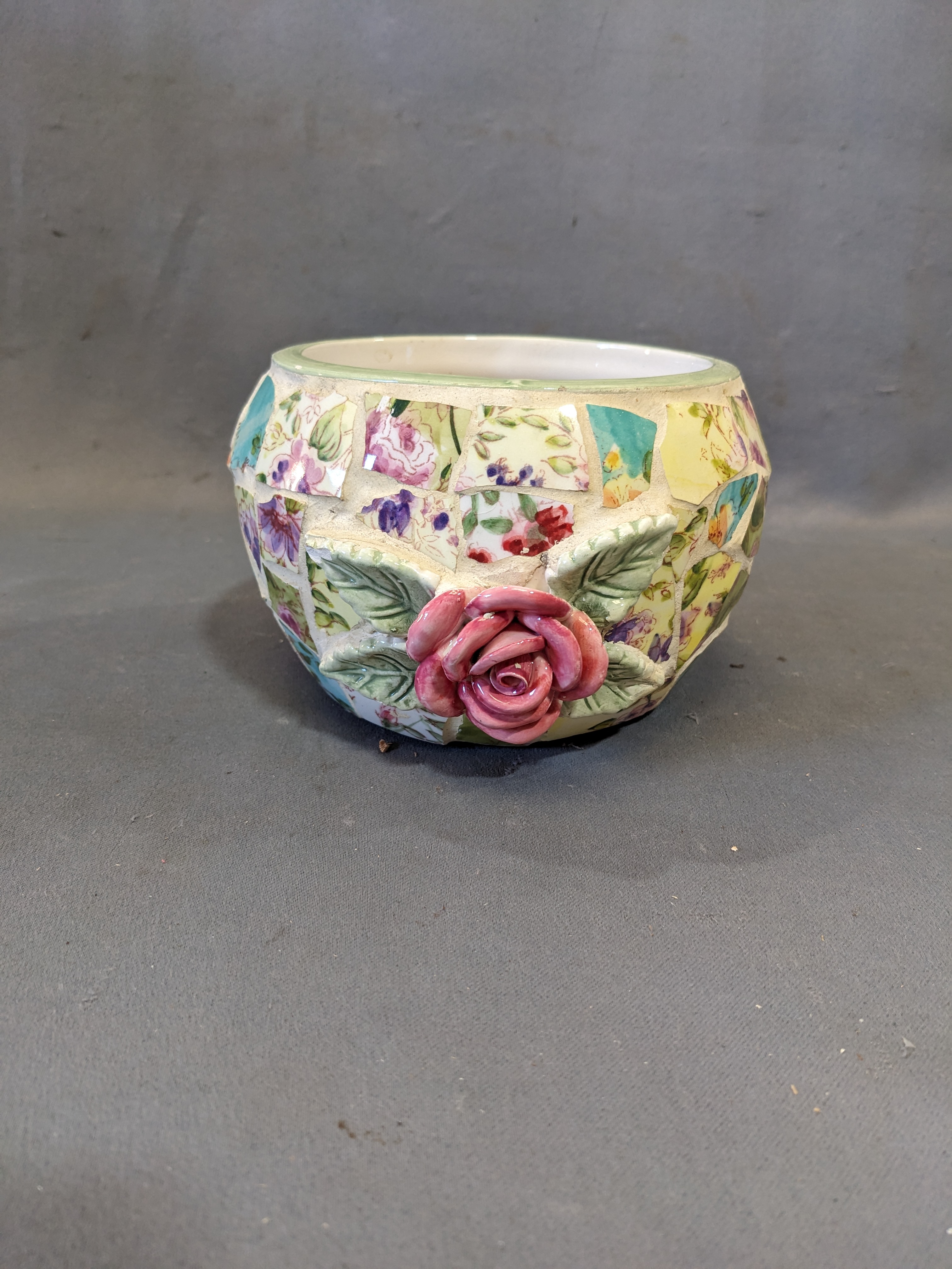 Hand crafted floral mosaic pot. I'm imagining it in my kitchen window now, all it needs is a plant and a home! 6 x 4 x 6