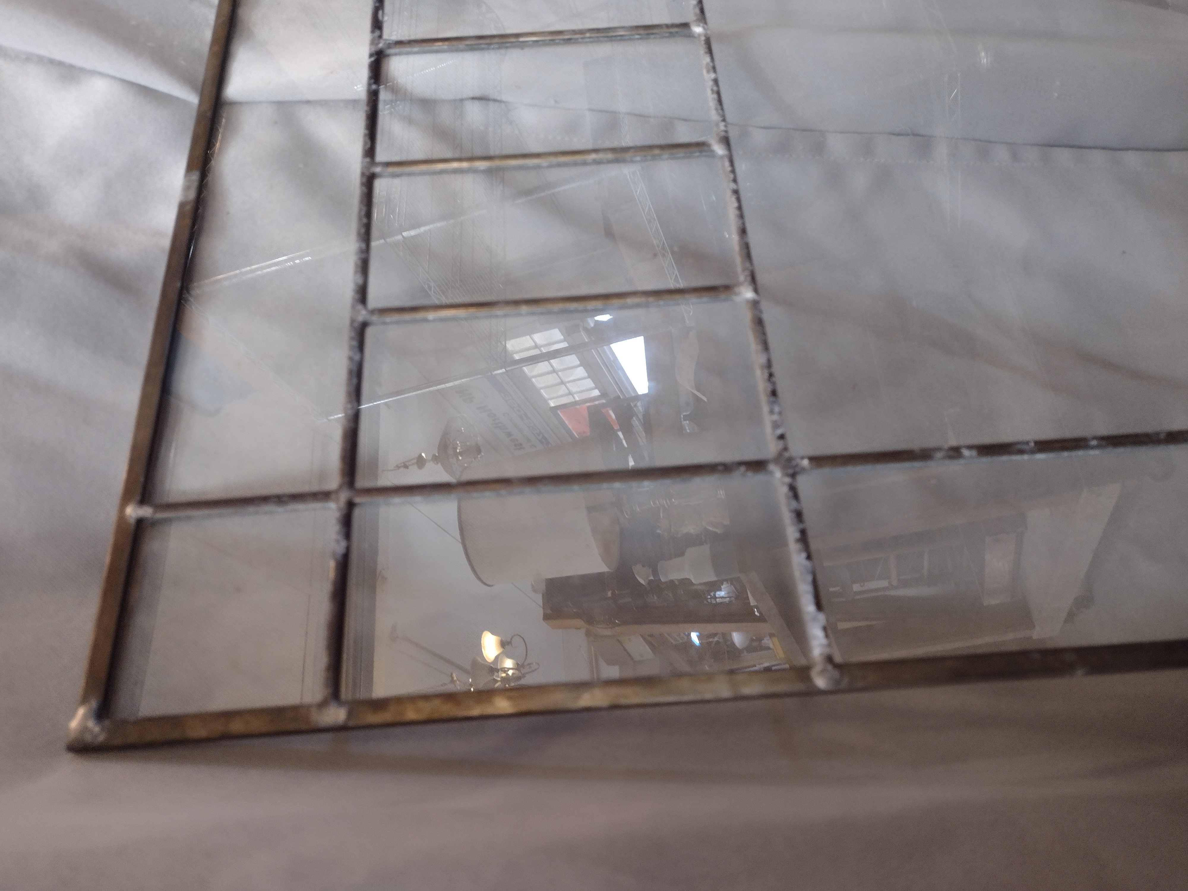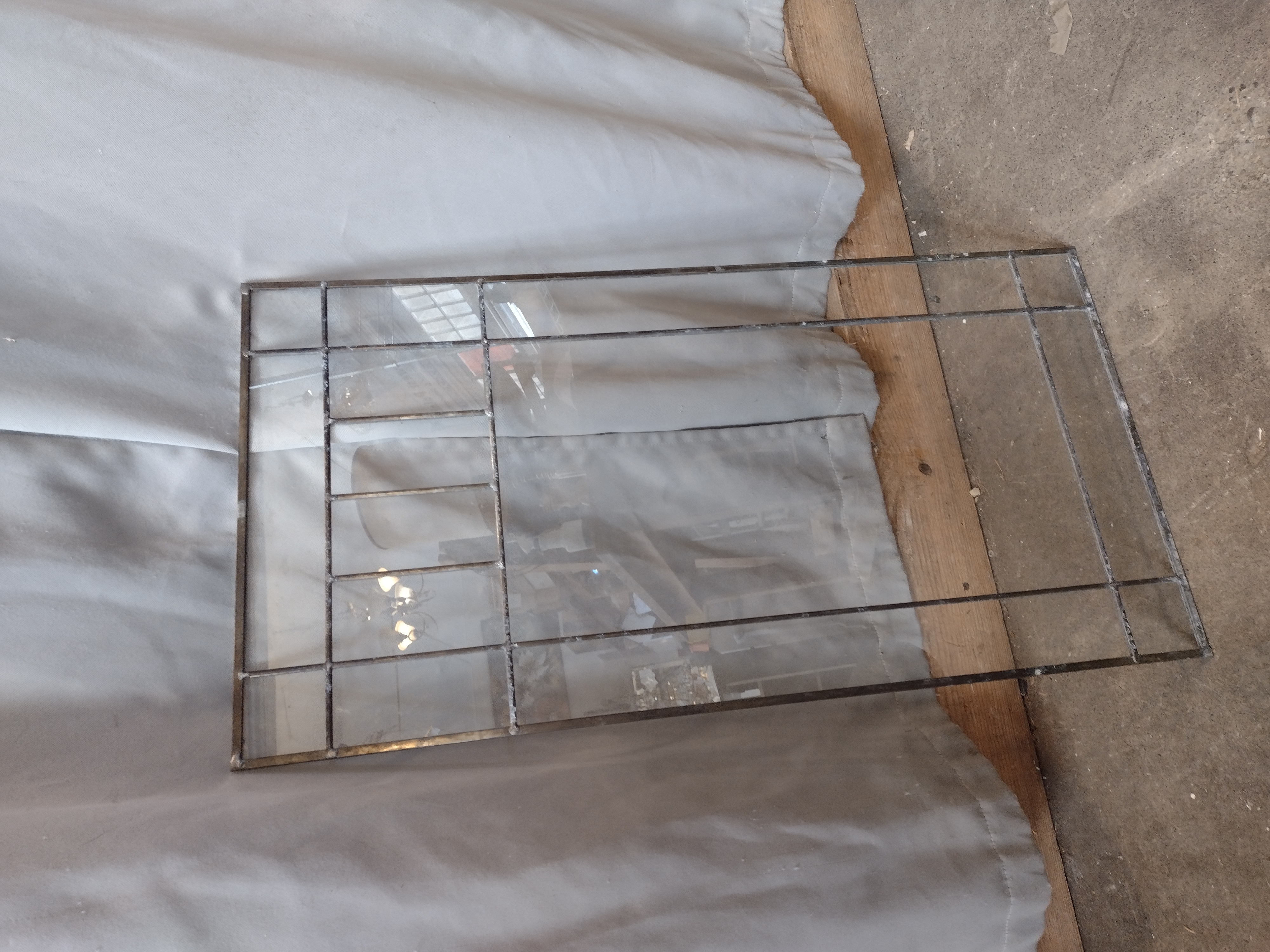 Older single pane window panel in fair condition, no broken panes or solder just a bit of surface rust.