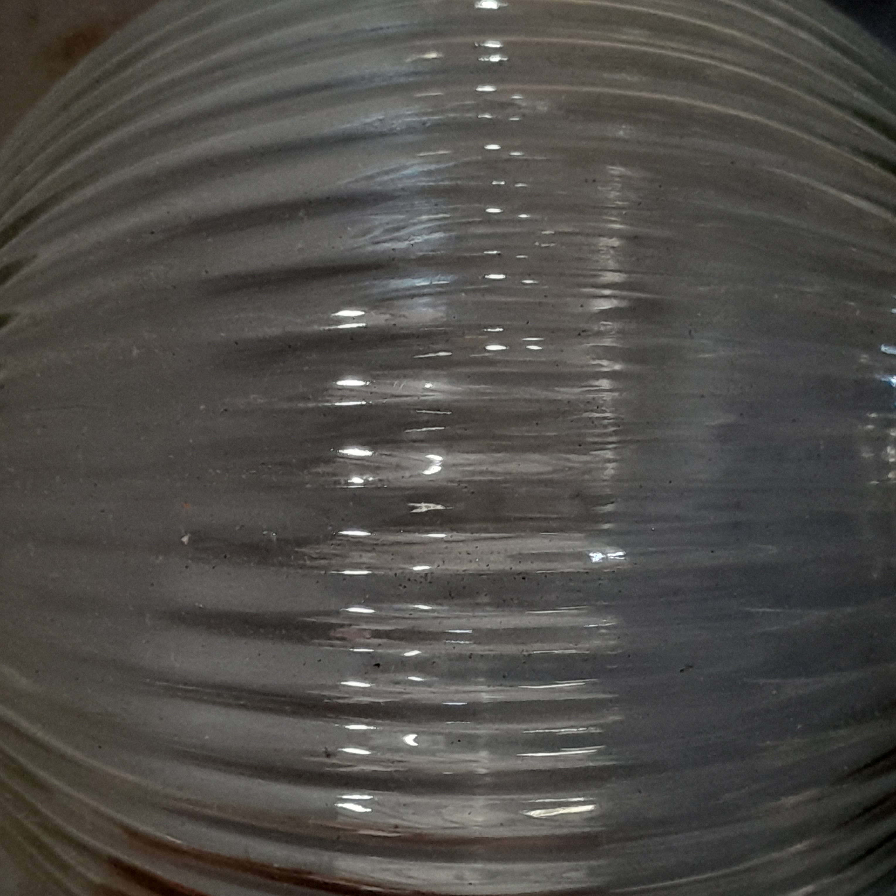 Ribbed and ready to defuse your light. This shade has a fun texture and allows alot to light through. No cracks or chips. Opening is 3 inches. Should replace any other shade that fits that size.