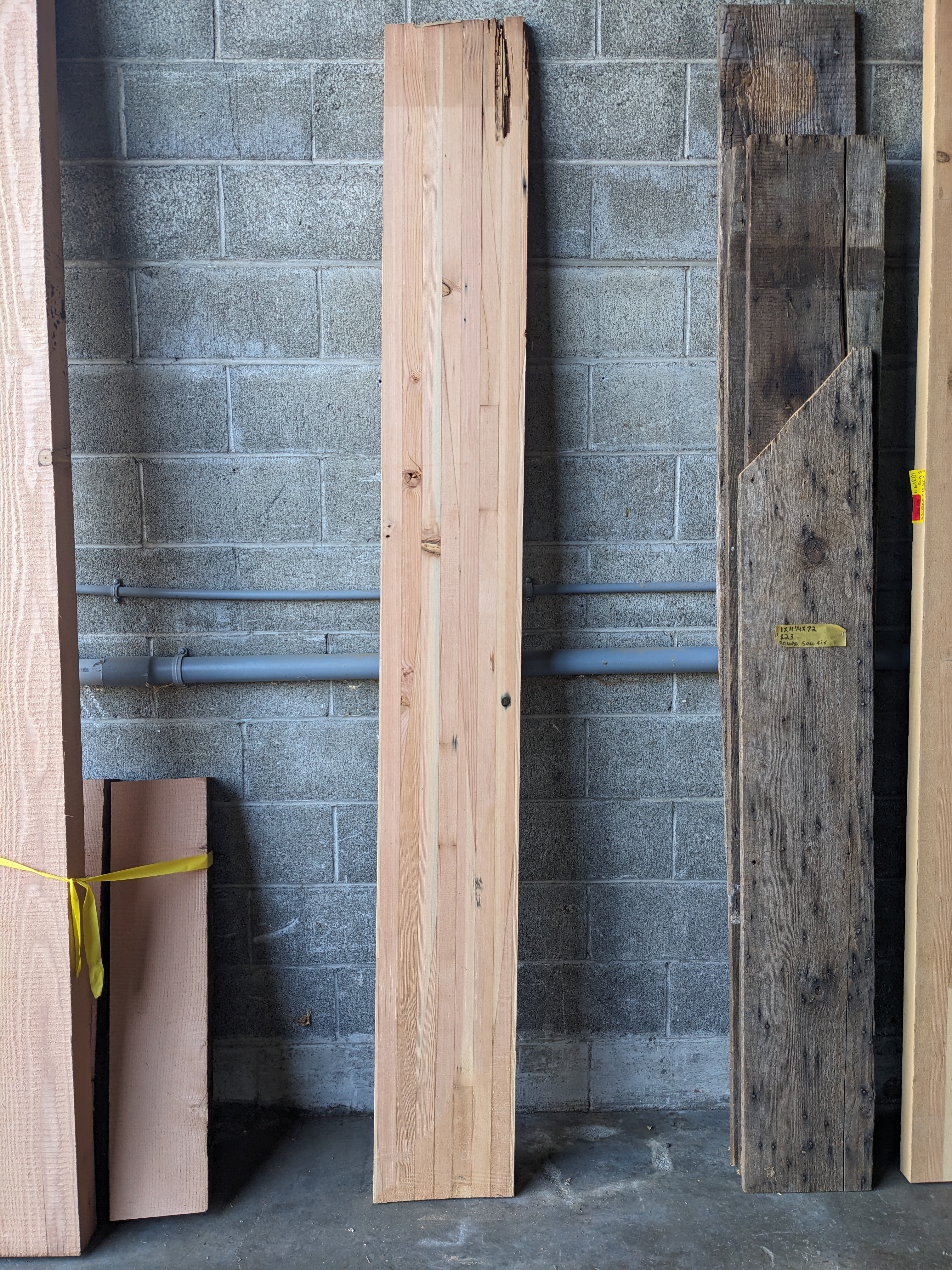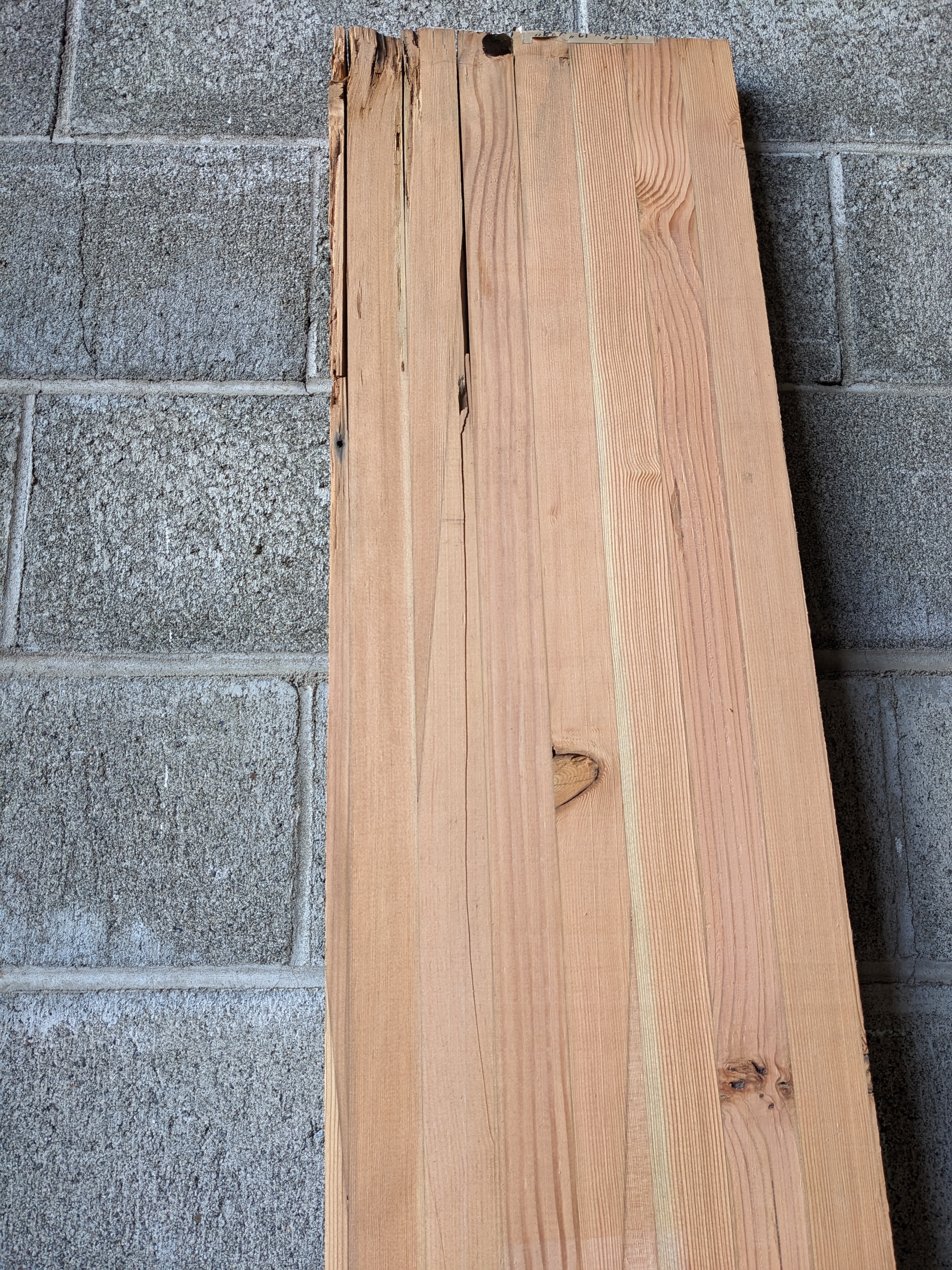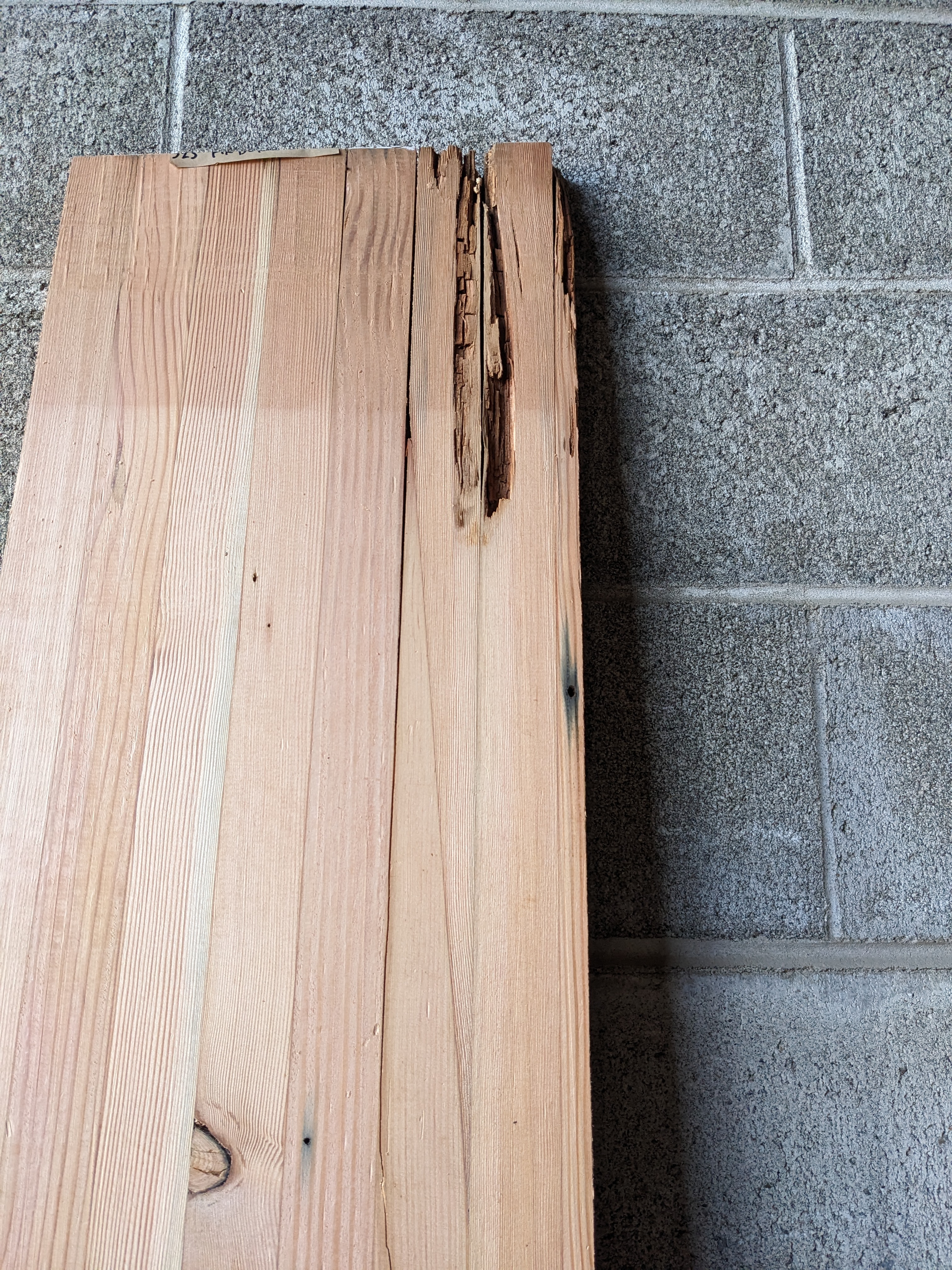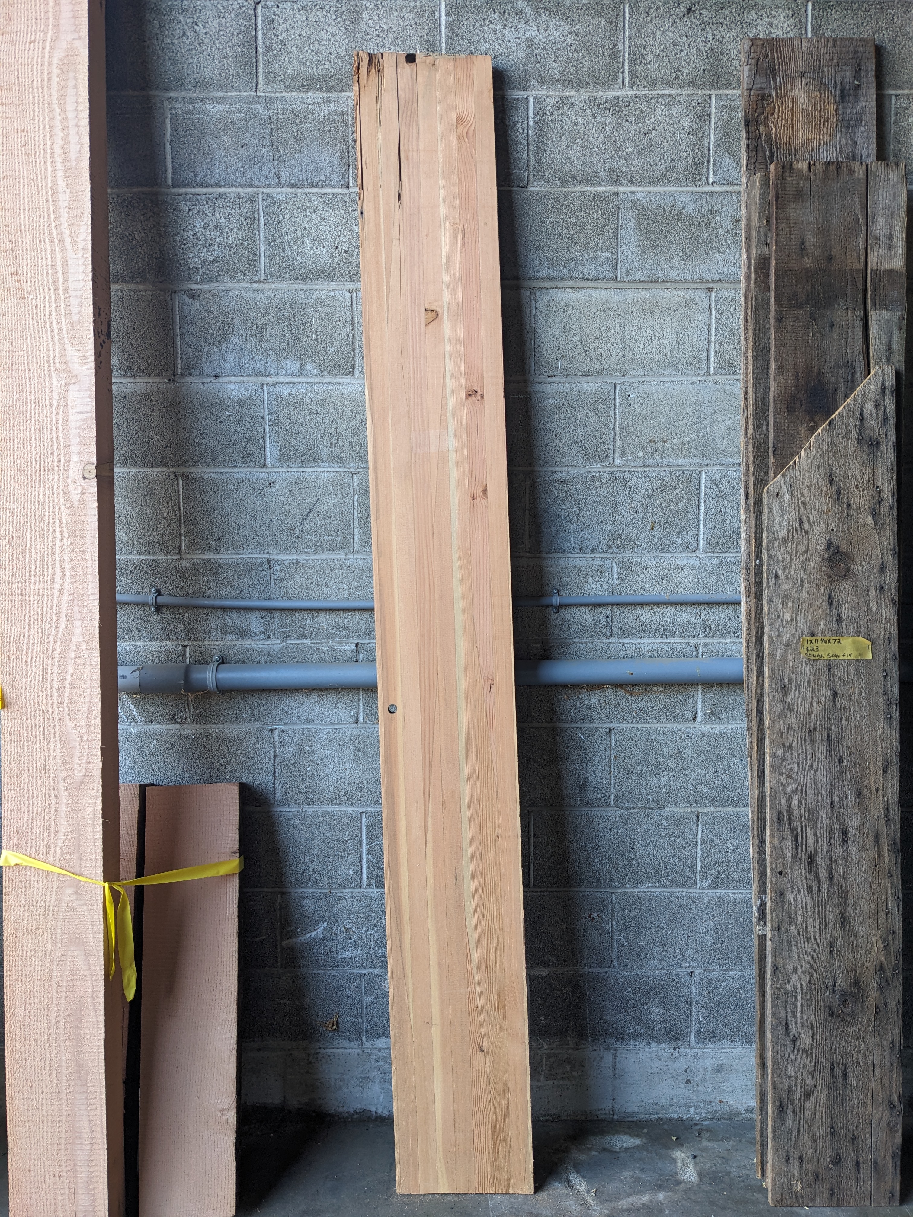 This fir butcherblock was locally sourced and milled at our very own mill in Tacoma. Surfaced on both faces for ease of finishing. This piece has a large crack and a bit of wood rot, and as such has been priced to account for the damage. The usable portion of this board measures 1.125 x 12 x 69 inches, though the whole board is roughly 99 inches long.