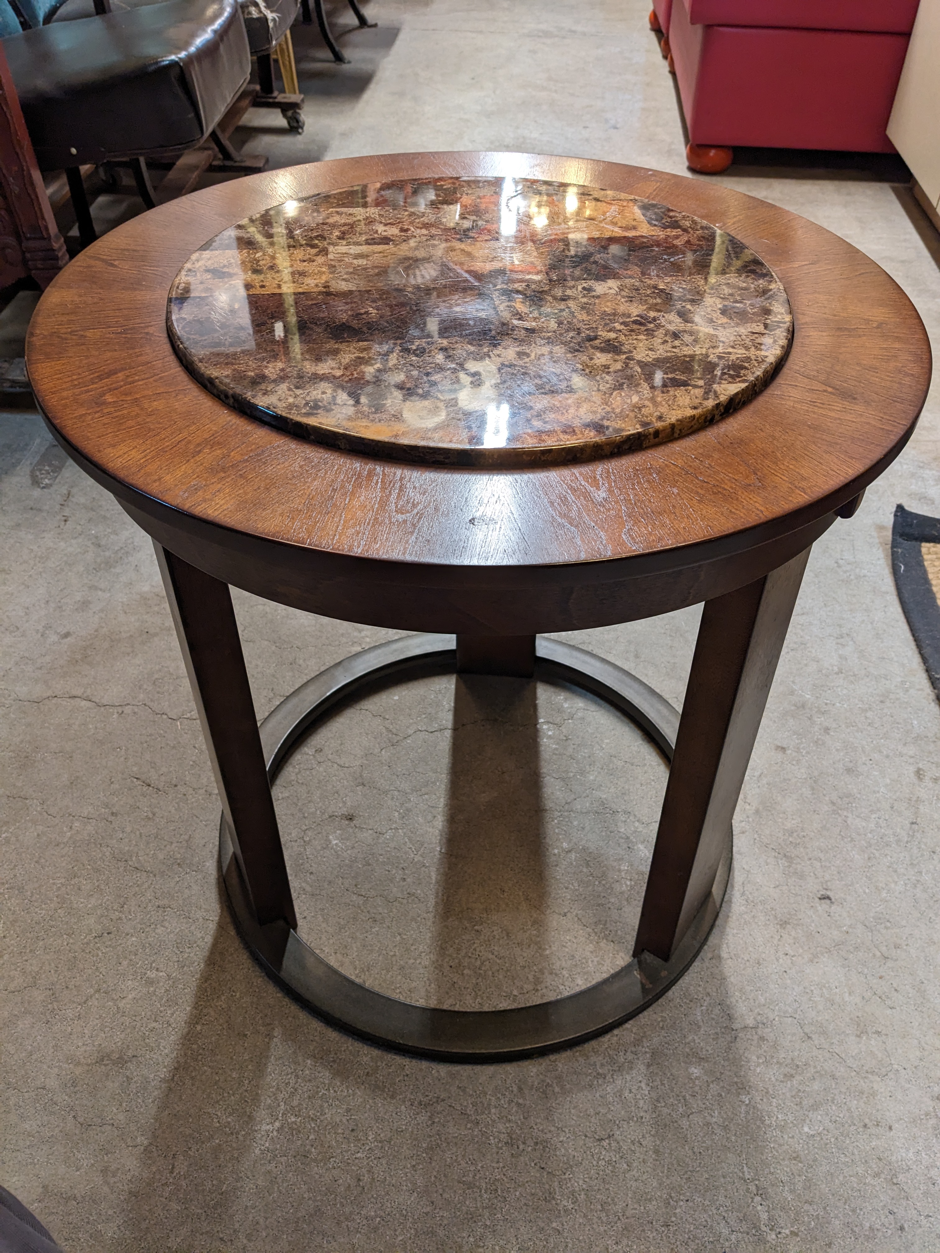 This modern circular end table is in great shape and would be a wonderful addition to your home.