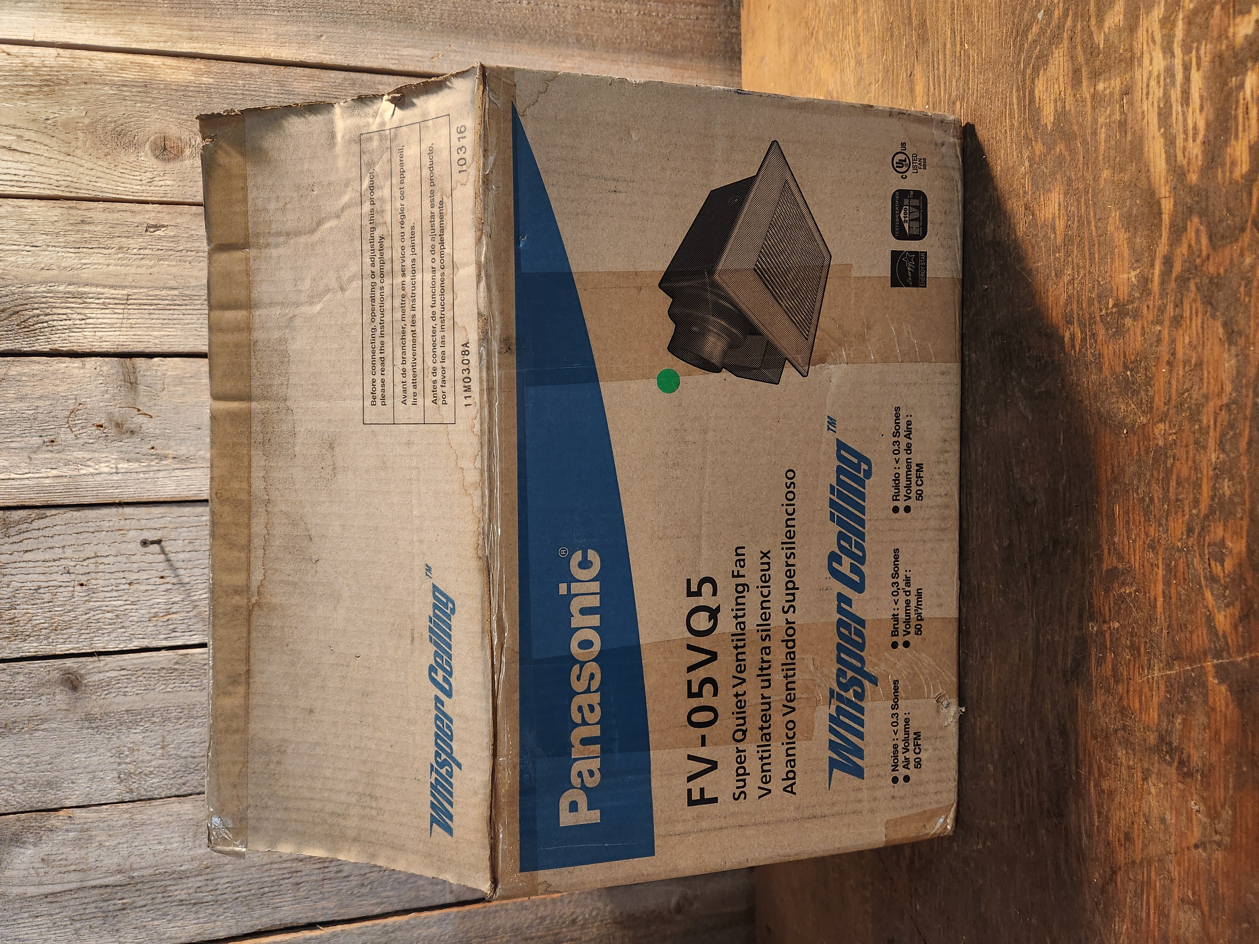 Never installed panasonic bathroom ceiling fan. Still in the box with instructions, though it has been opened. Save yourself some money on a new fan!