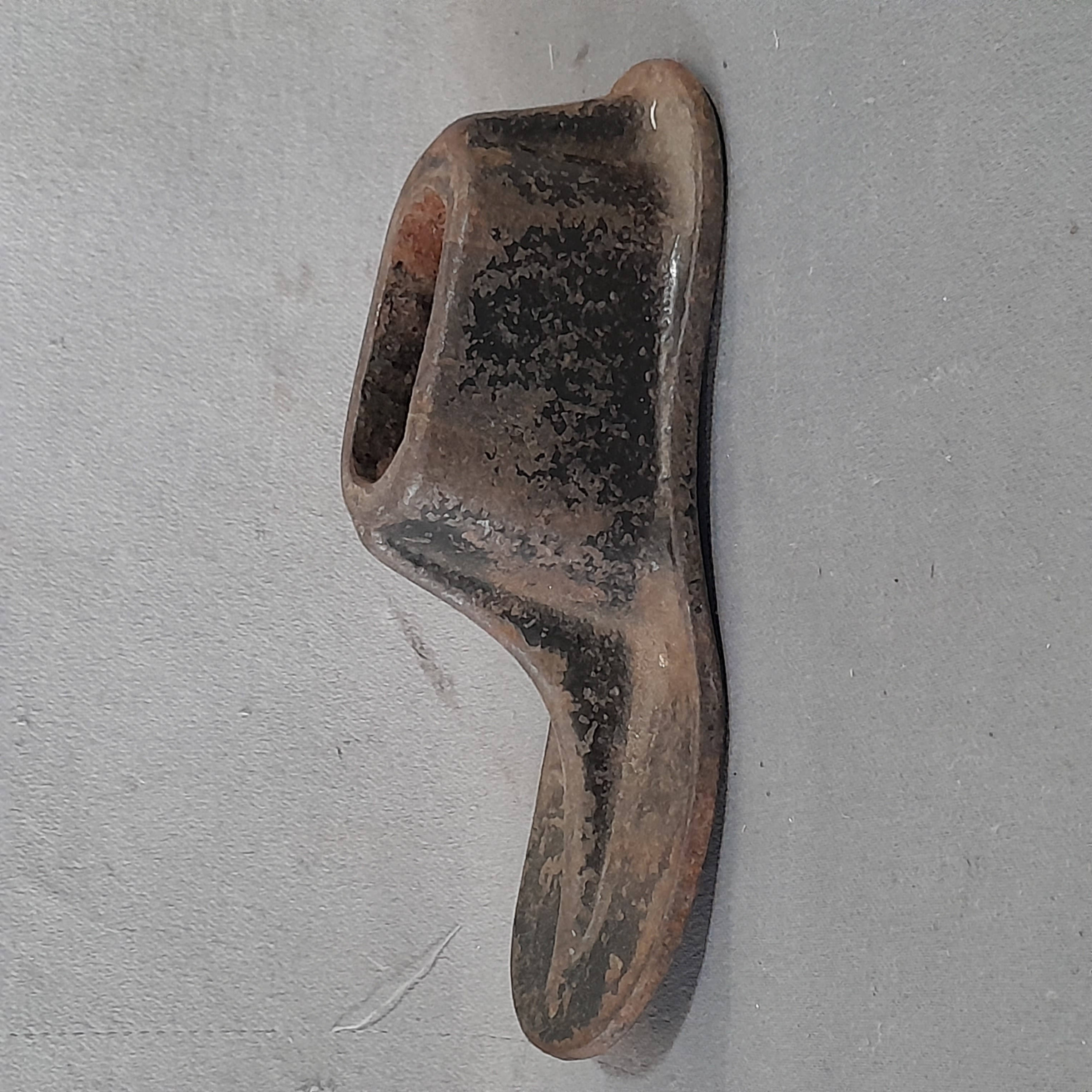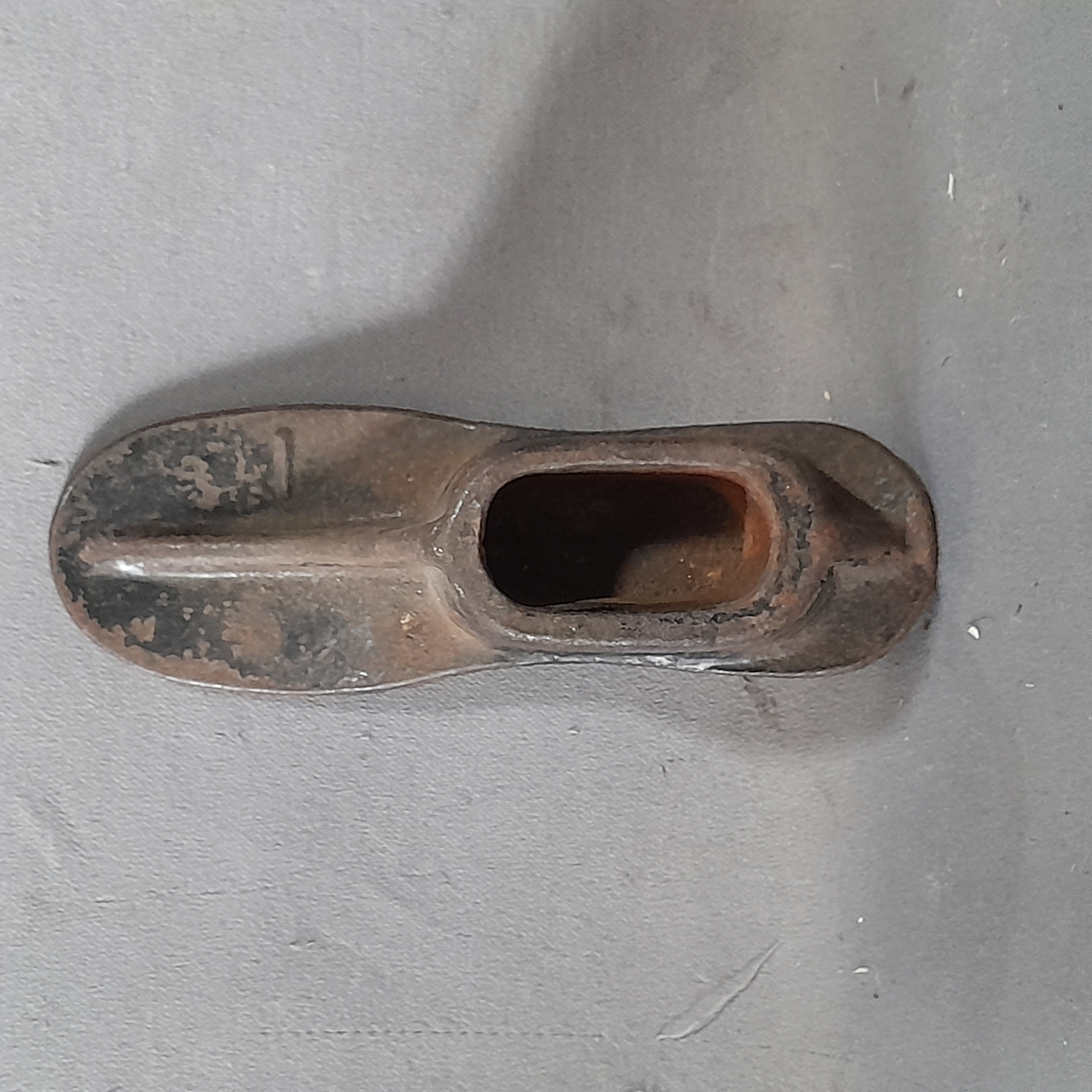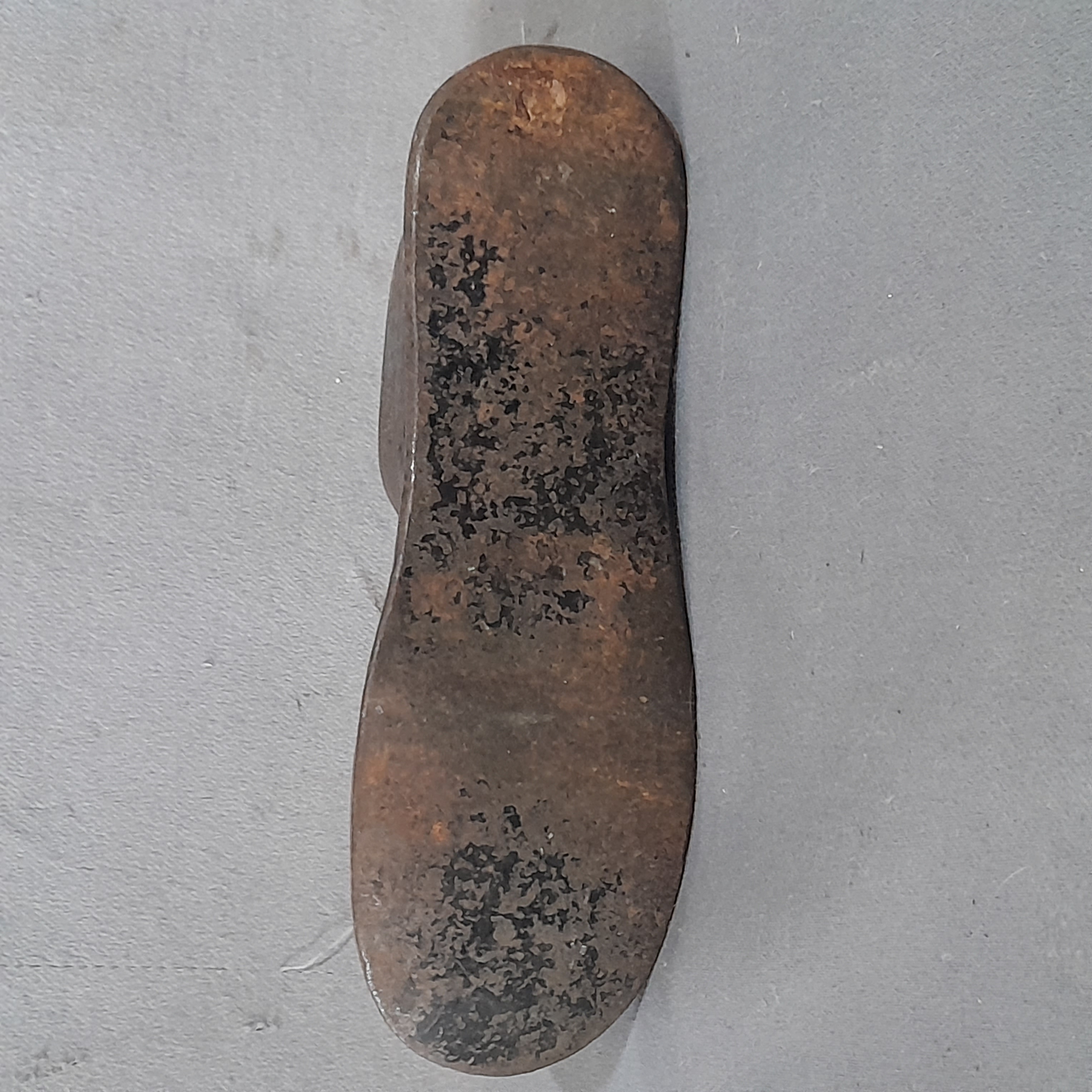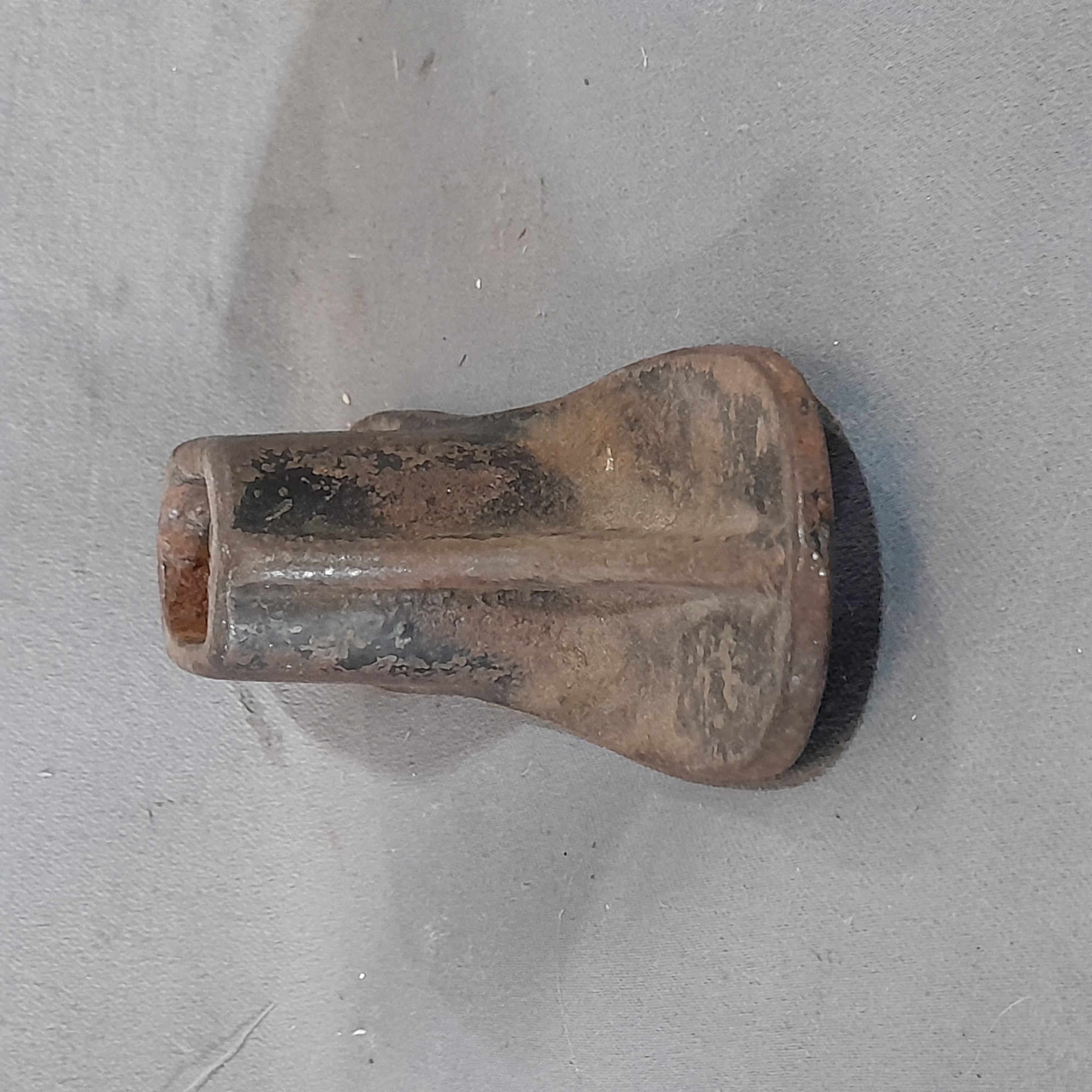 Made of cast iron. Super solid and no chips or cracks. Has a nice patina on it.