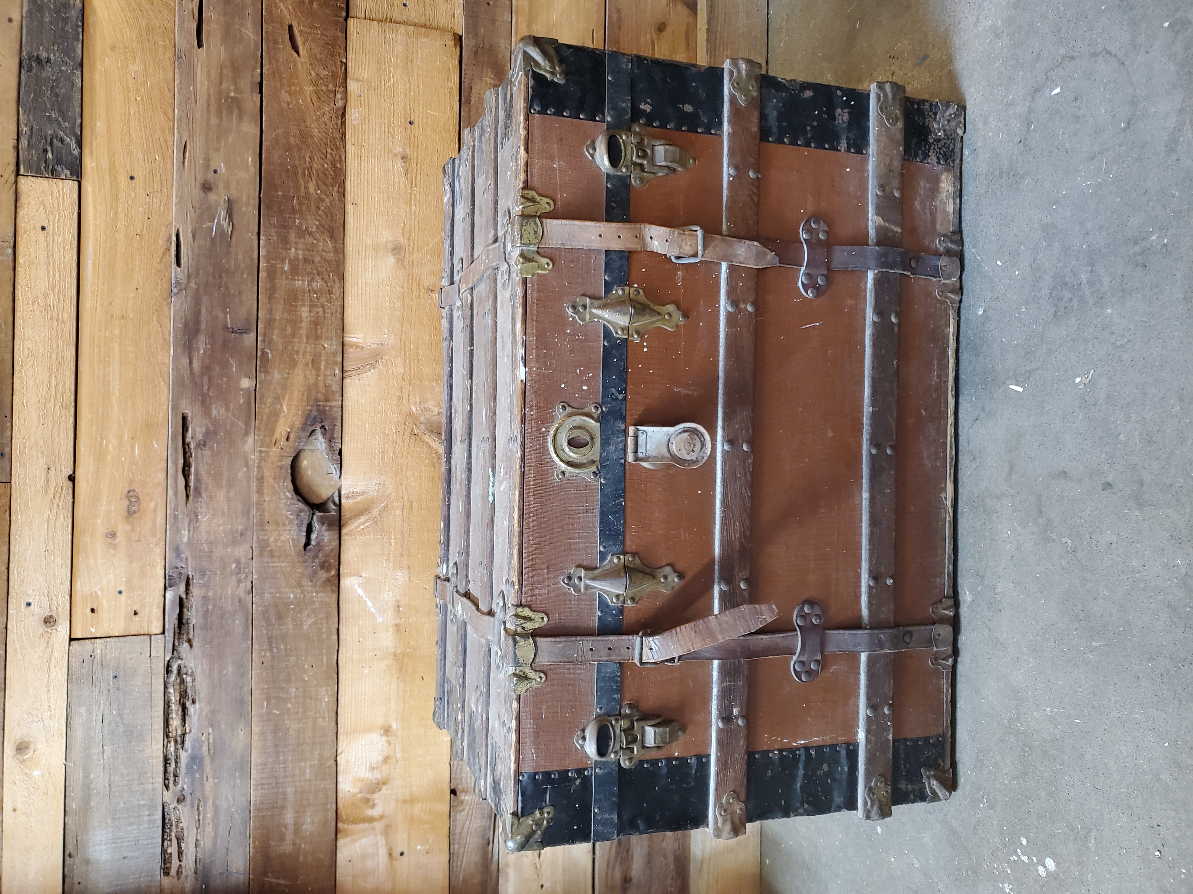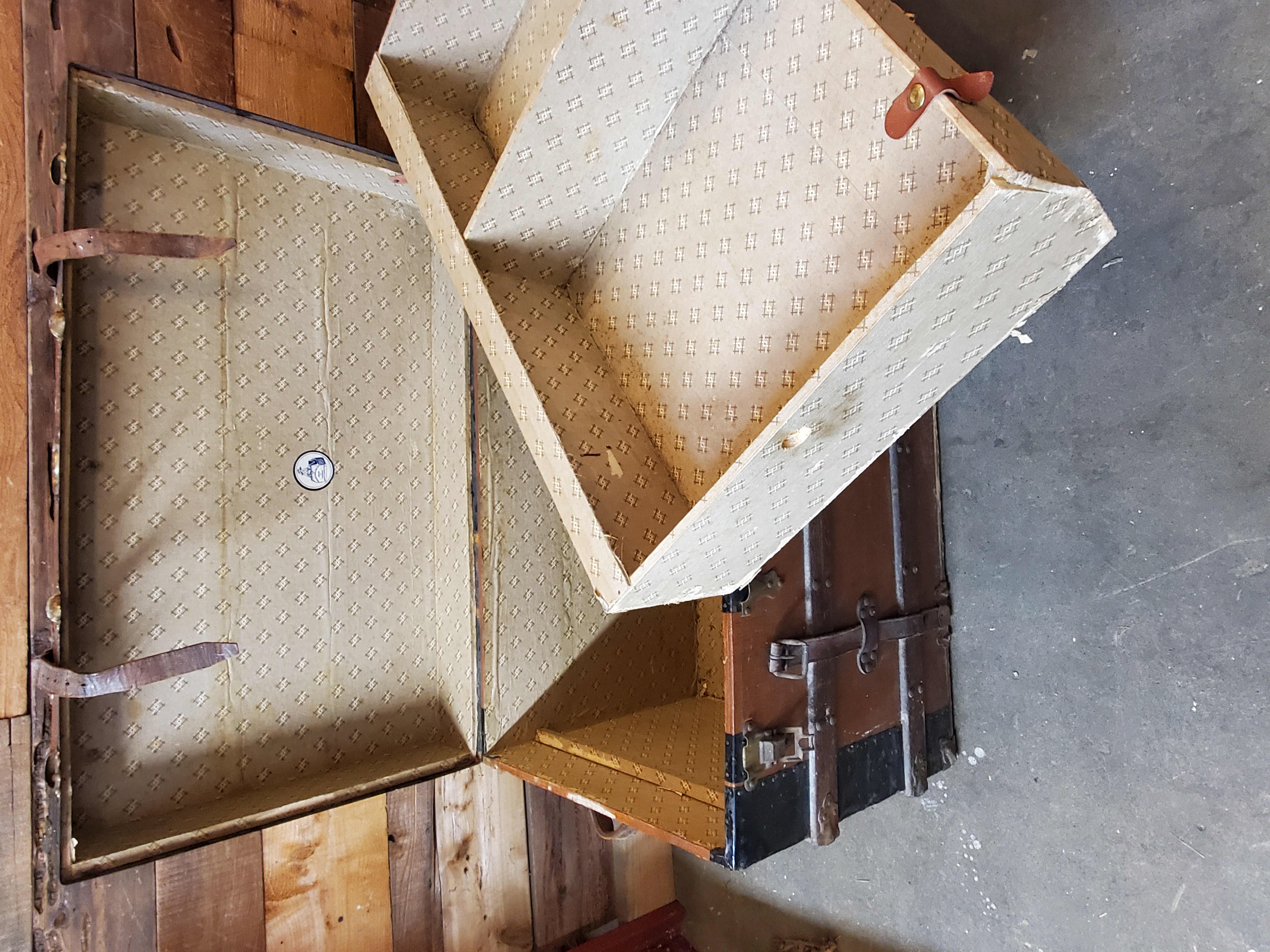 Vintage Steamer Trunk with working hardware and a salty story to tell. PAPER LINED with original shelf insert.