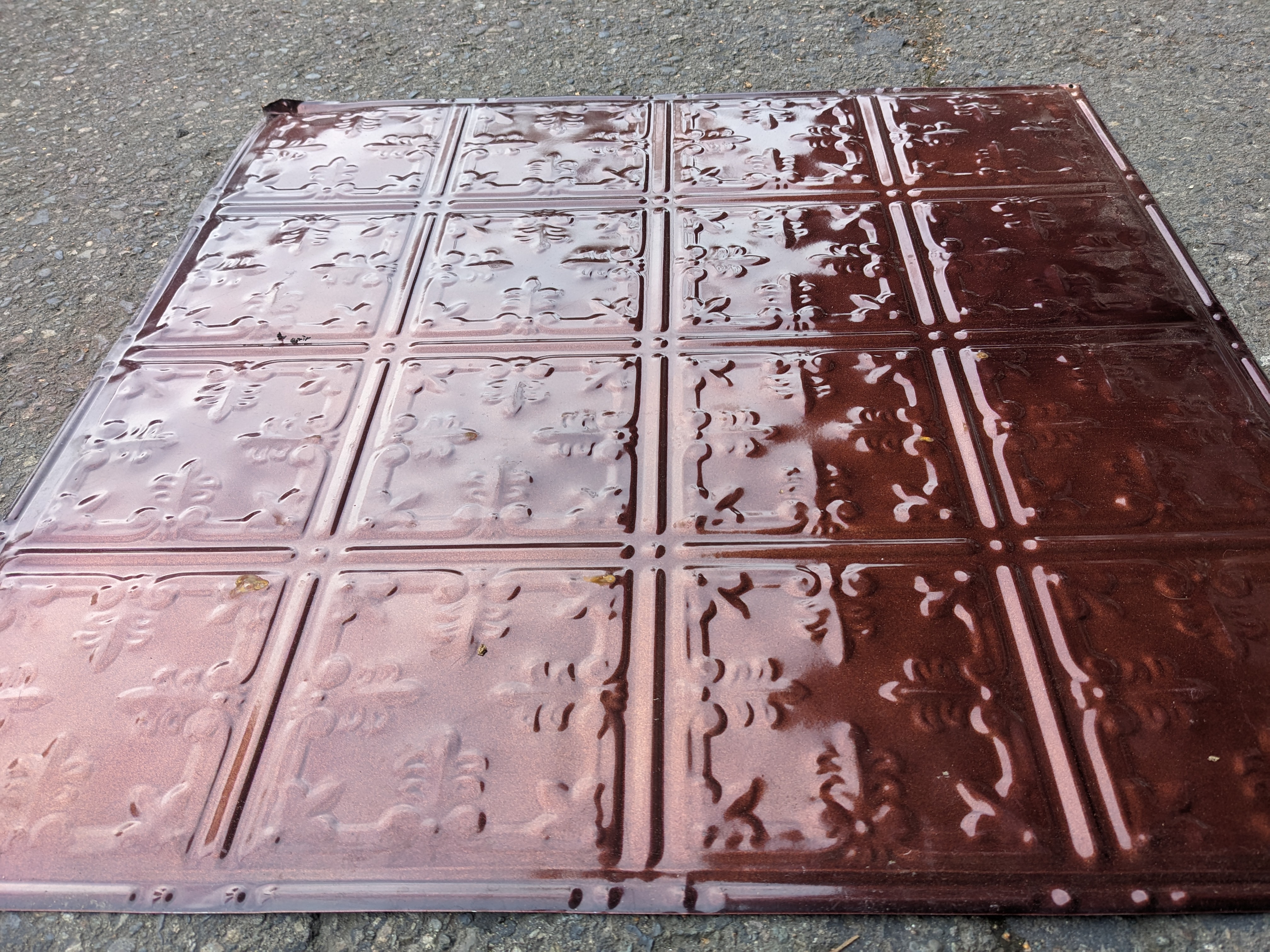 These newer tin tiles are pre finished and look like they may have been installed previously.
