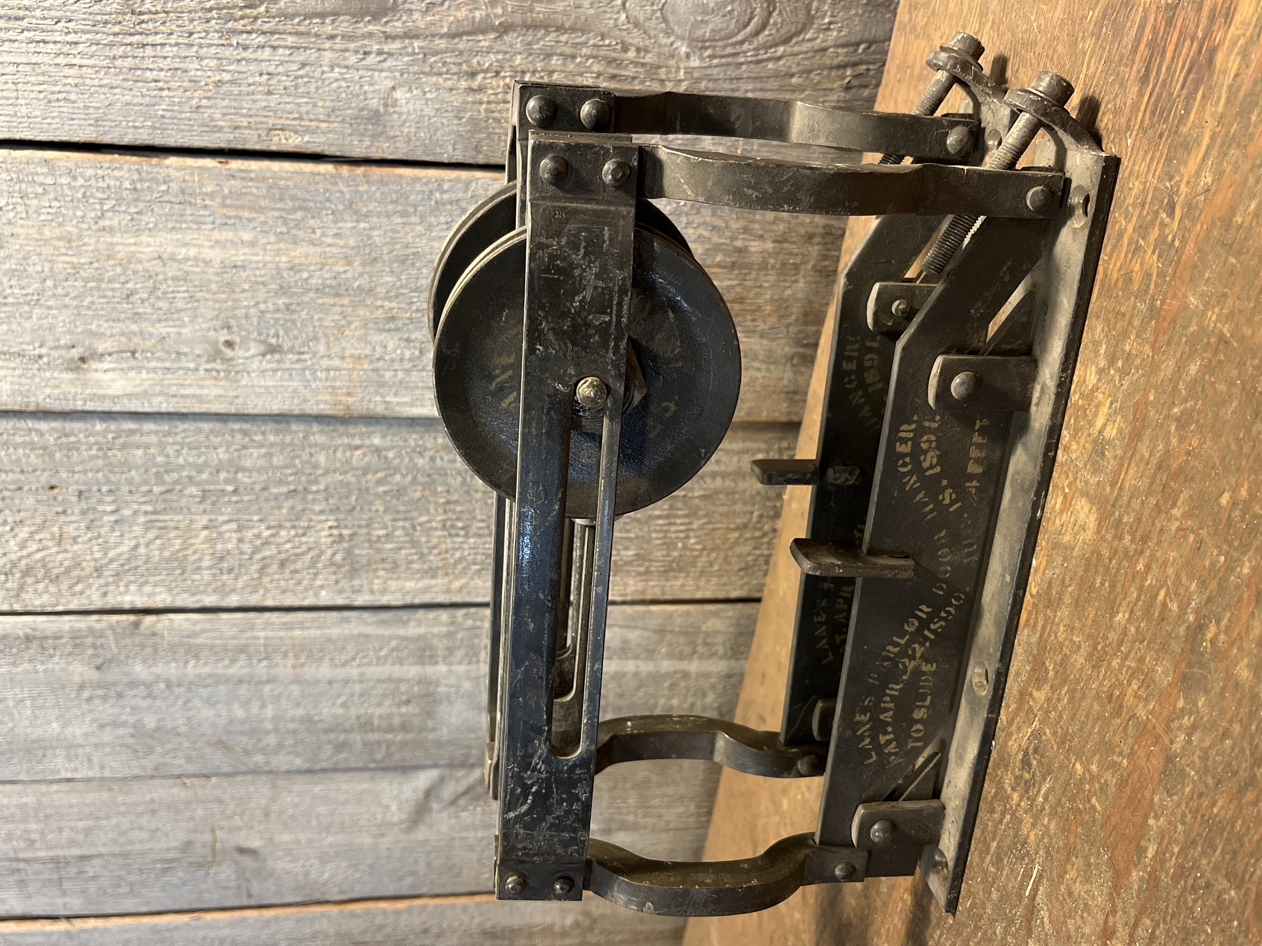 A pair of Lanes brand parlor door hangers with a date of 8/18/1894. The wheels roll with ease and even the graphics are legible! Either use them for doors or repurpose them for something new! Each measures 9.625 x 7.125 x 1.5 inches. Sold as a pair! Possible halloween decor?