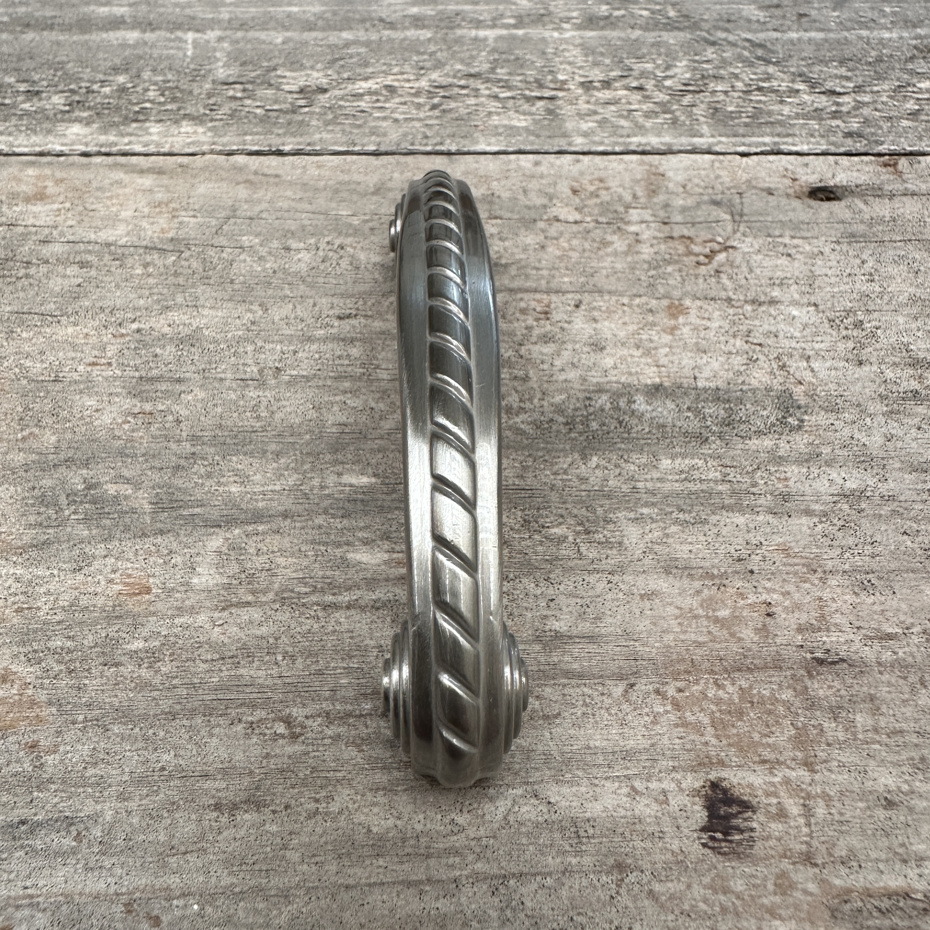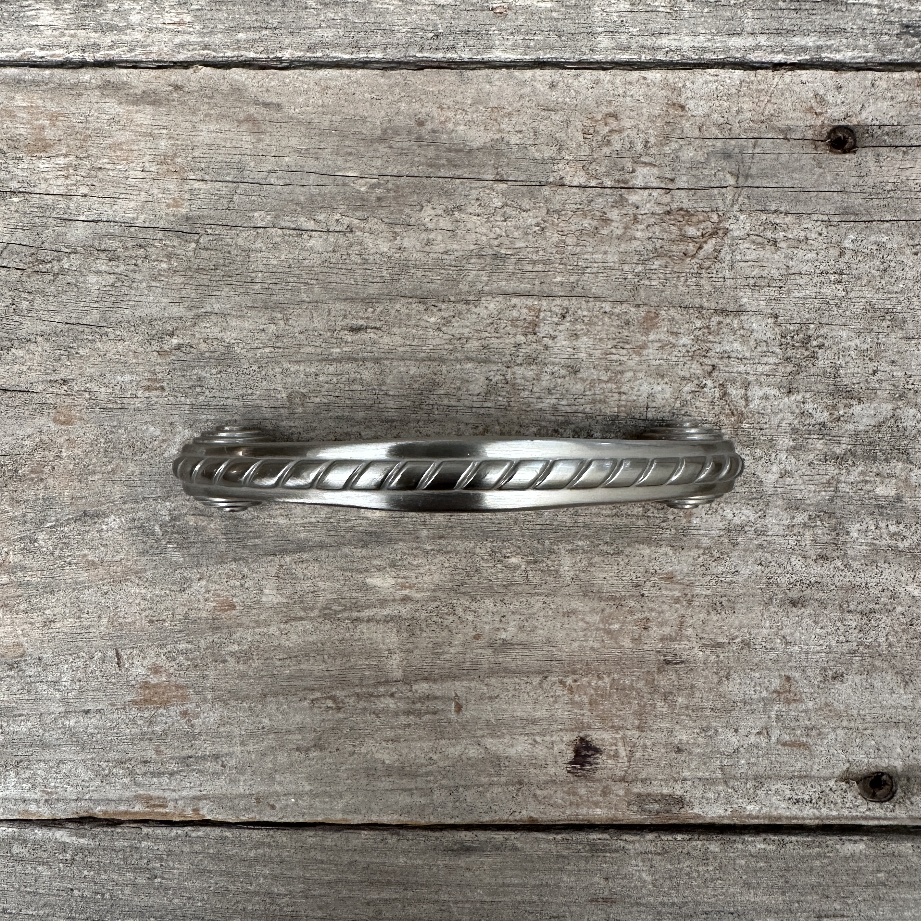 New old stock Amerock rope pull in satin nickel. Comes with mounting screws. Multiple in stock; images may be representational.