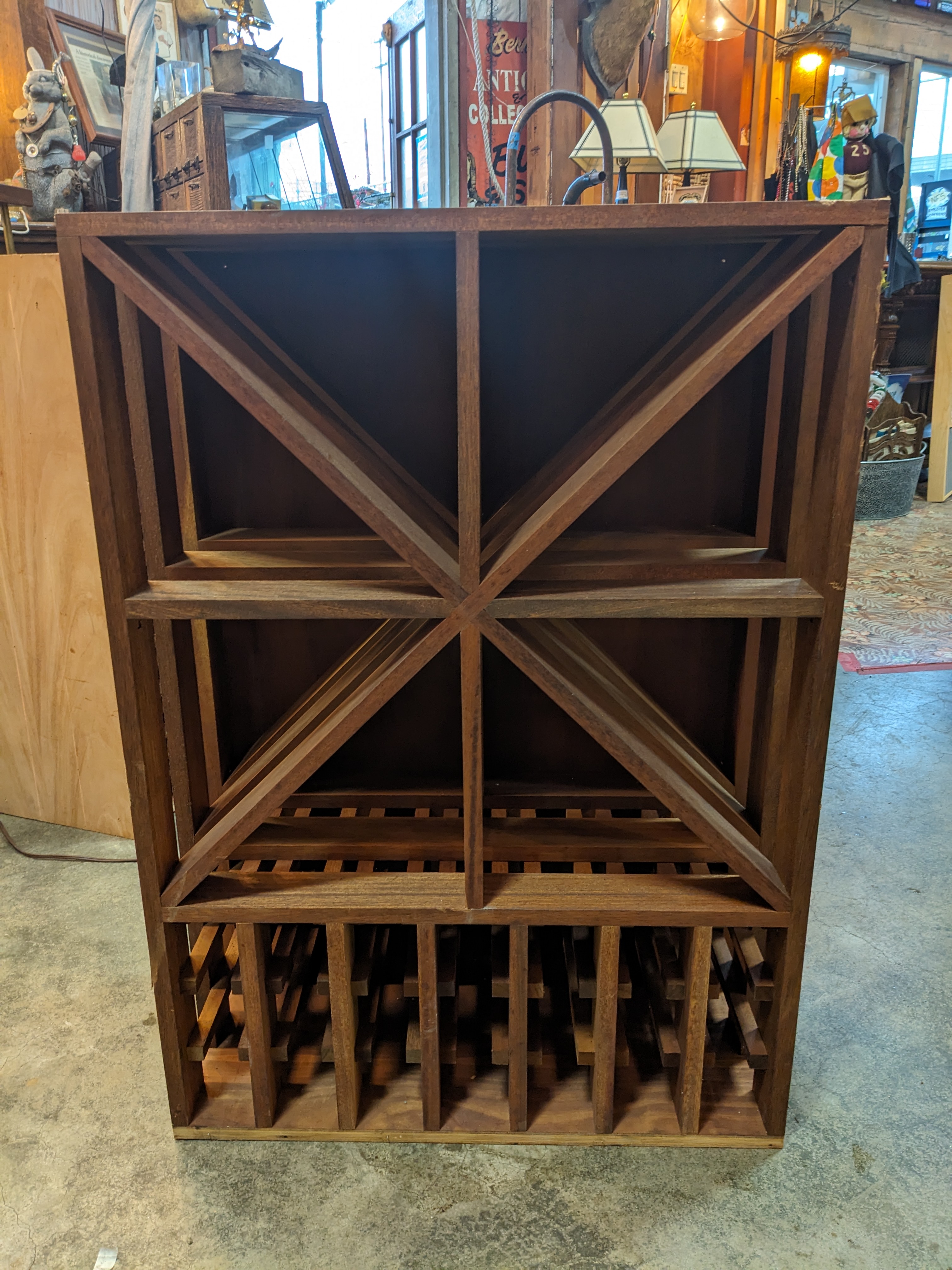 A beautifully constructed tropical Hardwood Wine Rack, perfect for those pesky bottles needing a home. Can also be used as general storage. In good condition.