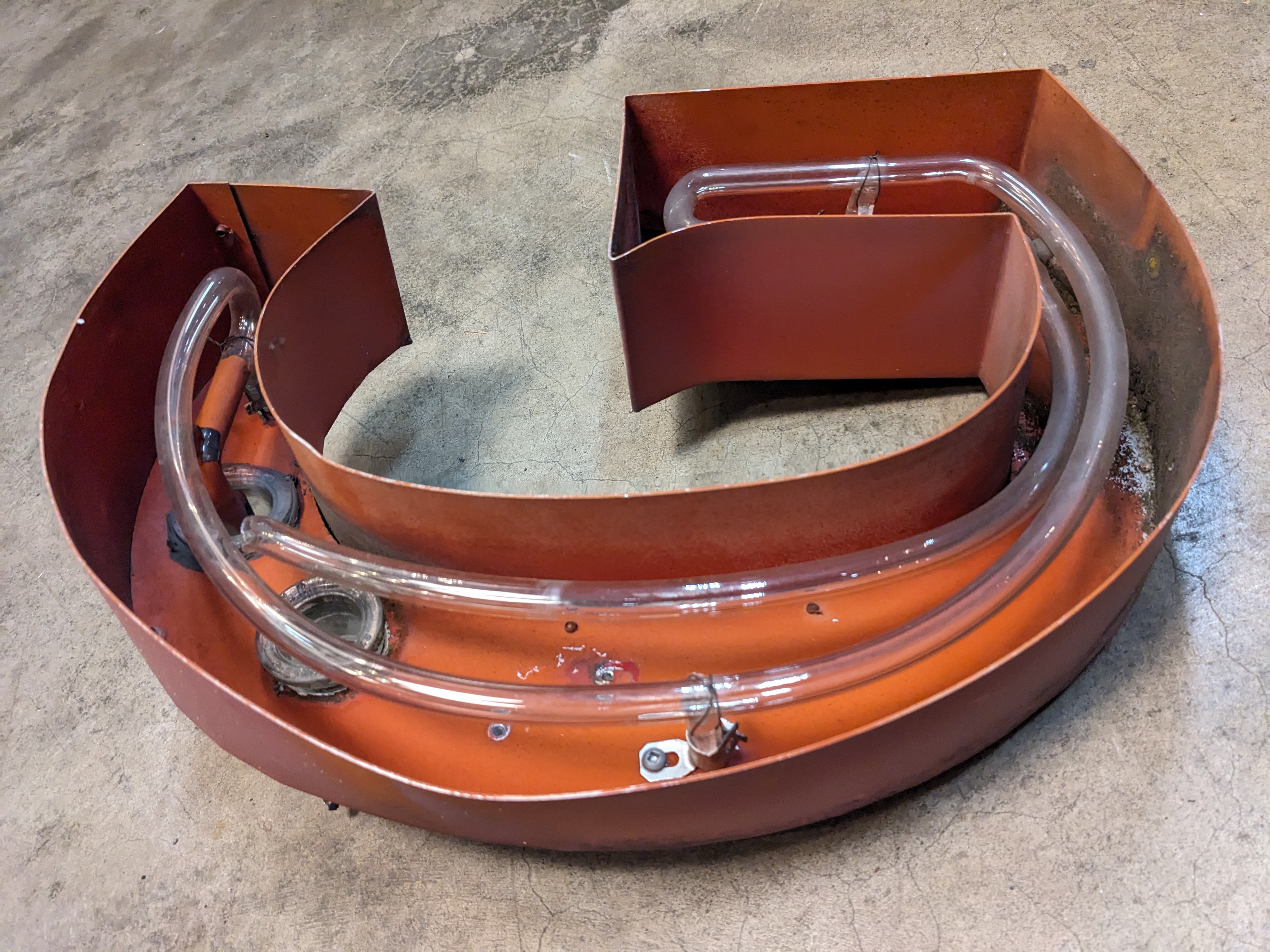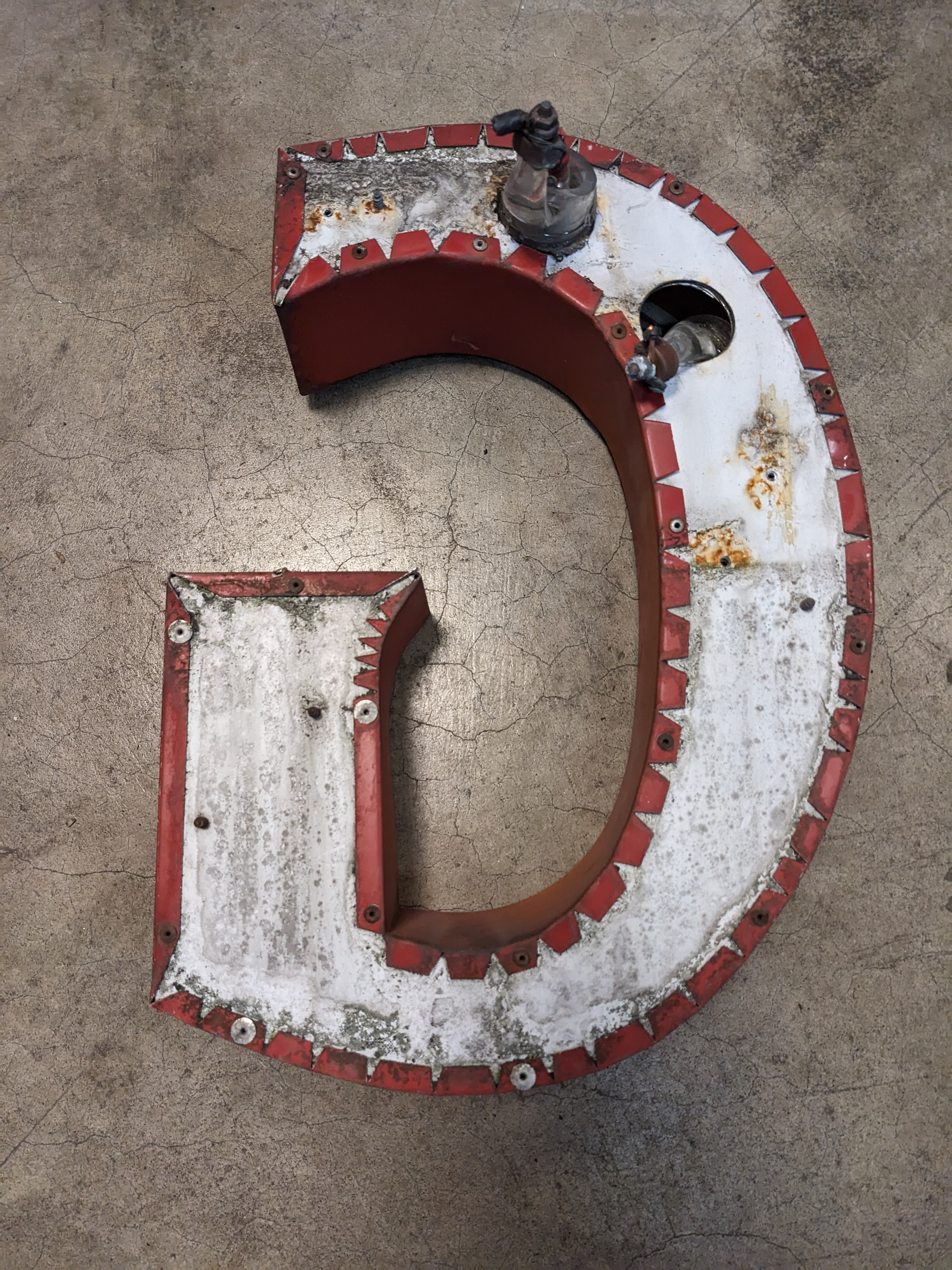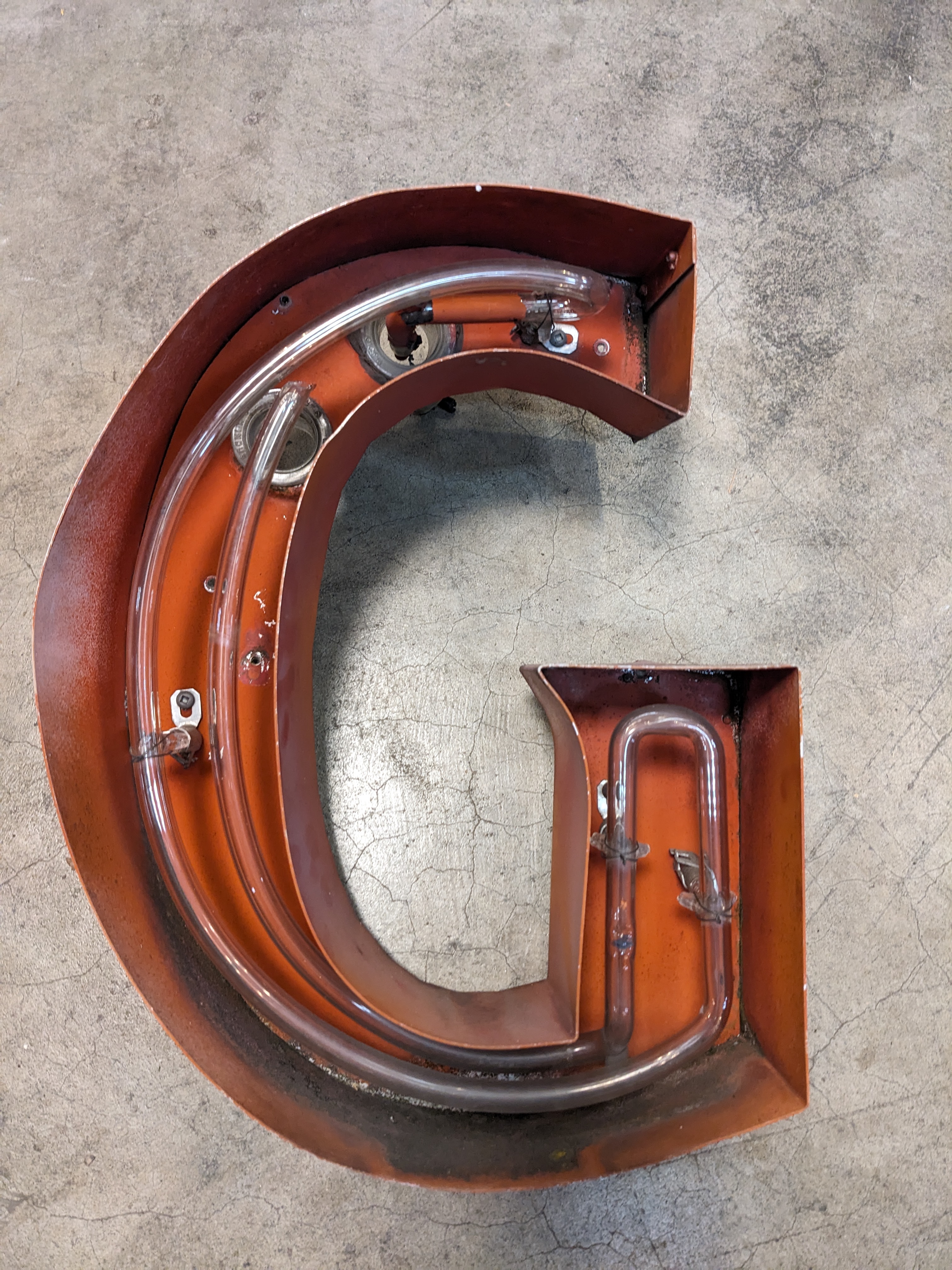 This red metal channel letter G measures 11.5 x 15. As is.