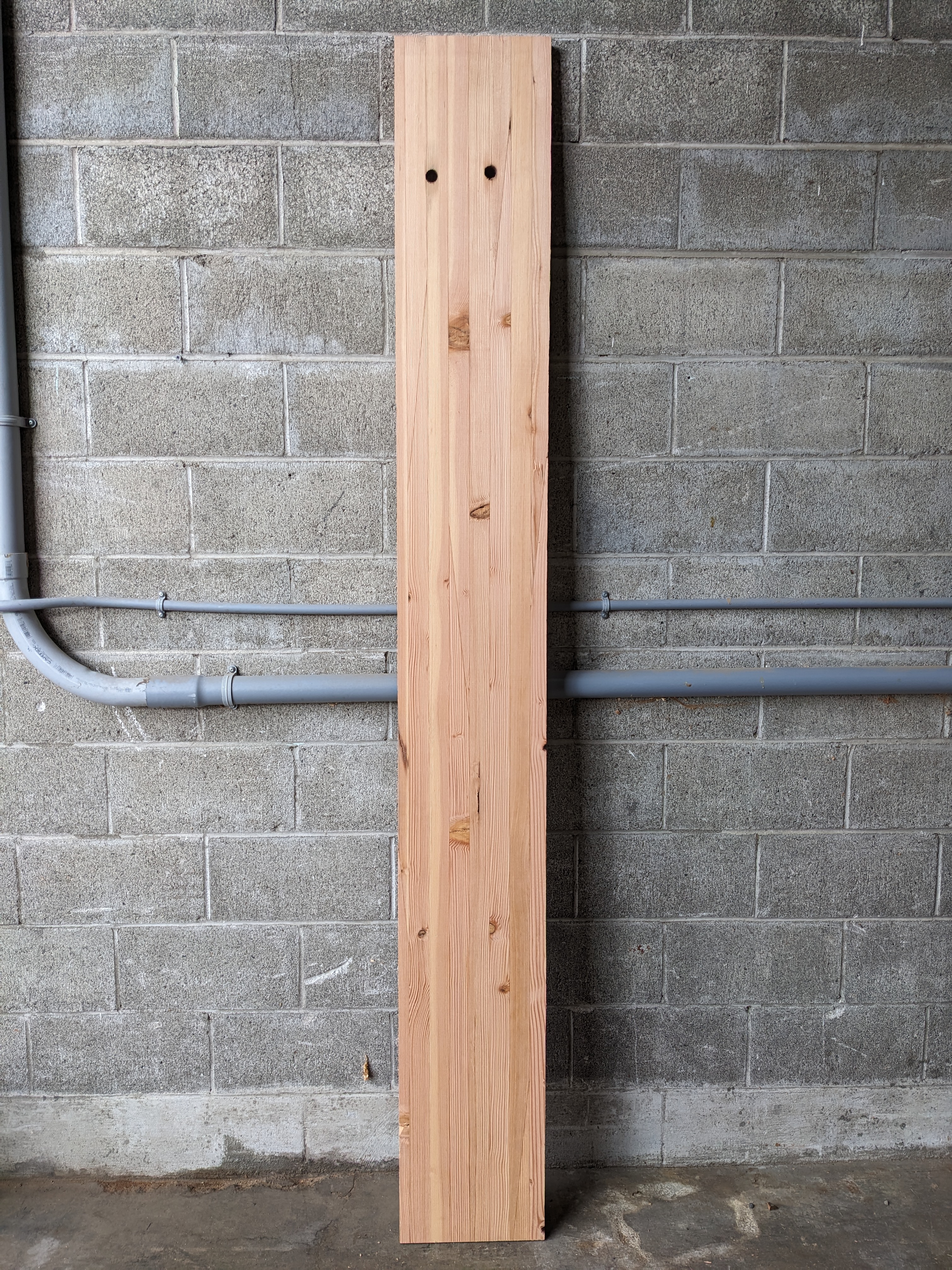 This fir butcherblock was locally sourced and milled at our very own mill in Tacoma. Surfaced on both faces for ease of finishing. This piece has two holes at one end of the board and some small imperfections, and is ready for your next project. It measures 1.25 x 12.125 x 96 inches.