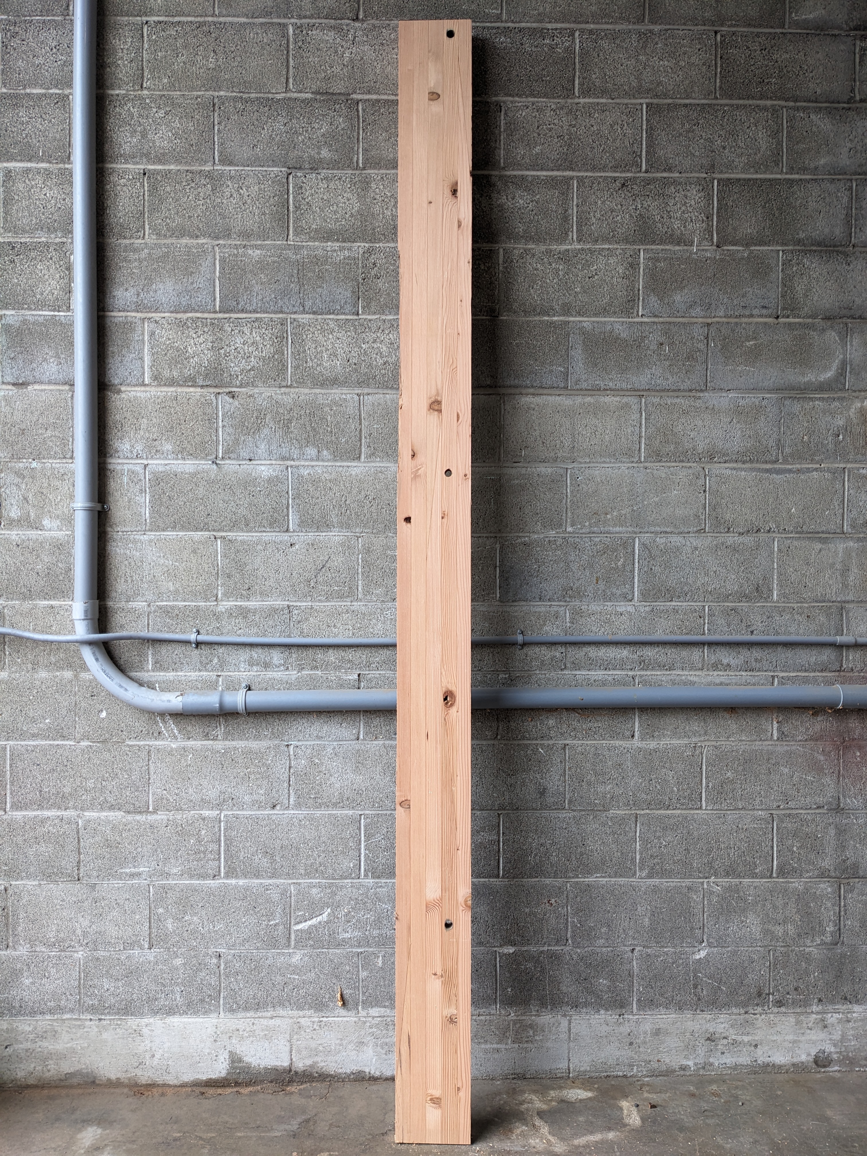 This fir butcherblock was locally sourced and milled at our very own mill in Tacoma. Surfaced on both sides for ease of finishing. This piece has three holes through the board and some small imperfections, and is ready for you next project. It measures 2 x 8 x 120 inches.