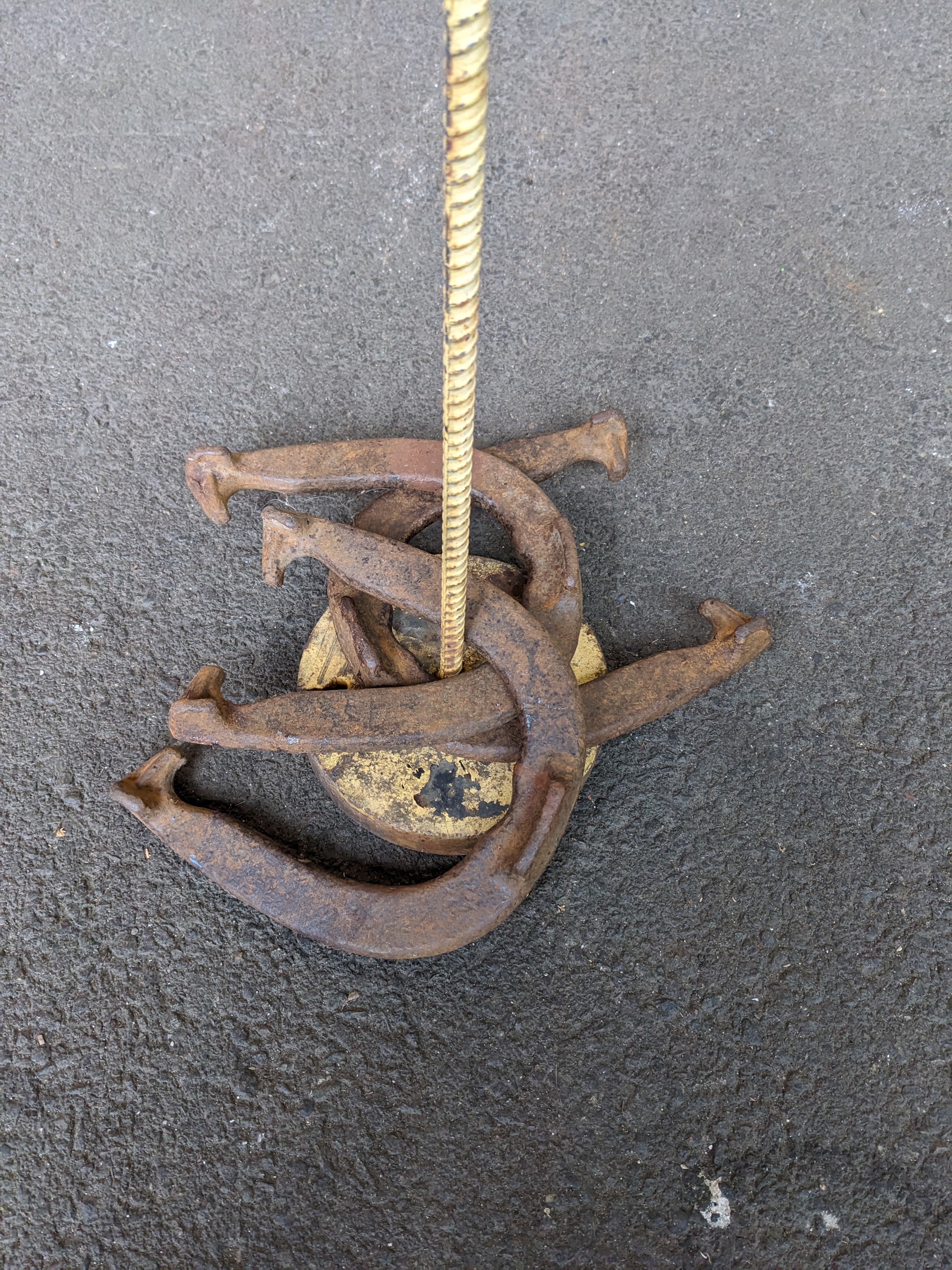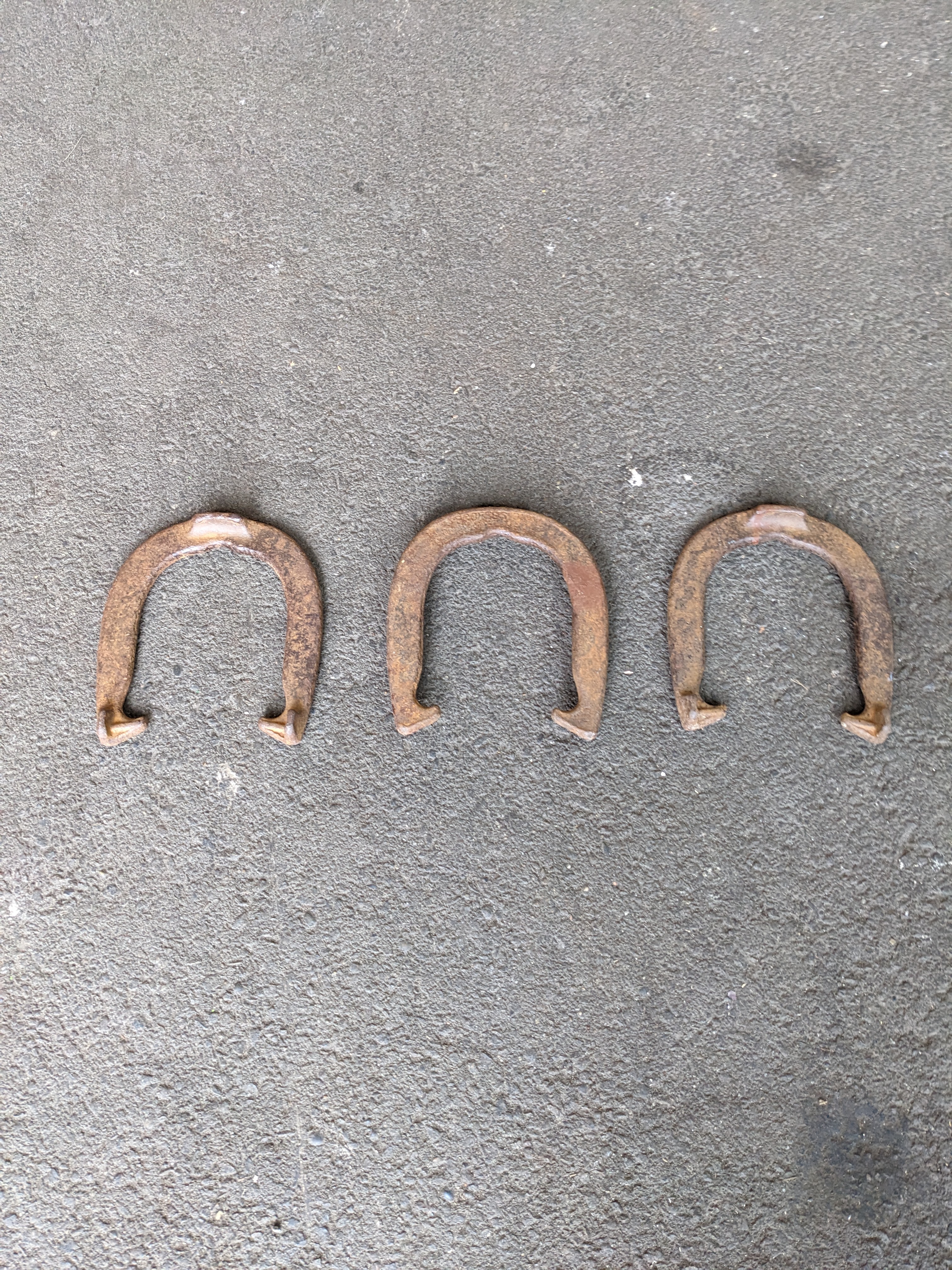 Do not leave them wondering. You are the horseshoe professional, you have vintage steel shoes, only three because you're just that good, and you got them at Earthwise Salvage. Tell everybody.