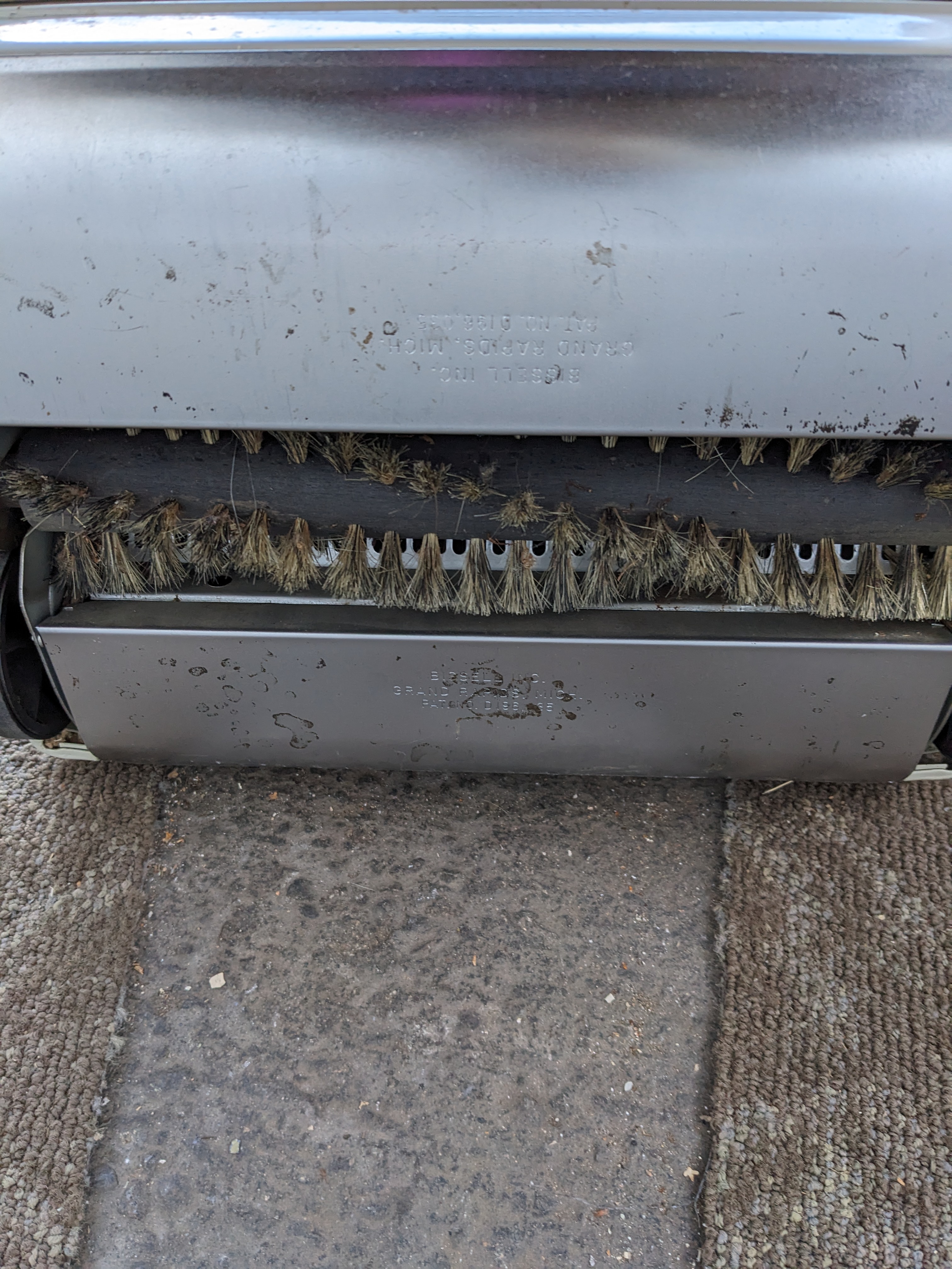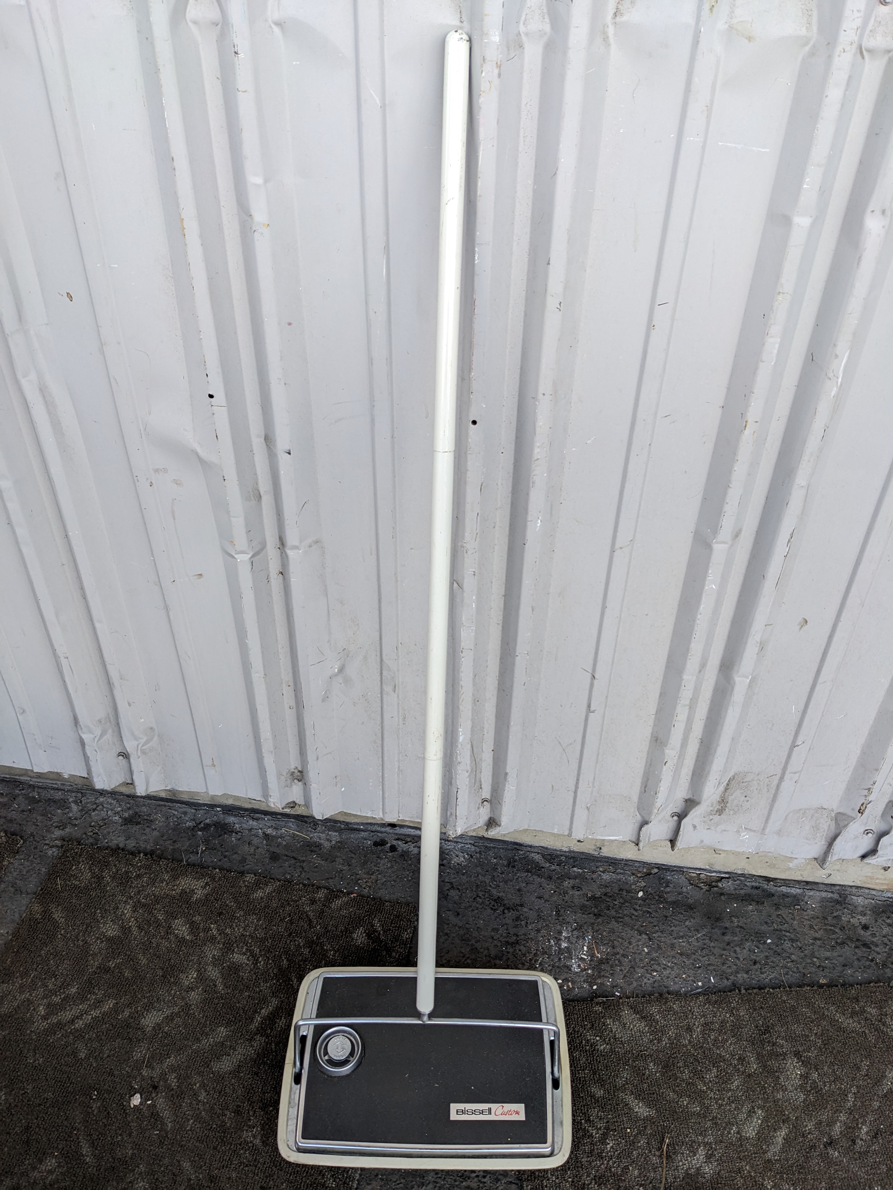 This is a manual floor sweeper designed for quick cleanups on various floor types including carpet and hard floors.
