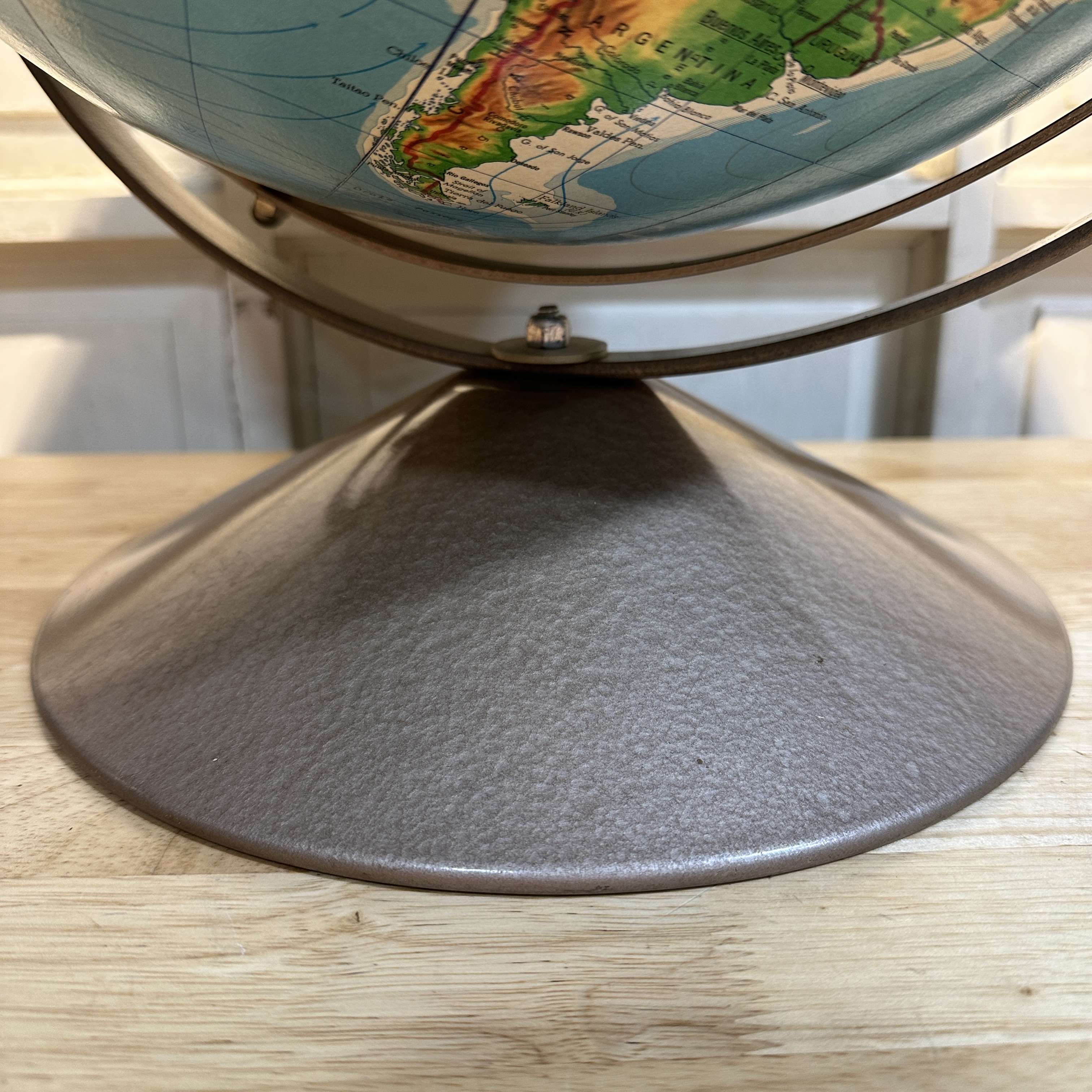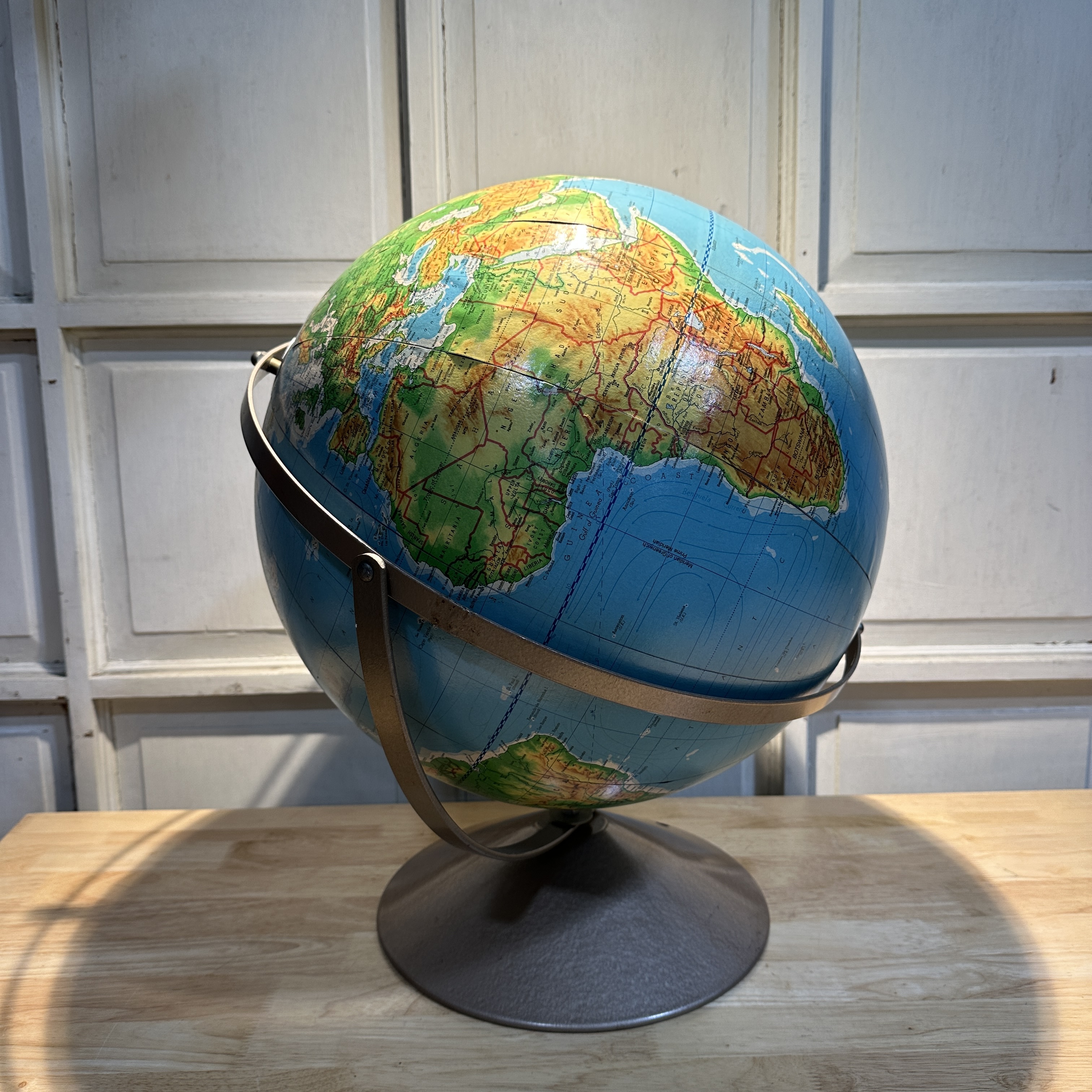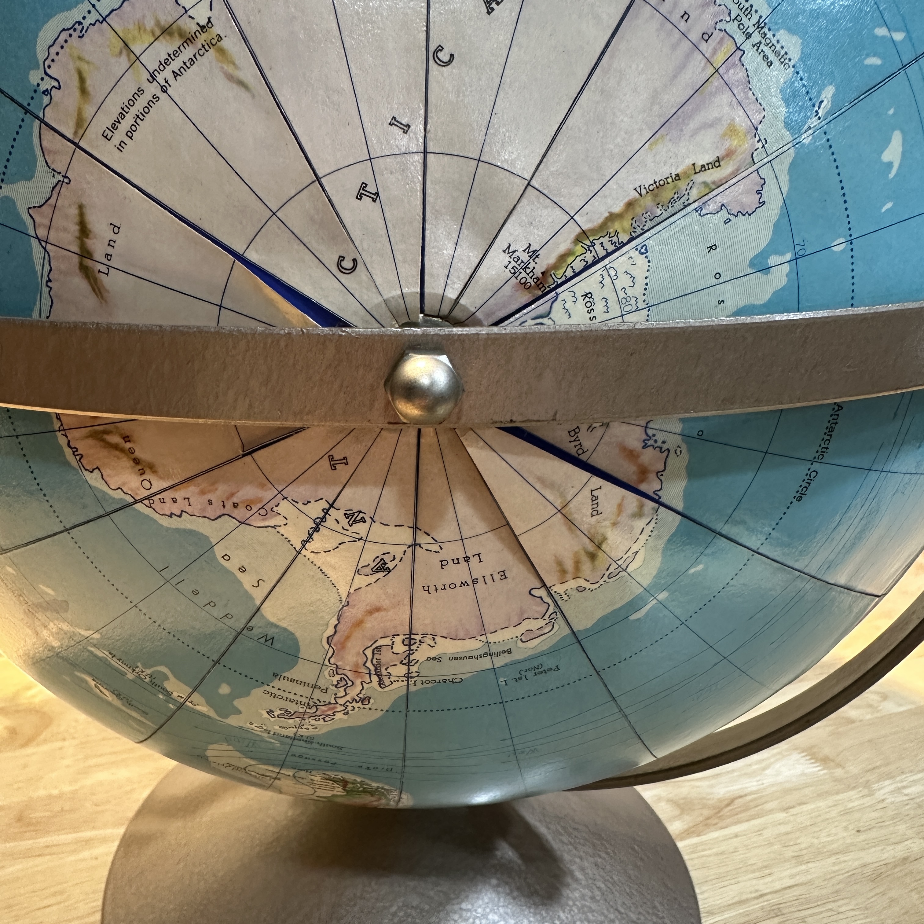 Large vintage school globe that hangs on a wall. Needs some rubber cement on some of the panels that are starting to pop up but in otherwise complete and decent condition.