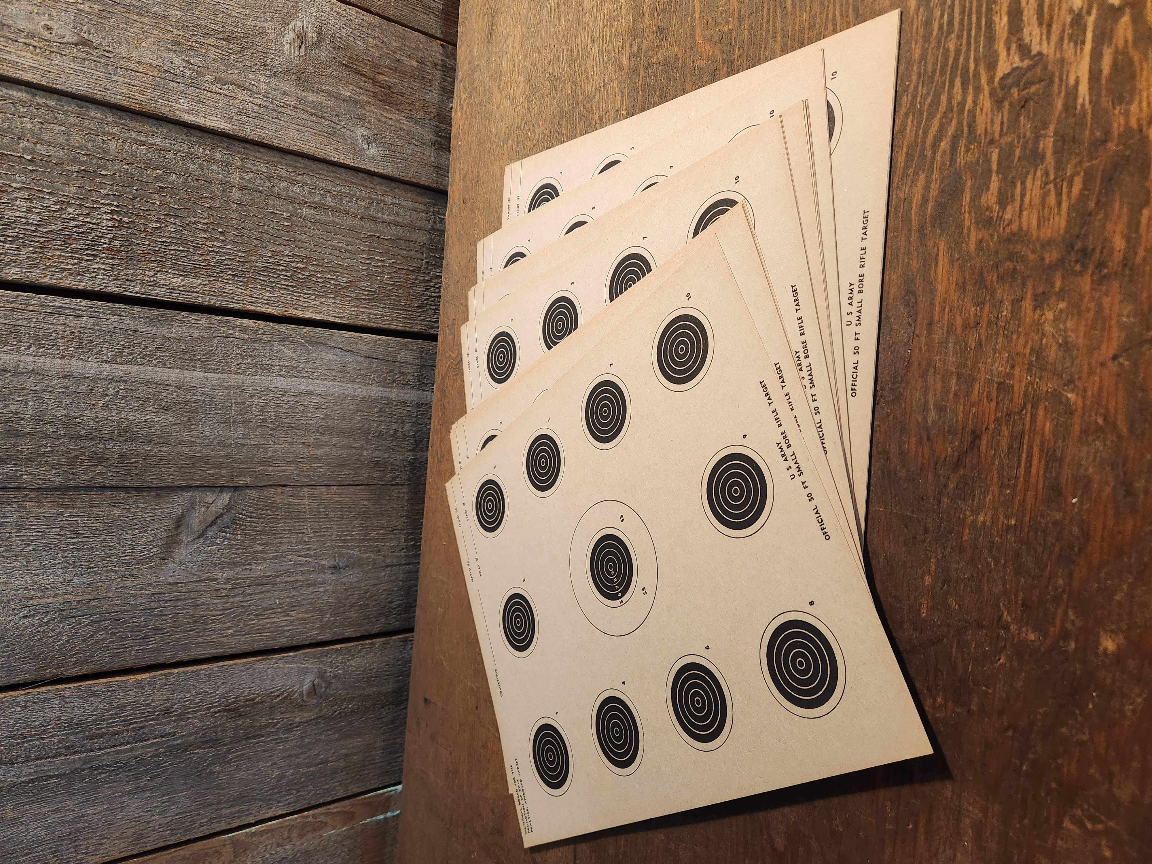 A stack of shooting targets originally meant for Bore rifles and the US army. Most are in good condition. $10 for a stack of 20. Images are representational. They measure 10.25 x 12.