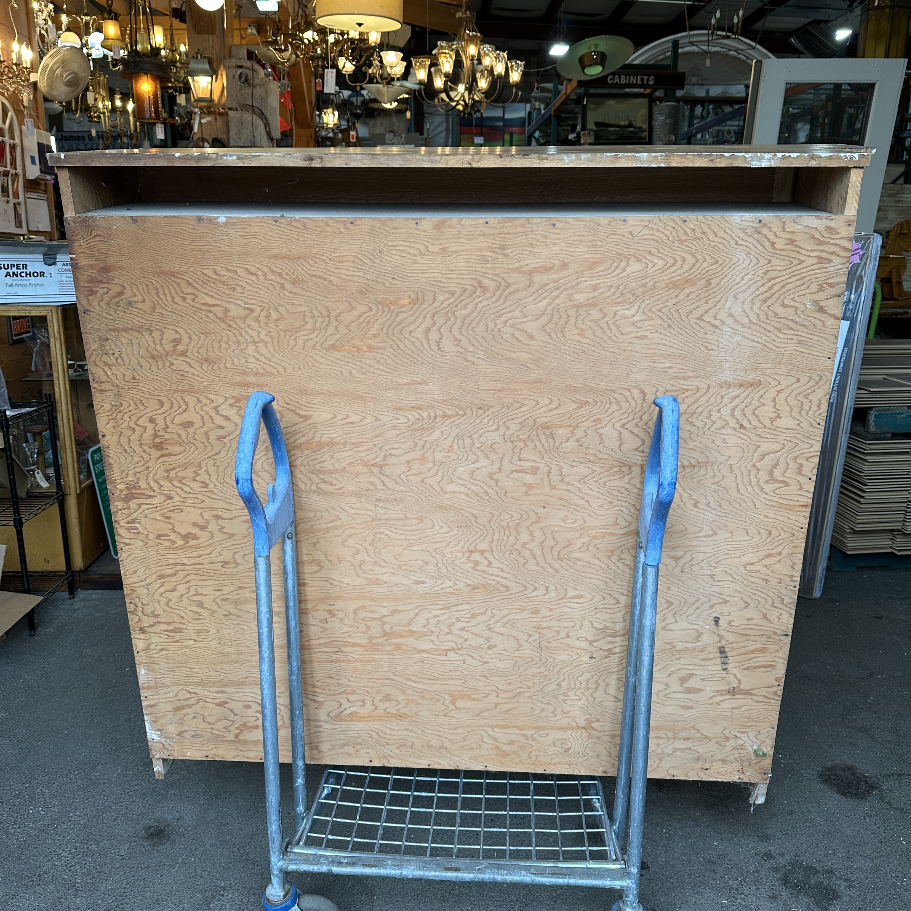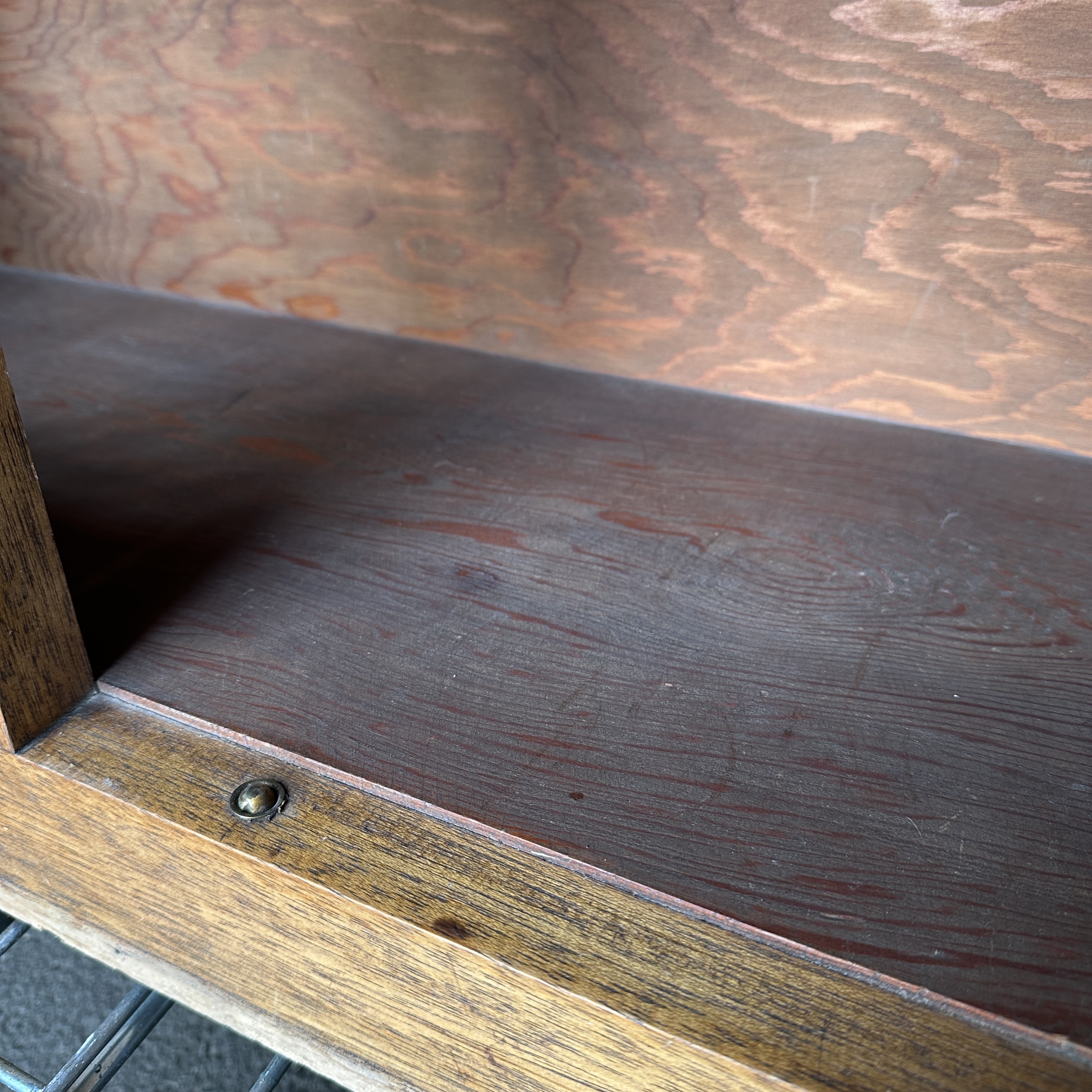 This was most likely used as a bookshelf on one side of a fireplace and sits on the ground.